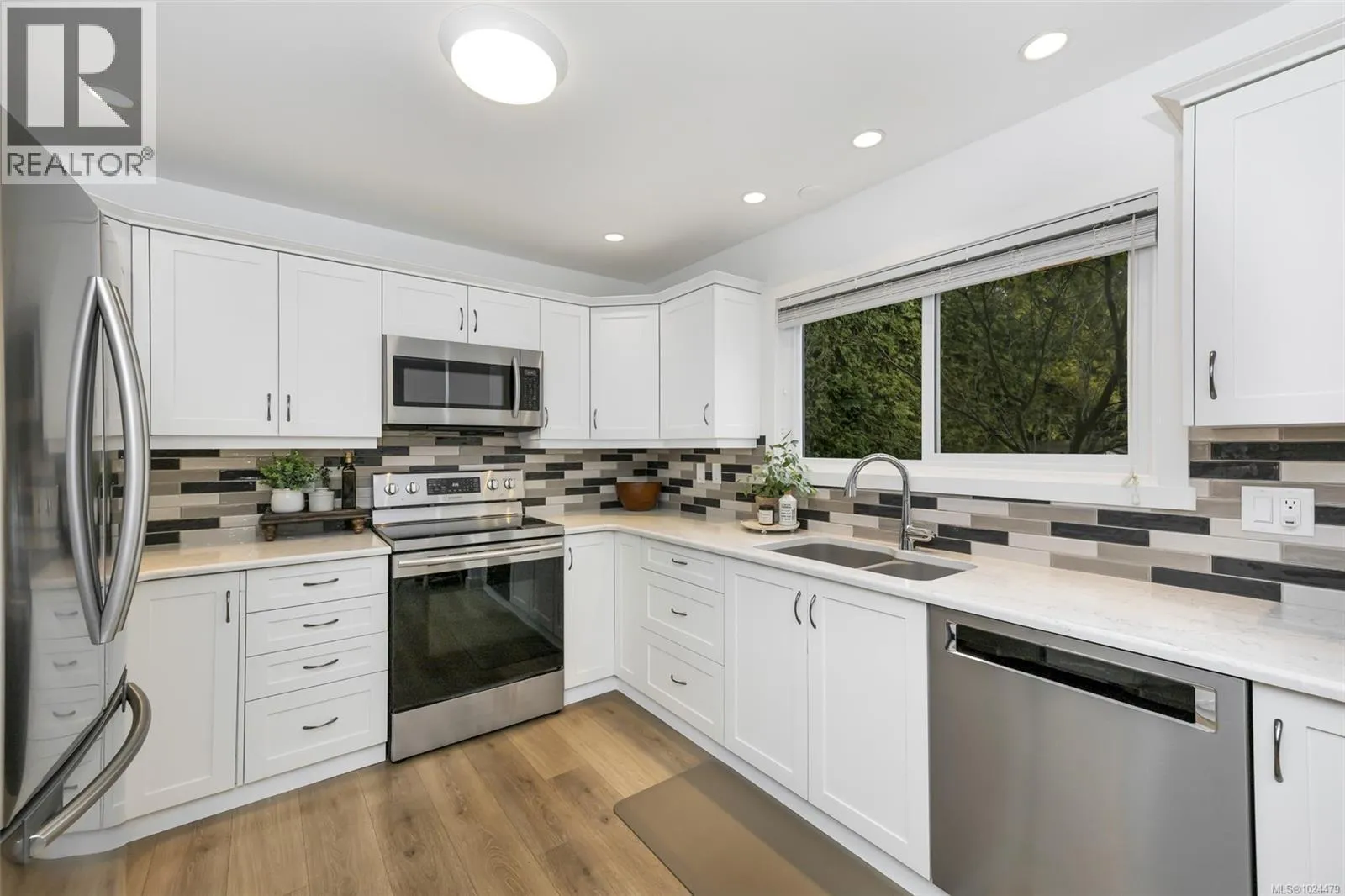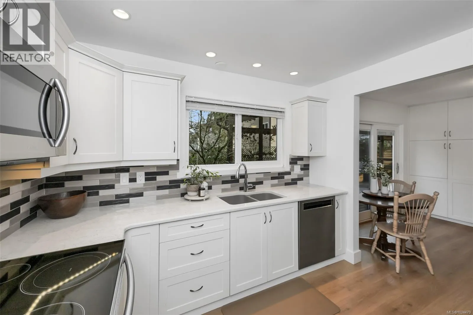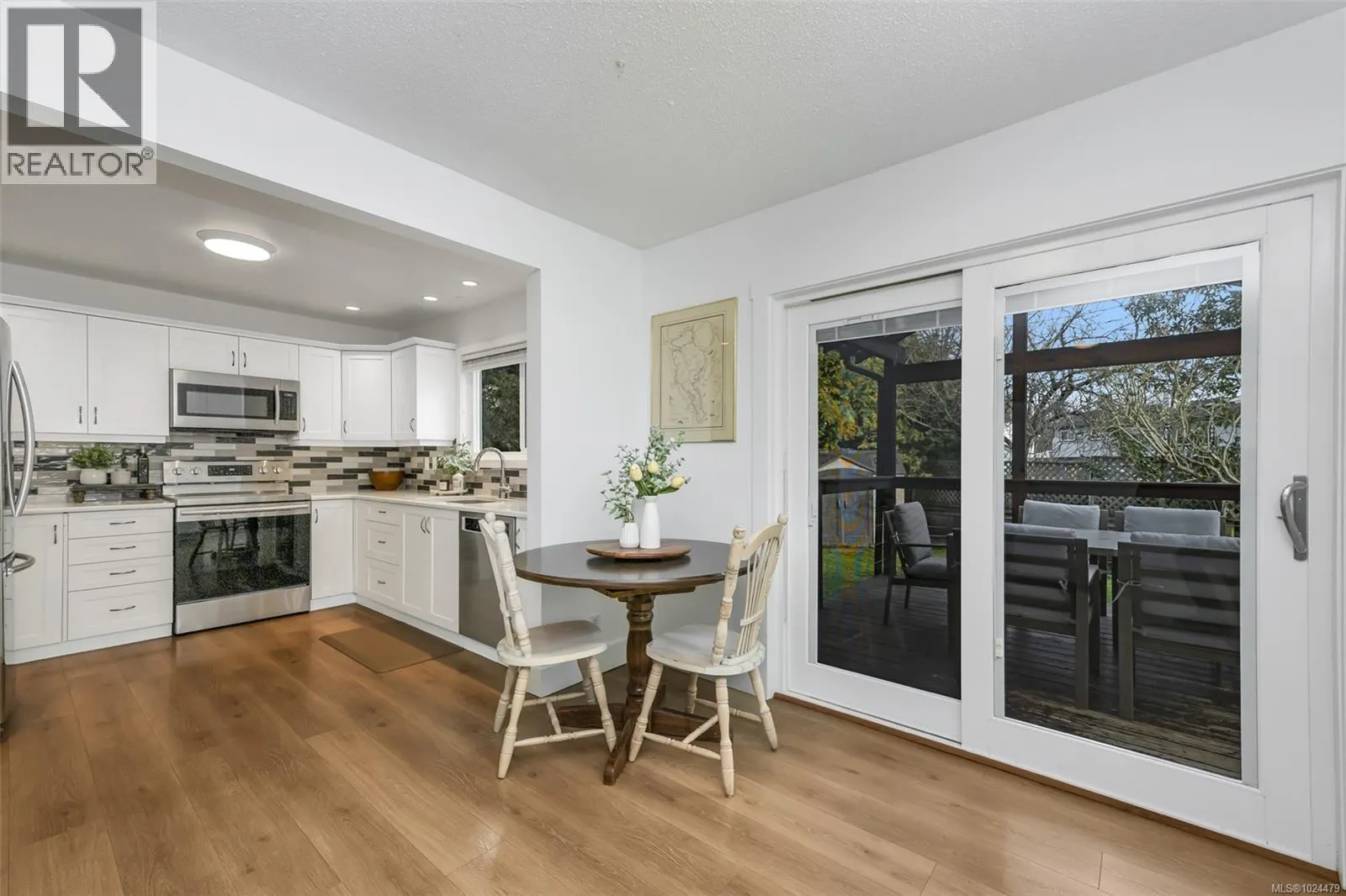 Welcome to this beautifully maintained home tucked away in Sidney, offering generous living spaces, exceptional flexibility, and a layout designed for comfortable everyday living and entertaining. This move-in ready 4 bedroom, 3 bathroom home features fresh neutral finishes throughout, including new paint and flooring, as well as a thoughtful floor plan that adapts easily to modern lifestyles. The main level offers a spacious and inviting living and dining area with a cozy fireplace, flowing into an updated kitchen with adjoining family room and eating nook. The layout naturally creates gathering spaces for easy conversation while maintaining privacy between rooms. Step outside to the green backyard retreat with expansive covered and open deck space and hot tub - providing a seamless extension of the living space outdoors. The spacious primary bedroom is located on the main floor and includes a 3-piece ensuite with direct access to the backyard, creating a private, convenient, and accessible main-level bedroom option. A second bedroom, full bathroom, and double garage complete the main floor. Upstairs, youâll find two additional bedrooms, full bathroom, and a dedicated laundry room. The large great room adds further flexibility, and could make for a fantastic media room, secondary living room, or even a grand bedroom, making this level well suited to families or guests. With ample parking, a fully fenced yard, and a location just a short stroll to the ocean and Van Isle Marina, this home offers a wonderful space to enjoy the best of Sidney living. (id:27476)