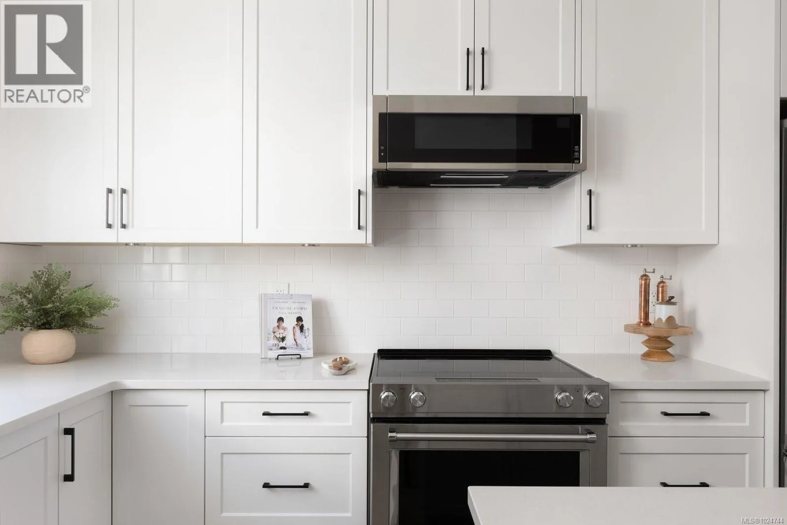 OPEN HOUSE Saturday 1-3PM. Proud to present The Bayside Towns on Fifth - a curated collection of 16 townhomes in Sidney's most desirable neighbourhoods, ROBERT'S BAY. Offering a modern farmhouse aesthetic & varied layouts appealing to young families through to active retirees. This plan offers 3 beds, 3.5 baths, 9' ceilings on main and upper level and oversized single car garage. Light wide-plank hardwood throughout main level & large picture windows will keep the home light & bright. Custom white kitchen cabinets with quartz counters, generous island & stainless steel appliances. Laundry room with sliding barn door on upper level. Efficient heat pump for year round heating and cooling. In-floor heat in all tiled bathrooms, both upper level bedrooms with their own ensuite. Interlocking brick, sunny patio with irrigation. Close to beaches, trails and easy walk to Beacon Ave, this is a 12/10 location! (id:27476)