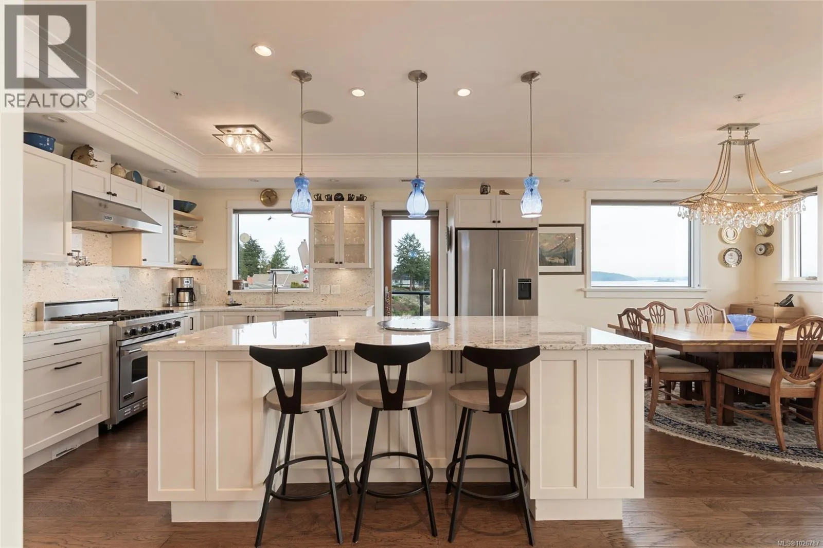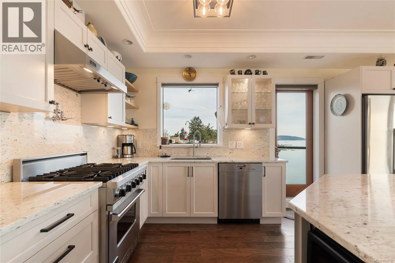 Open House Sunday 1-3pm Follow your dream, home. Welcome to Villa Isabella, a gracious seaside home perfectly positioned on Sidneyâs picturesque waterfront, where daily life feels connected to the ocean, the marina and the vibrant village just outside your door. Spanning three levels within a boutique oceanfront residence, this home offers over 3,100 sq. ft. of thoughtfully designed living space, complemented by a private elevator from the entry level for effortless everyday living well into the future. Large windows capture uninterrupted views of the harbour, Mt. Baker and the lively marina from nearly every room, creating a constant backdrop of sailboats, eagles and passing marine life. The main level features open-concept living and dining spaces, along with an updated, well-appointed kitchen, stone surfaces, generous storage and a large island that serves equally well for casual breakfasts or hosting friends after a stroll along the waterfront walkway. The primary suite enjoys its own ocean-view balcony, custom walk-in closet and spa-like ensuite with separate shower and deep soaker tub, while a second bedroom, full bath and large laundry room with sink and storage complete this level. Upstairs, youâll find additional living quarters with a full kitchen, living and dining space with continued ocean views, plus three more bedrooms including a second primary with ensuite and walk-in closetâideal for extended family, guests or live-in support. Three balconies, a garage, a dedicated wine cellar and abundant storage complement a true lock-and-leave lifestyle. Step out your front door onto the waterfront pathway or to Beacon Avenueâs cafés, restaurants, boutiques and year-round community events, making this an exceptional opportunity to enjoy waterfront living in the heart of Sidney. Live your luxury! (id:27476)