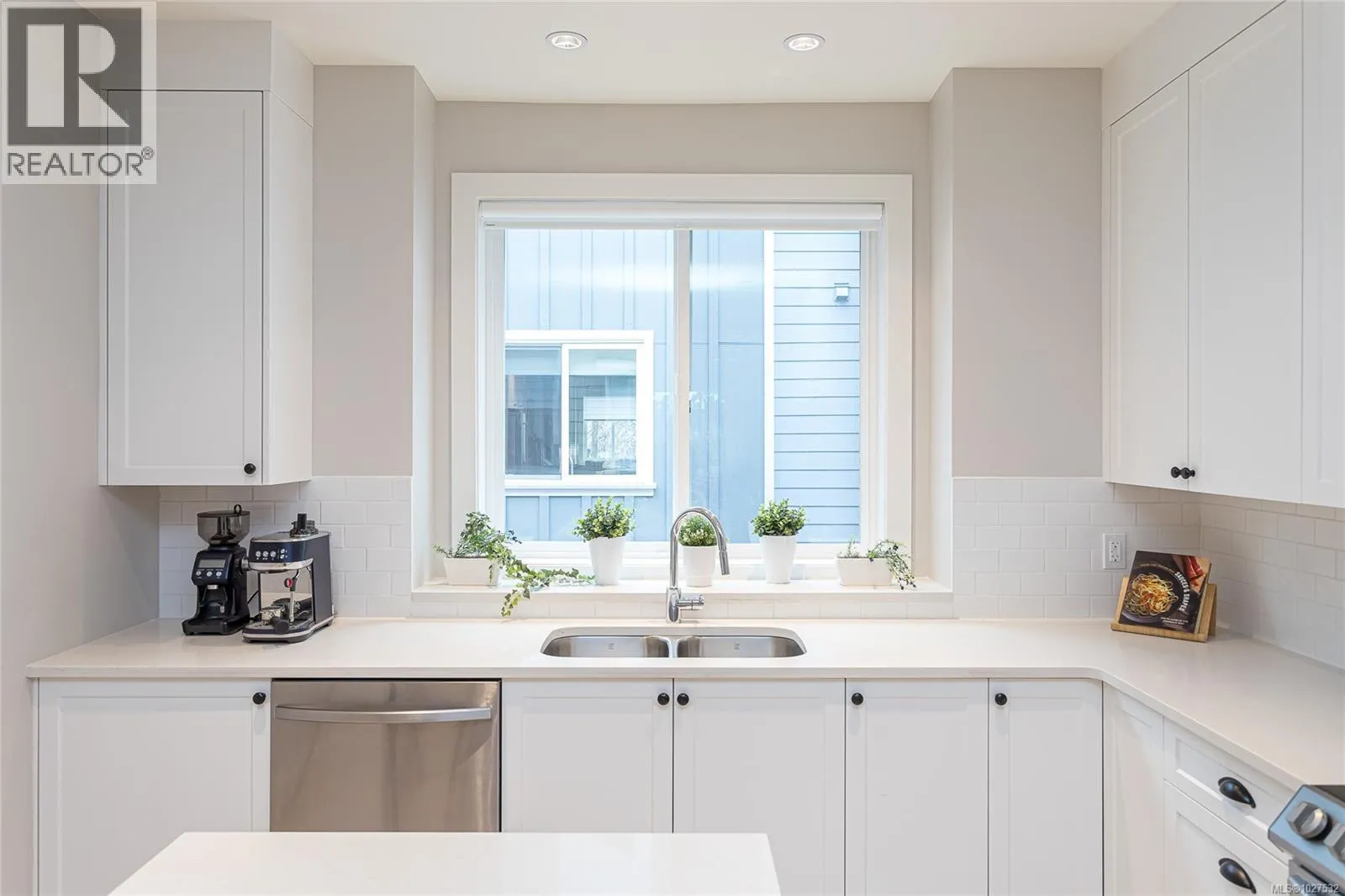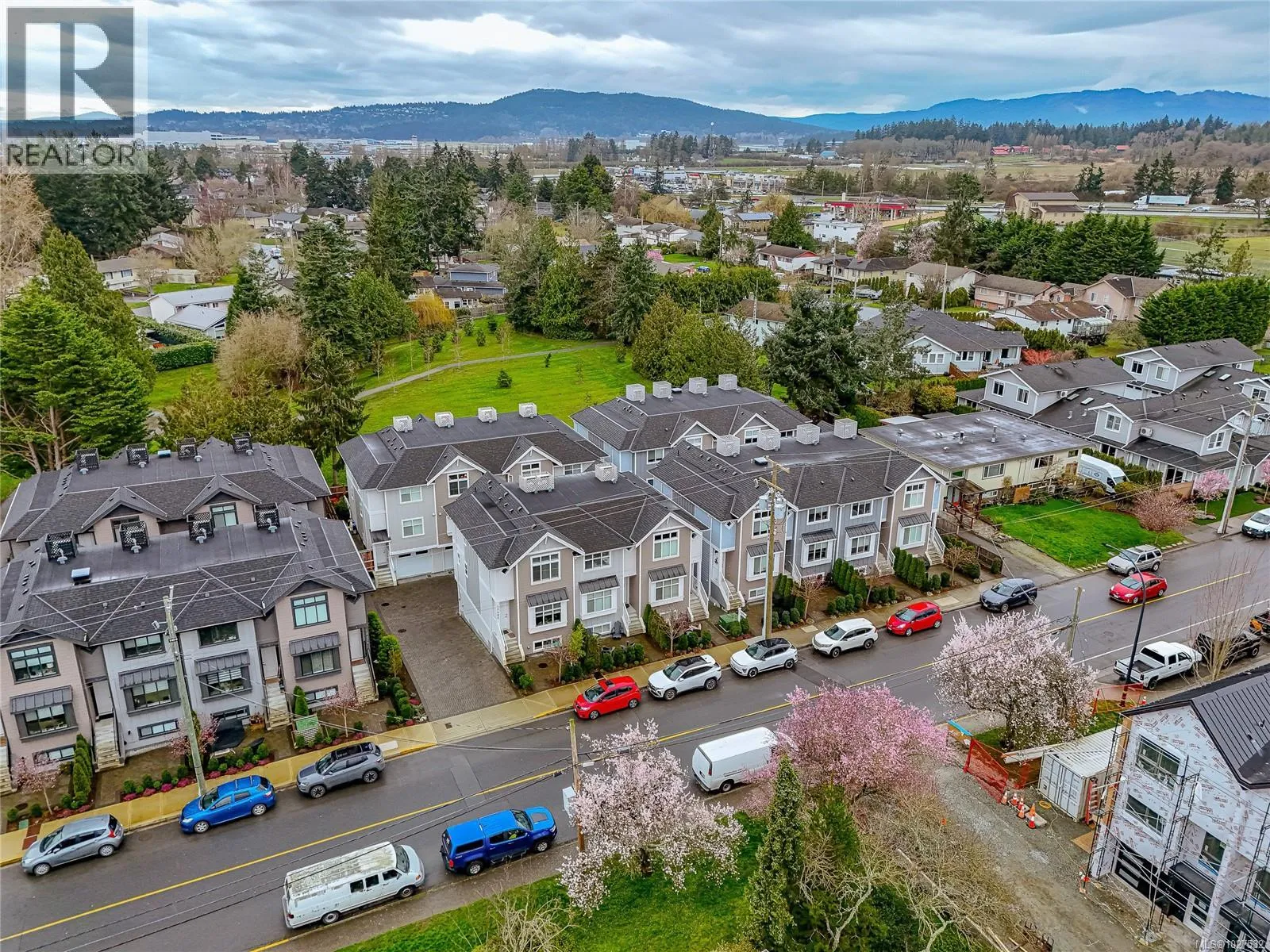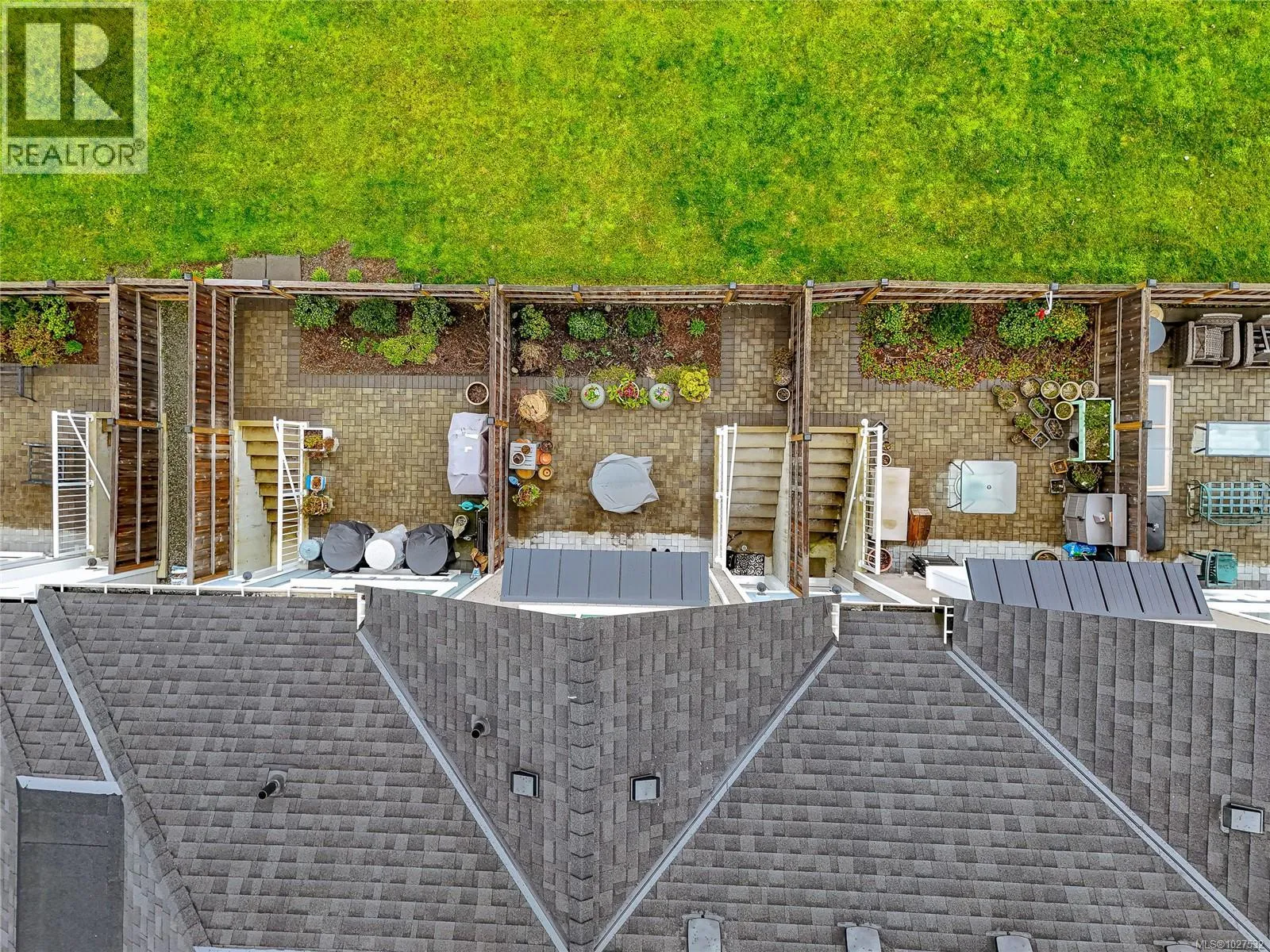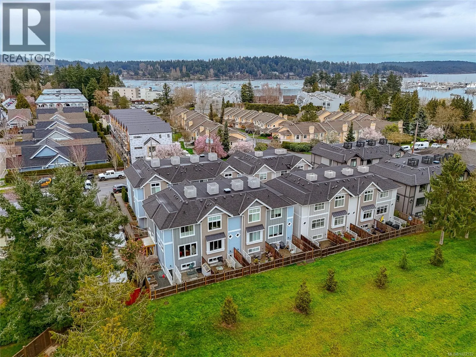 Tucked away on the quiet side of the complex and backing directly onto Melville Park, this nearly new 3-bedroom, 4-bathroom townhome offers privacy, green space, and exceptional walkability. The smart layout features two upper-level bedrooms, each with its own ensuite, plus a third bedroom and full bathroom on the lower levelâideal for guests, teens, or a home office. The bright main floor features 9' ceilings, large windows with peaceful park views, quartz countertops, full-height cabinetry, and a spacious island for entertaining. Enjoy year-round comfort with an efficient ducted heat pump and wall unit for heating and cooling. A sunny, south-facing fenced patio provides the perfect space for gardening or relaxing. Heated bathroom floors, full-size laundry, a powder room, and an oversized EV-ready garage add to the homeâs appeal. Walk to schools, the beach, oceanfront trails, and downtown Sidney in minutes. (id:27476)