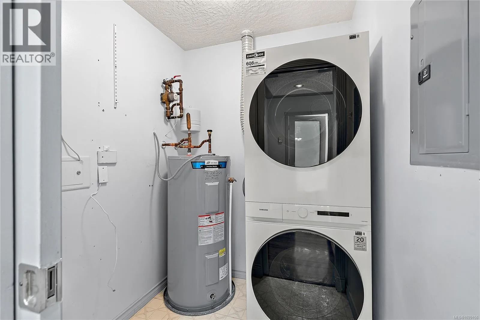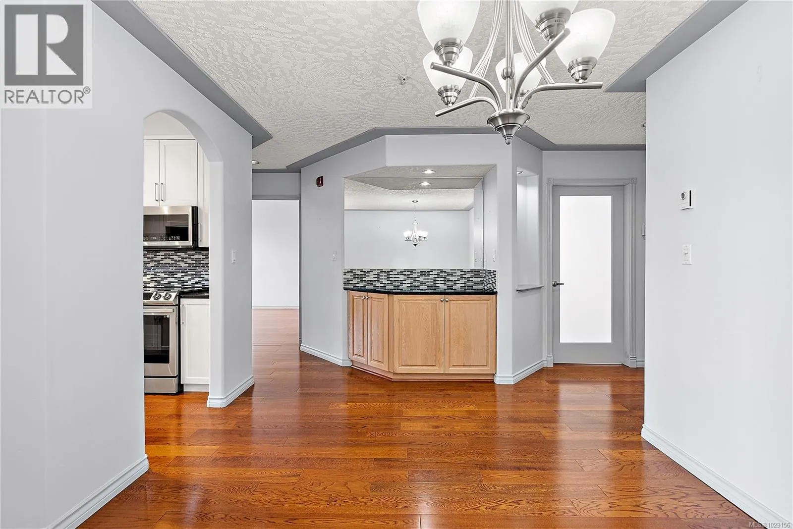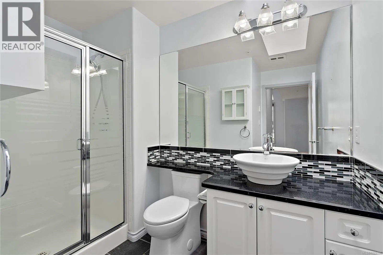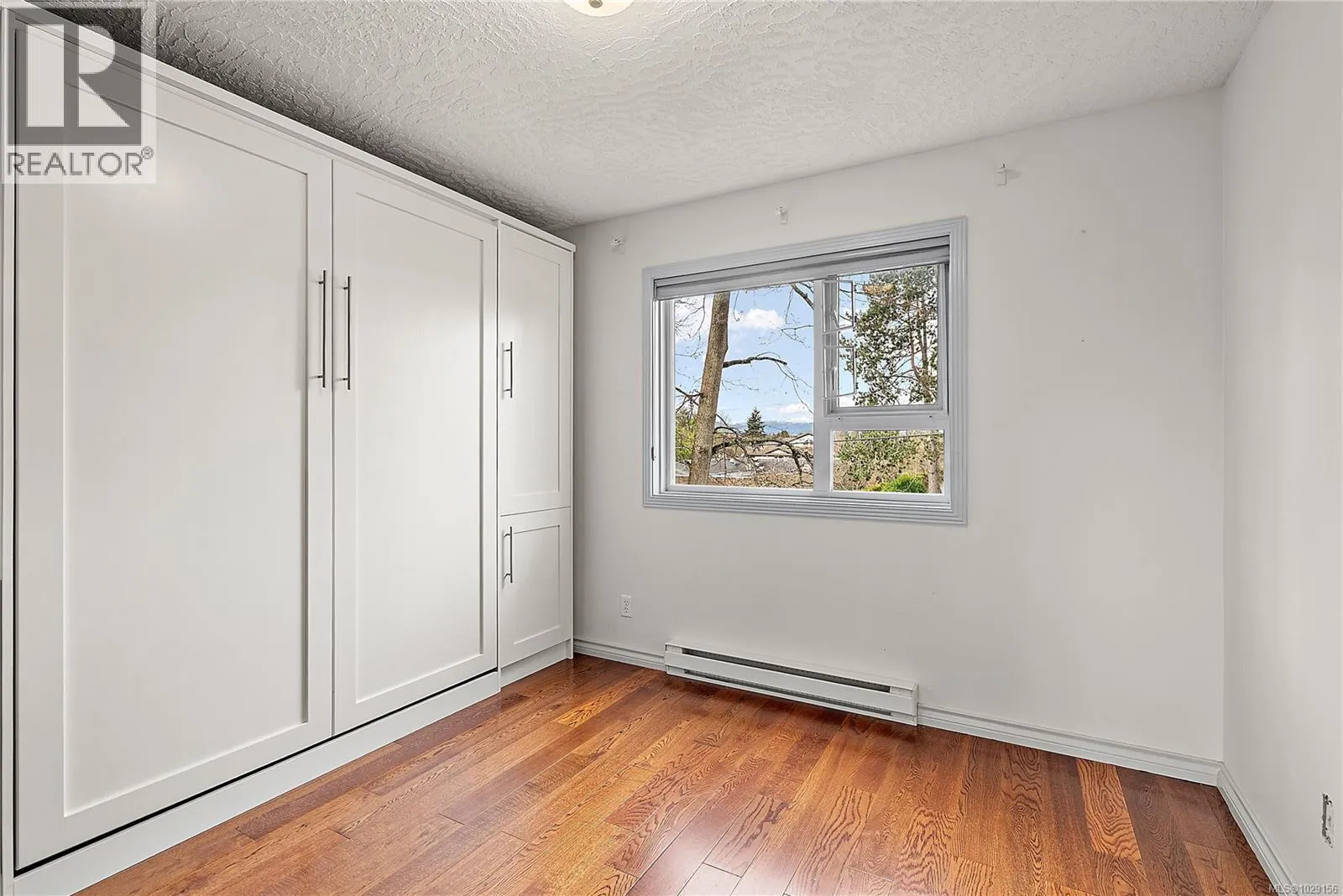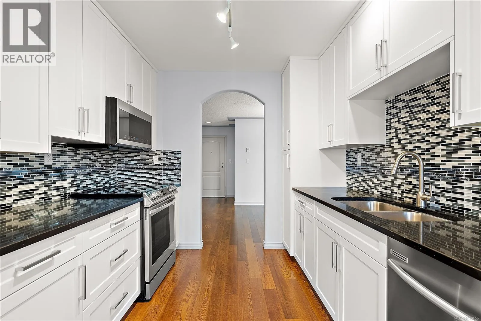 Welcome to The Marlena, one of downtown Sidneyâs most sought-after condominium residences. This beautifully updated top-floor unit offers 1,161 sq ft of bright and inviting living space with high vaulted ceilings and impressive floor-to-ceiling windows that fill the home with natural light. The desirable west-facing exposure provides a warm, sunny outlook over the surrounding neighbourhood and lovely sunsets from your private deck. The spacious layout features a large living room, separate dining area, and an updated kitchen with quartz countertops, quality appliances, and a convenient eating area. The home has been tastefully updated throughout, including wood floors, updated bathrooms, and new window coverings, creating a move-in ready space that blends comfort and style. There are two generously sized bedrooms and two full bathrooms, including a well-appointed primary bedroom with excellent closet space. A separate laundry room with additional storage adds convenience and functionality. This exceptionally well-maintained building offers just 14 units, creating a quiet and welcoming community. Additional features include secure underground parking and a large storage locker. Ideally located just steps from Beacon Avenue, youâll enjoy easy access to Sidneyâs charming shops, restaurants, transit, and the beautiful oceanfront walkways. Opportunities to own in this highly regarded building rarely come available, making this a fantastic chance to enjoy comfortable, low-maintenance living in the heart of Sidney. (id:27476)