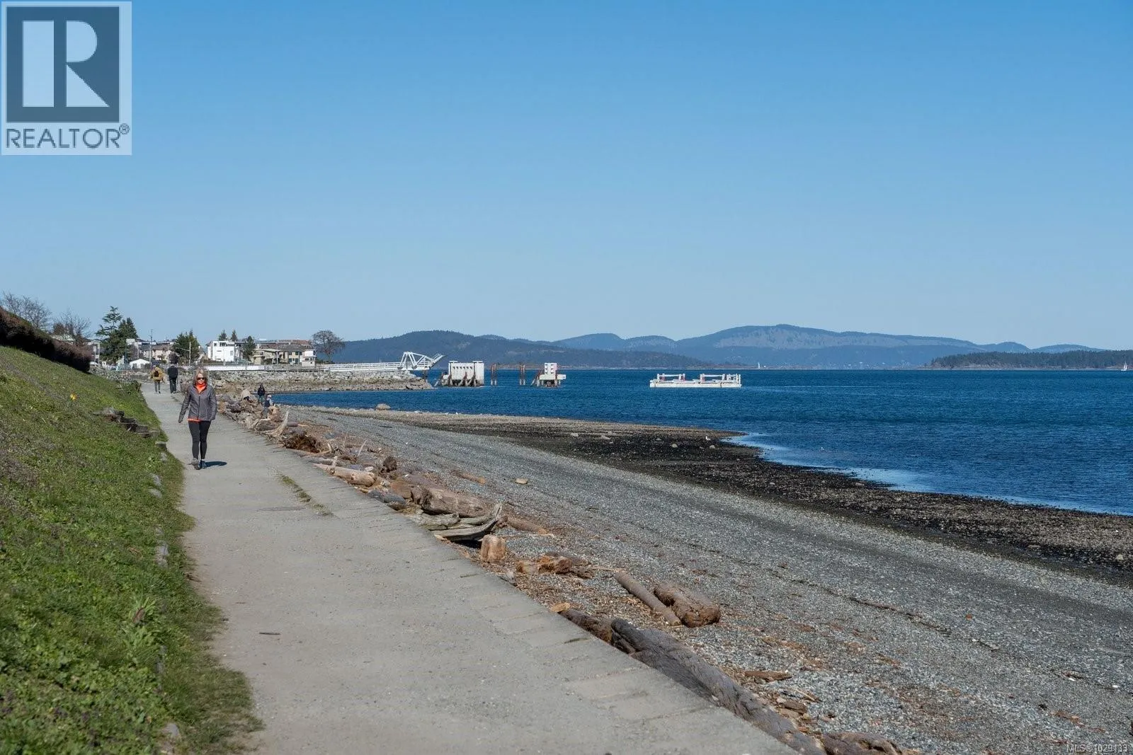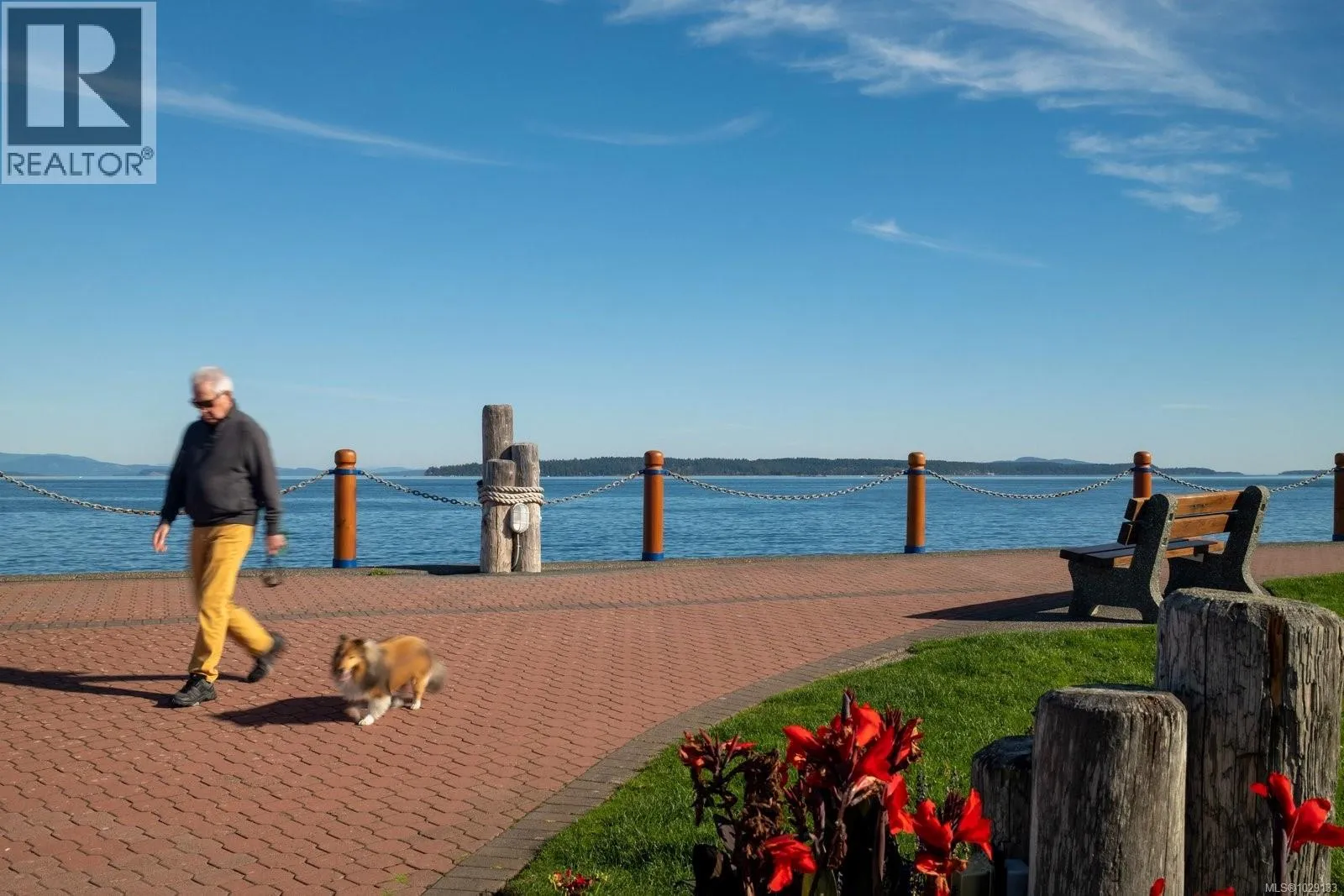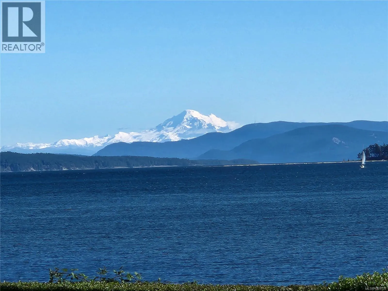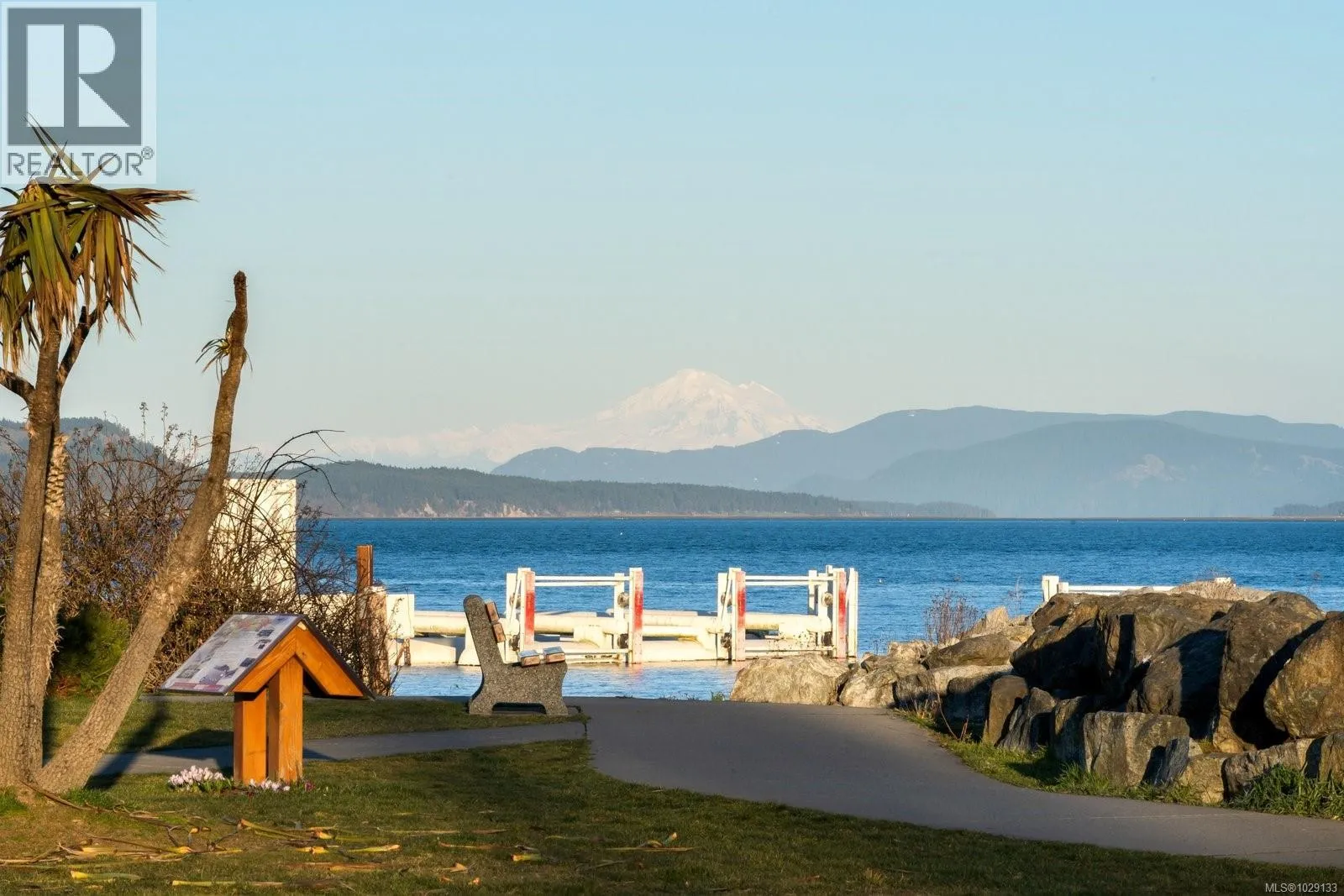 This freshly updated 2,000 sf half-duplex boasts spectacular uninterrupted ocean, island and mountain views. The sun-filled main level features open kitchen, living and dining rooms with a new Valor gas fireplace, hardwood floors and air conditioning. This level also has a renovated 3-piece bathroom and a bedroom/office that opens to the private west facing fenced backyard. Upstairs offers a primary bedroom with a fireplace and a/c, a flex room (that can easily be added back to the primary bedroom), full ensuite with heated floors, an office nook, laundry room, plus an additional bedroom with a 3-piece ensuite. There is plenty of storage throughout the home and a secure detached garage plus a parking stall. Located across from Lochside waterfront park and within walking distance to downtown Sidney, this is a mint condition gem! (id:27476)