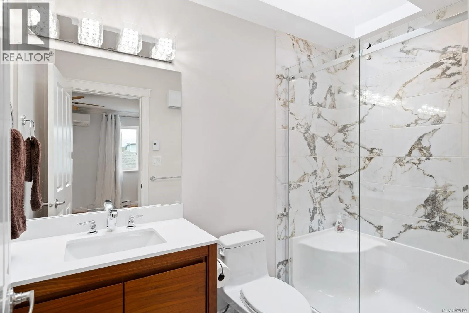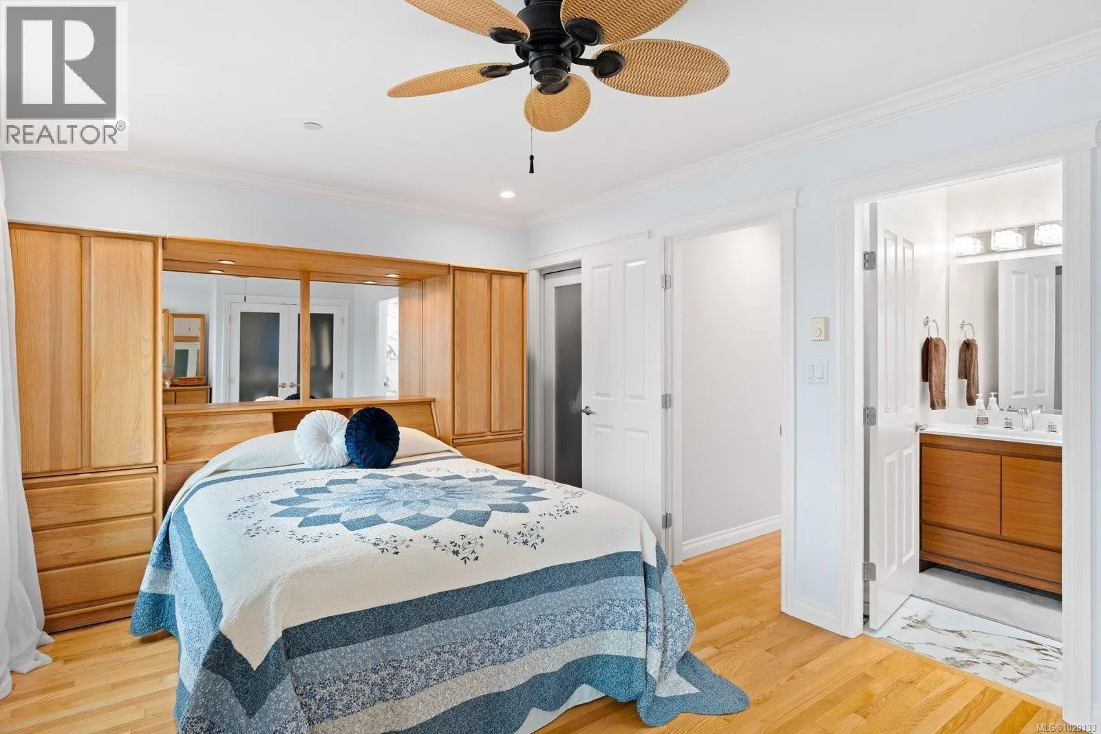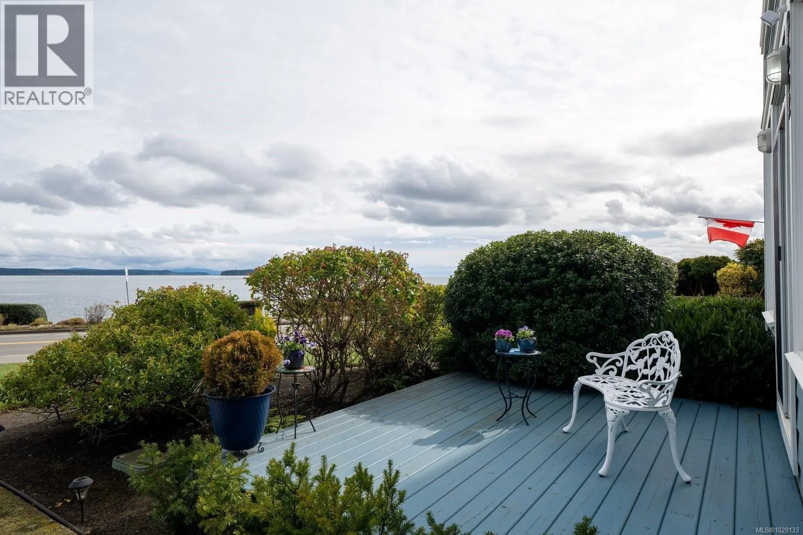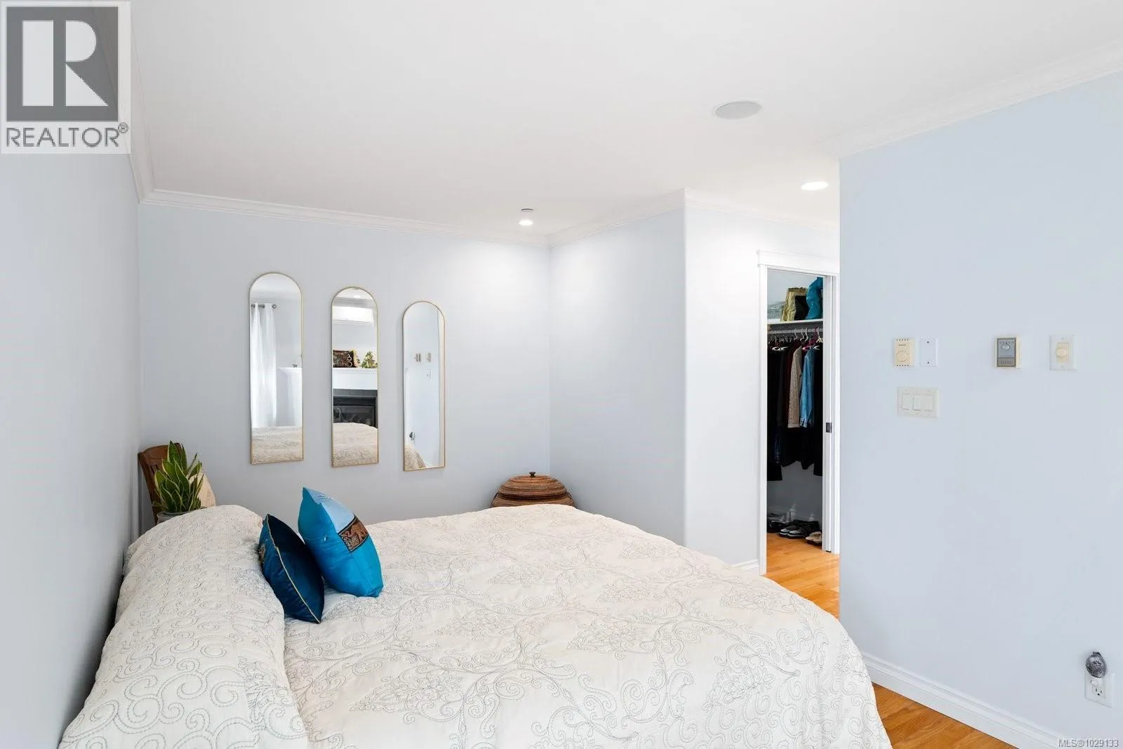 This freshly updated 2,000 sf half-duplex boasts spectacular uninterrupted ocean, island and mountain views. The sun-filled main level features open kitchen, living and dining rooms with a new Valor gas fireplace, hardwood floors and air conditioning. This level also has a renovated 3-piece bathroom and a bedroom/office that opens to the private west facing fenced backyard. Upstairs offers a primary bedroom with a fireplace and a/c, a flex room (that can easily be added back to the primary bedroom), full ensuite with heated floors, an office nook, laundry room, plus an additional bedroom with a 3-piece ensuite. There is plenty of storage throughout the home and a secure detached garage plus a parking stall. Located across from Lochside waterfront park and within walking distance to downtown Sidney, this is a mint condition gem! (id:27476)