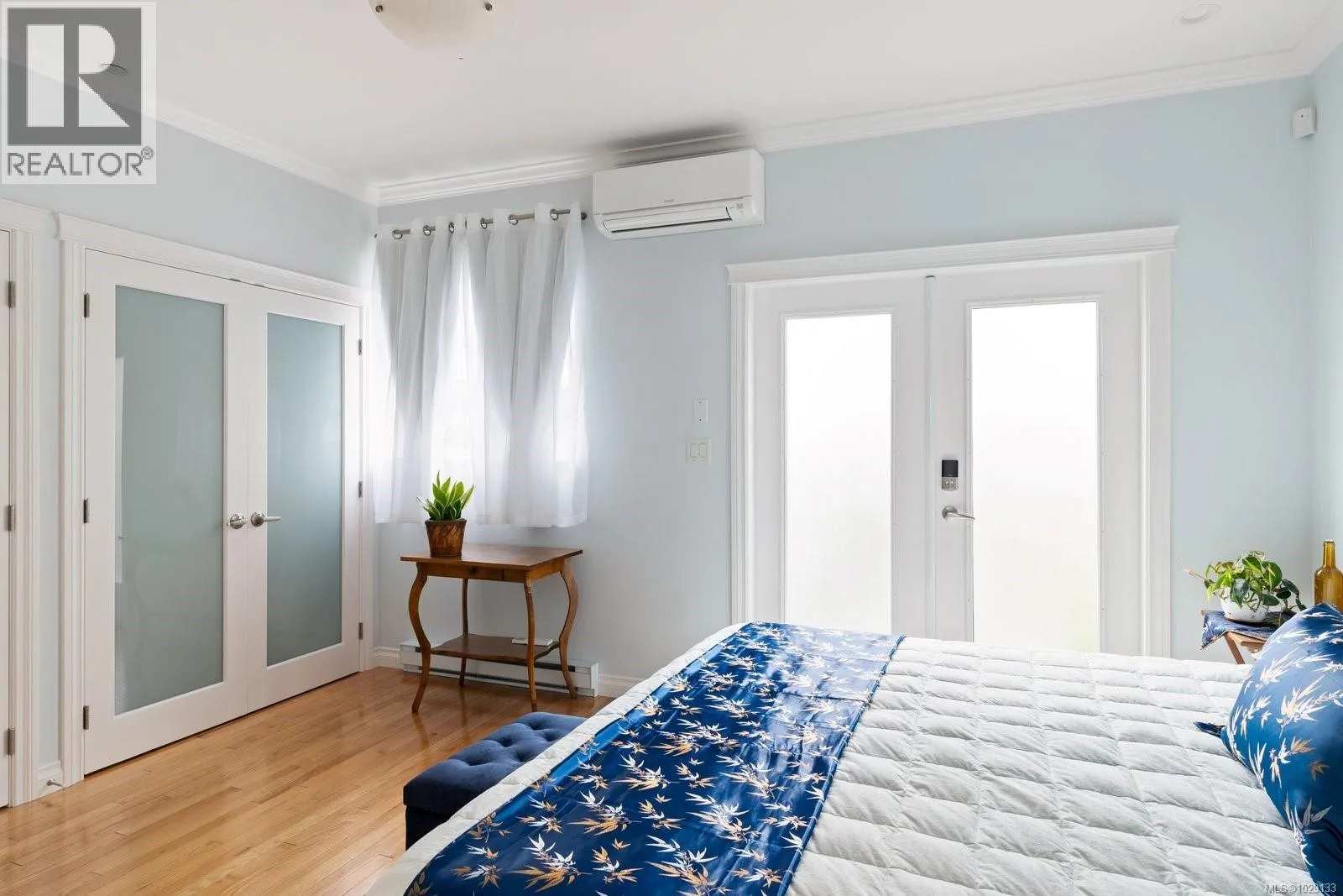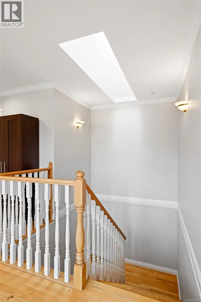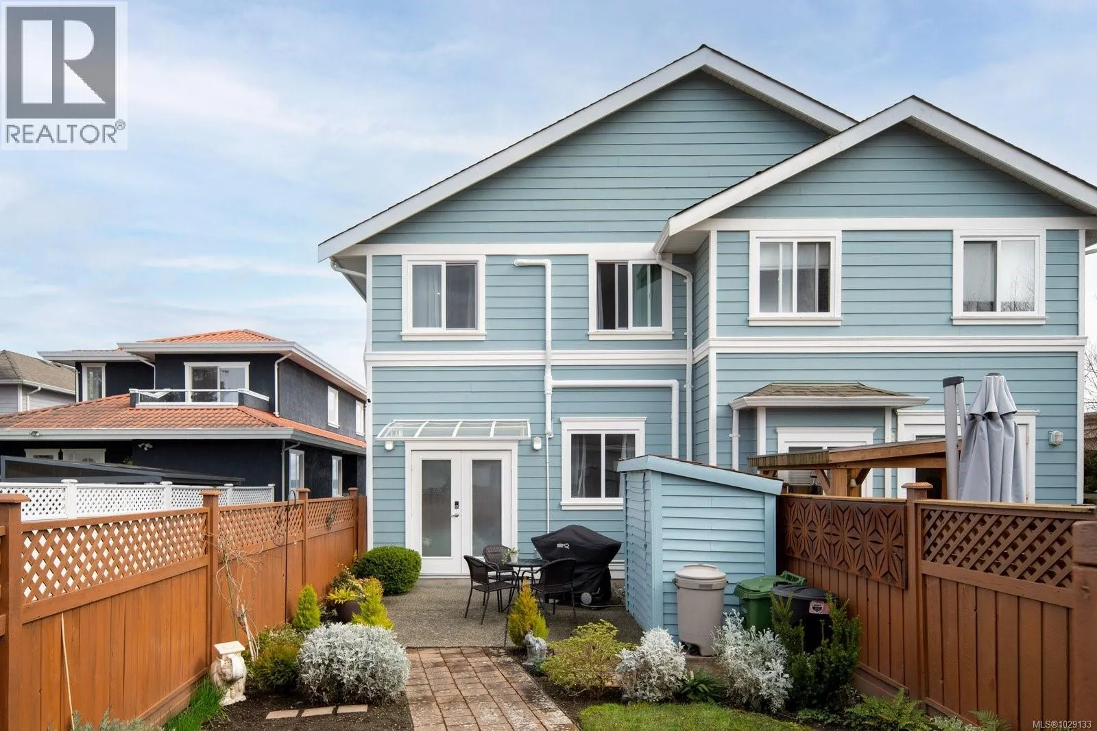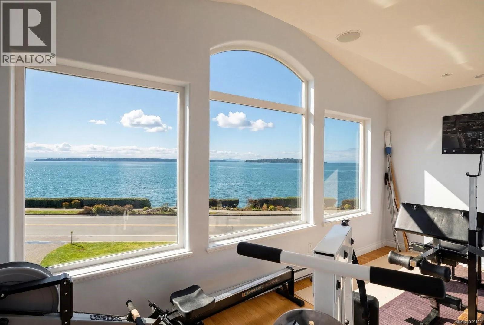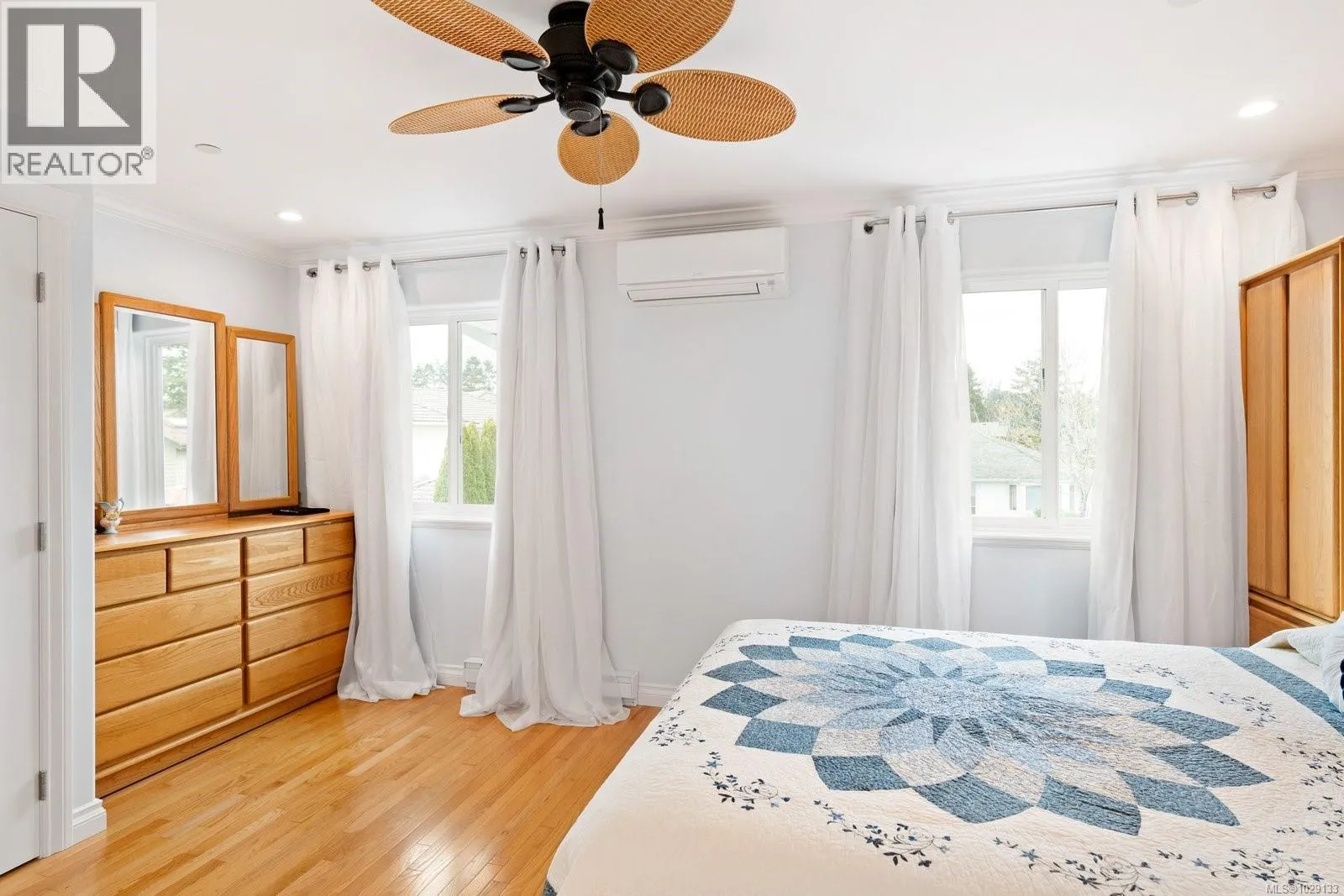 This freshly updated 2,000 sf half-duplex boasts spectacular uninterrupted ocean, island and mountain views. The sun-filled main level features open kitchen, living and dining rooms with a new Valor gas fireplace, hardwood floors and air conditioning. This level also has a renovated 3-piece bathroom and a bedroom/office that opens to the private west facing fenced backyard. Upstairs offers a primary bedroom with a fireplace and a/c, a flex room (that can easily be added back to the primary bedroom), full ensuite with heated floors, an office nook, laundry room, plus an additional bedroom with a 3-piece ensuite. There is plenty of storage throughout the home and a secure detached garage plus a parking stall. Located across from Lochside waterfront park and within walking distance to downtown Sidney, this is a mint condition gem! (id:27476)