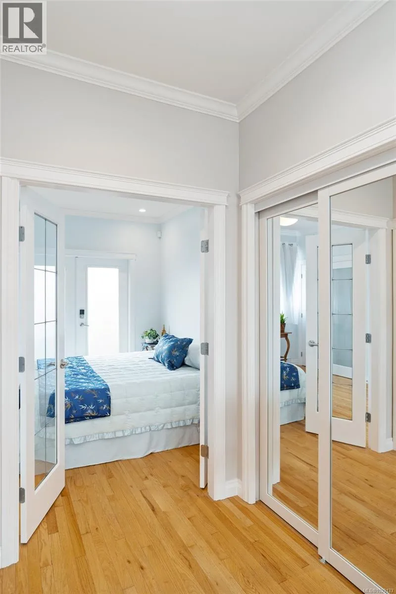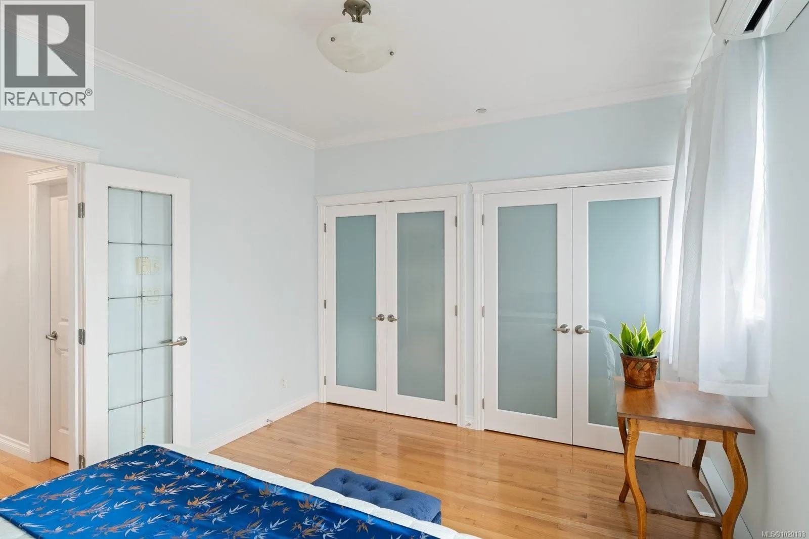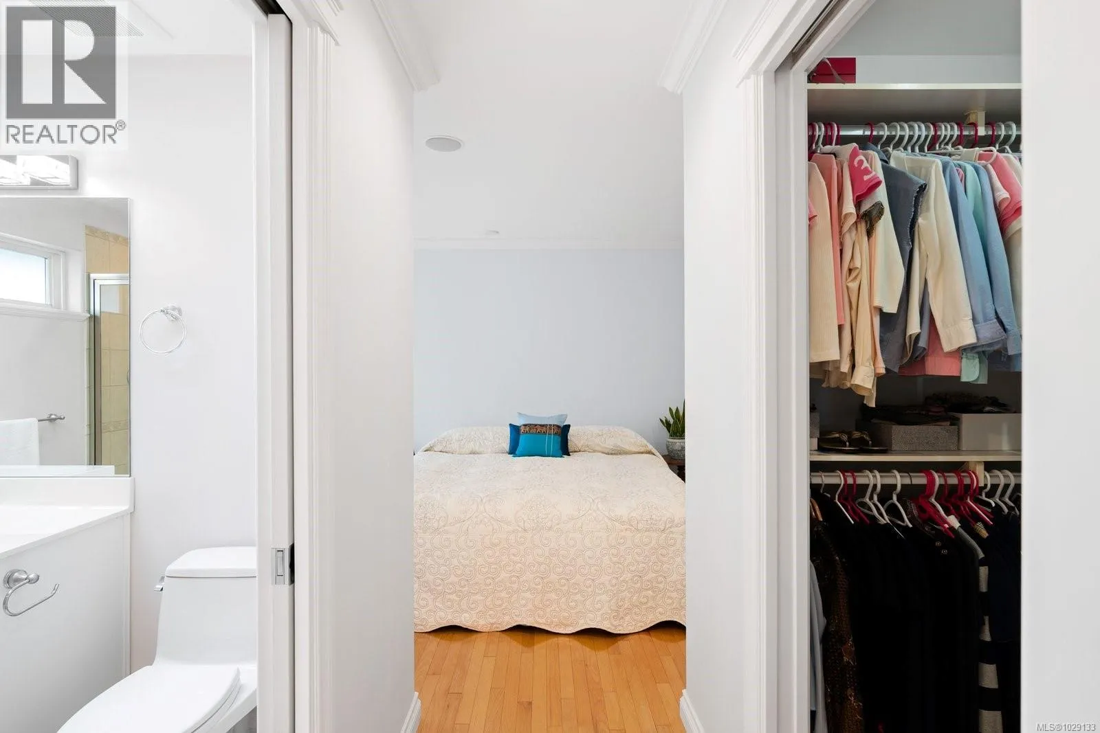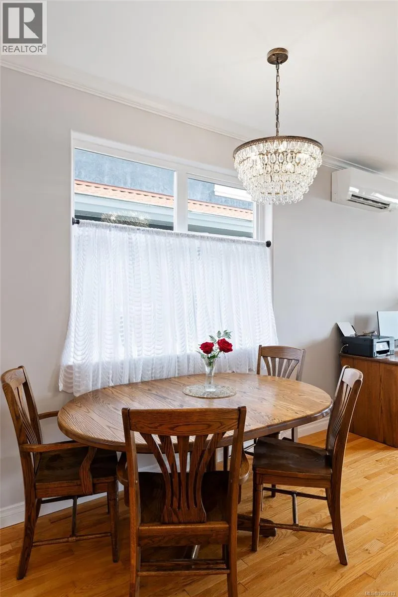 This freshly updated 2,000 sf half-duplex boasts spectacular uninterrupted ocean, island and mountain views. The sun-filled main level features open kitchen, living and dining rooms with a new Valor gas fireplace, hardwood floors and air conditioning. This level also has a renovated 3-piece bathroom and a bedroom/office that opens to the private west facing fenced backyard. Upstairs offers a primary bedroom with a fireplace and a/c, a flex room (that can easily be added back to the primary bedroom), full ensuite with heated floors, an office nook, laundry room, plus an additional bedroom with a 3-piece ensuite. There is plenty of storage throughout the home and a secure detached garage plus a parking stall. Located across from Lochside waterfront park and within walking distance to downtown Sidney, this is a mint condition gem! (id:27476)
