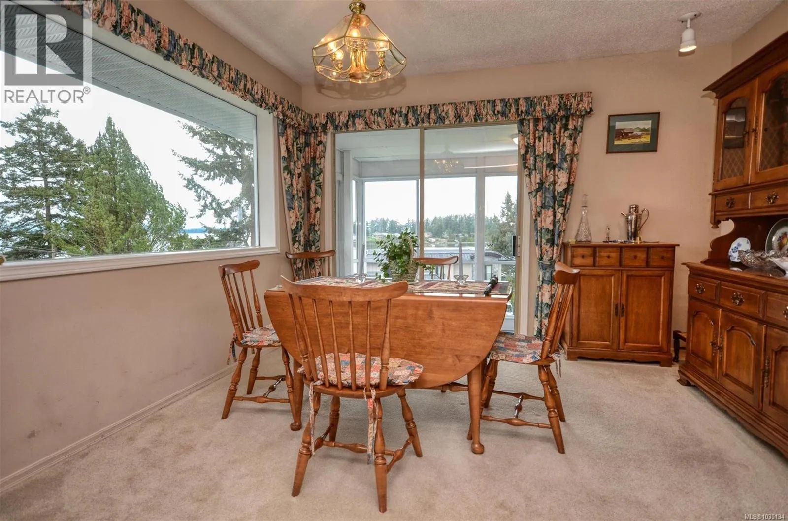 Enjoy outstanding southern ocean views over Roberts Bay and East to Mt. Baker from this very well maintained 3-bedroom, 3-bathroom executive style home. As soon as you walk through the front door you will be impressed by the gorgeous views and the natural light that this home was designed to take advantage of. Offering over 2,700 sq. ft. of finished living space, this home includes: a sunken living room with a feature rock fireplace and gas insert, a kitchen that is open to formal dining, an open family room, primary bedroom with ensuite, sliding doors to 3 water view decks, a den with murphy bed, workshop, laundry room, recreation room, as well as a double carport. In addition, the meticulously landscaped lot offers a sprinkler system, flower beds, rockeries, tool shed, plus boat or RV parking space. All of this, and located on a quaint no thru road with parks, shopping, dining, and the beautiful town of Sidney nearby. A pleasure to view. (id:27476)