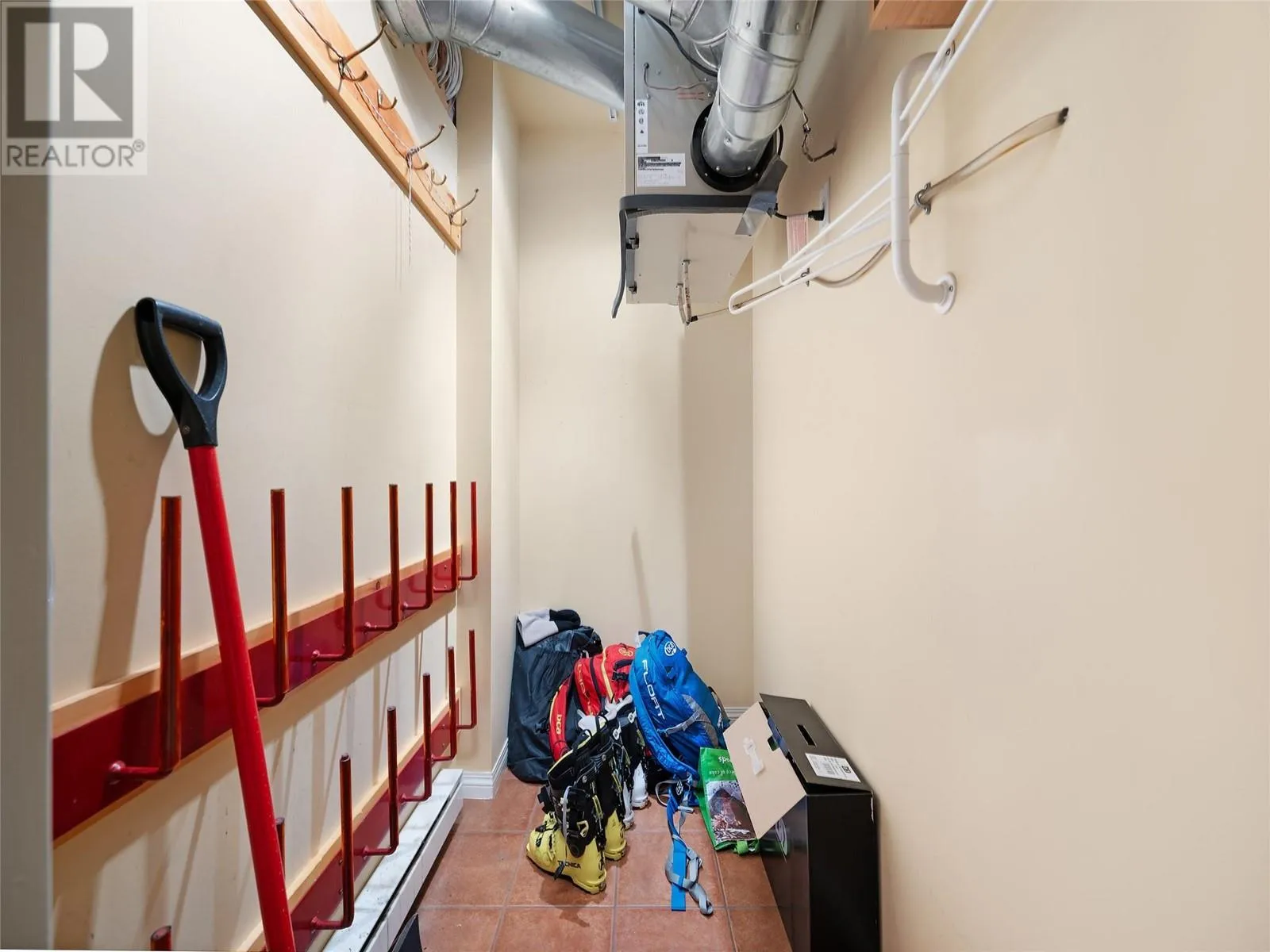 Nestled in the desirable Knoll at Silver Star Mountain Resort, this rare two-bedroom suite offers breathtaking views of the ski slopes and the Village. With no GST and no rental obligations, this unit is perfect for quick possession and immediate enjoyment. The open-concept layout, enhanced by 9-foot ceilings and abundant natural light from the numerous windows, creates a spacious and inviting atmosphere. Step out onto the covered deck to relax in your private hot tub while enjoying the mountain scenery. The suite features in-suite laundry, hot water heating, and a practical layout designed for convenience. A dedicated ski locker, waxing station, and storage room located near the main entry make it easy to gear up for your outdoor adventures. Situated adjacent to a ski way, biking, and walking path, this property offers unparalleled access to year-round recreation. Don't miss this opportunity to own a piece of mountain paradise! (id:27476)
