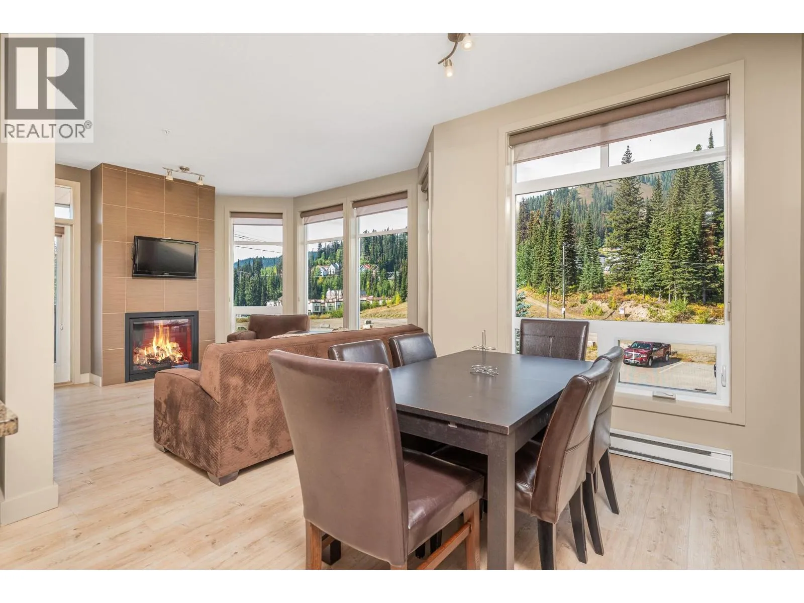 Enjoy ski-in/ski-out convenience with this 2nd-floor corner condo in Firelight at Silver Star Mountain Resort. Perfectly located beside the skating pond and Tube Town, with easy access to the Silver Queen chair and Nordic trails, this 2-bedroom, 1-bathroom unit is fully furnished and move-in ready. The open layout includes a well-equipped kitchen, in-unit washer/dryer, and a private balcony. The second bedroom is furnished with bunks, making it ideal for families or guests. Firelight offers excellent amenities, including a central lobby, two elevators, underground parking, ski lockers, a wax room, secure bike storage, and a shared outdoor hot tub. This property can be added back into the rental pool for revenue potential, and with no current bookings to honor, you can start enjoying the mountain lifestyle right away. GST applicable. (id:27476)