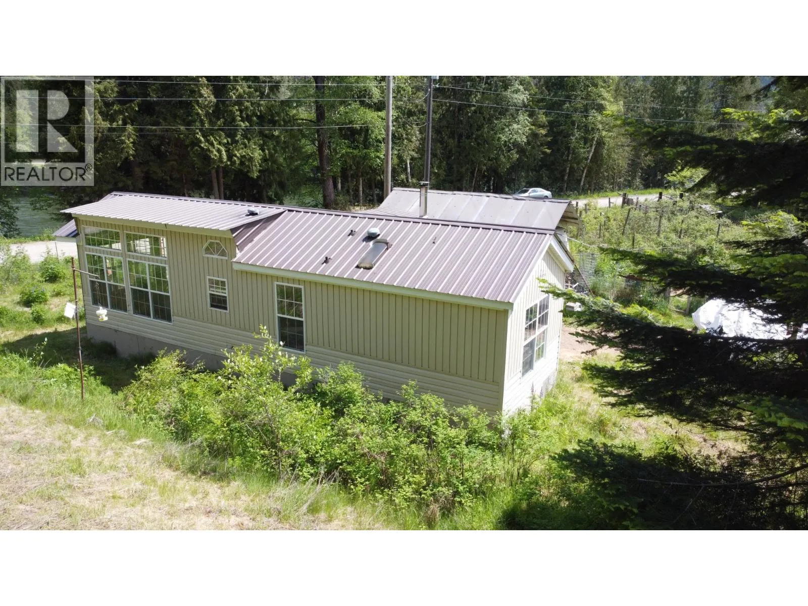 2007 Breckenridge Park Model with 2 bedrooms and 663 sqft of living space, offering the perfect opportunity for a cozy 'tiny' home experience on a fully developed Slocan River on a 1.1-acre lot with spring fed well. Septic, water and power are all done with permits. The dwelling contains an additional mudroom with wood stove. This charming property features a mostly flat terrain with a sloped NW side with a walking path to a bench viewpoint. Ideal for gardening enthusiasts with numerous garden beds ready for reworking. Well established blueberries and raspberries. Embrace the tranquility and beauty of riverside living in this unique and inviting retreat. (id:27476)