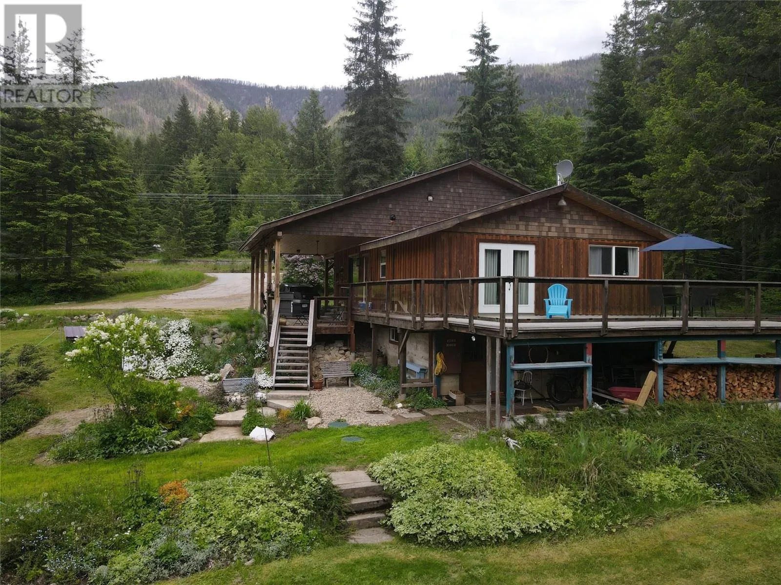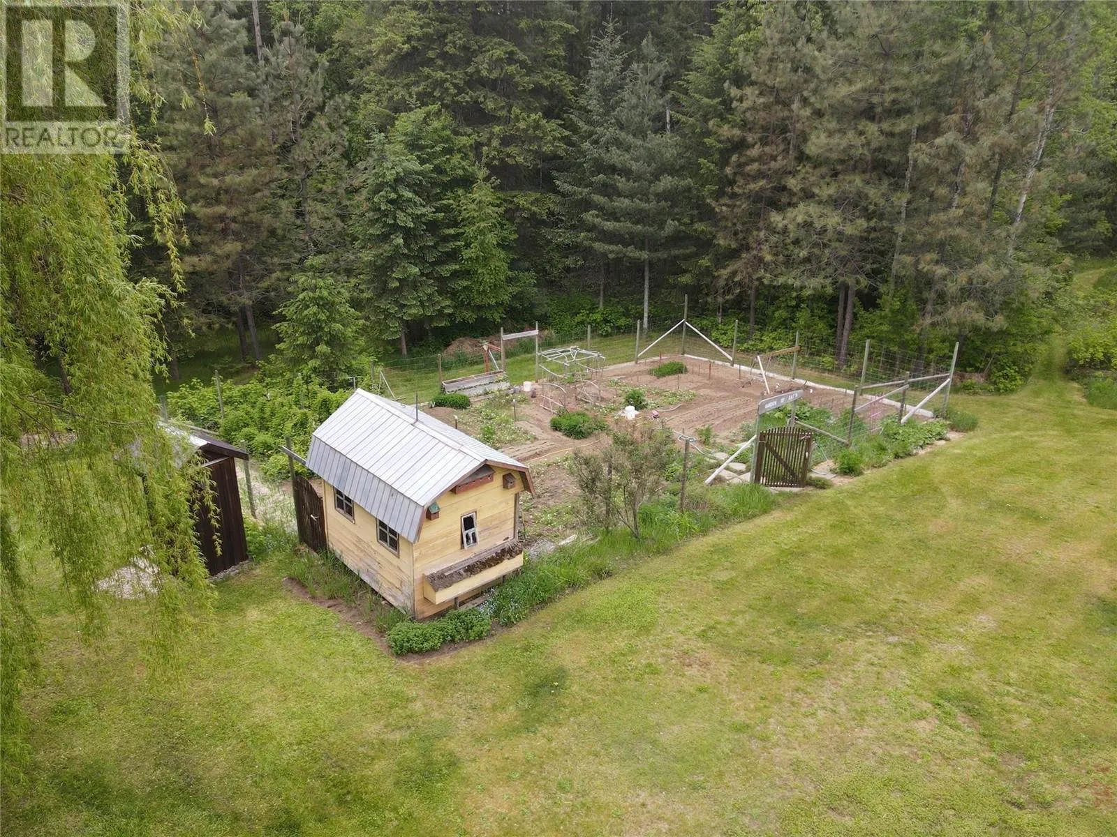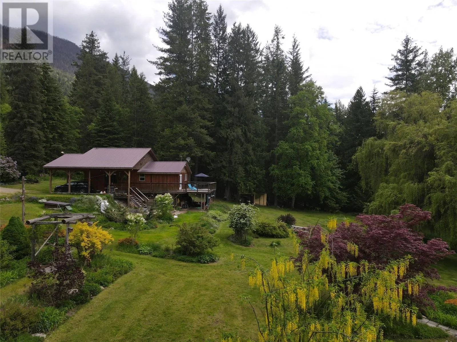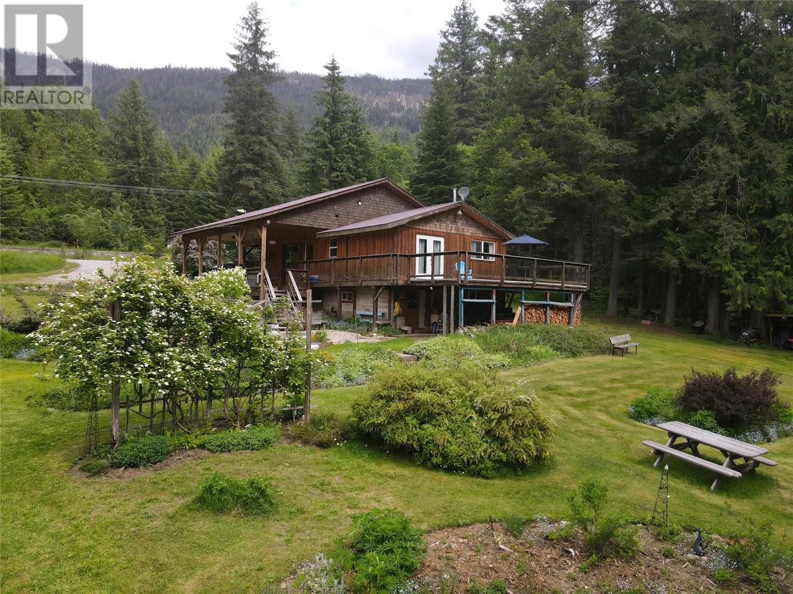 This remarkable property is a rare 49.2 acres of natural beauty. The expansive flat land is mostly forested with some clearings and a large landscaped yard complete with vegetable gardens, willow trees, fruit trees, flower beds, and multiple outbuildings. Bordering the Rail Trail, outdoor adventures are right at your doorstep, while stunning views of the Valhallas provide a picturesque backdrop to everyday life. The inviting home is well-maintained and comfortable offering 5-bedrooms and two bathrooms including the primary bedroom with French doors onto a large deck overlooking the yard and an ensuite. The custom kitchen features warm wood cabinets and modern amenities while the living room is a bright and inviting space. Downstairs offers two more bedrooms, additional storage, laundry and a wood stove. There is a new heat pump. The property has multiple water licences and trails also throughout and is only minutes from Slocan City and pristine Slocan Lake. (id:27476)