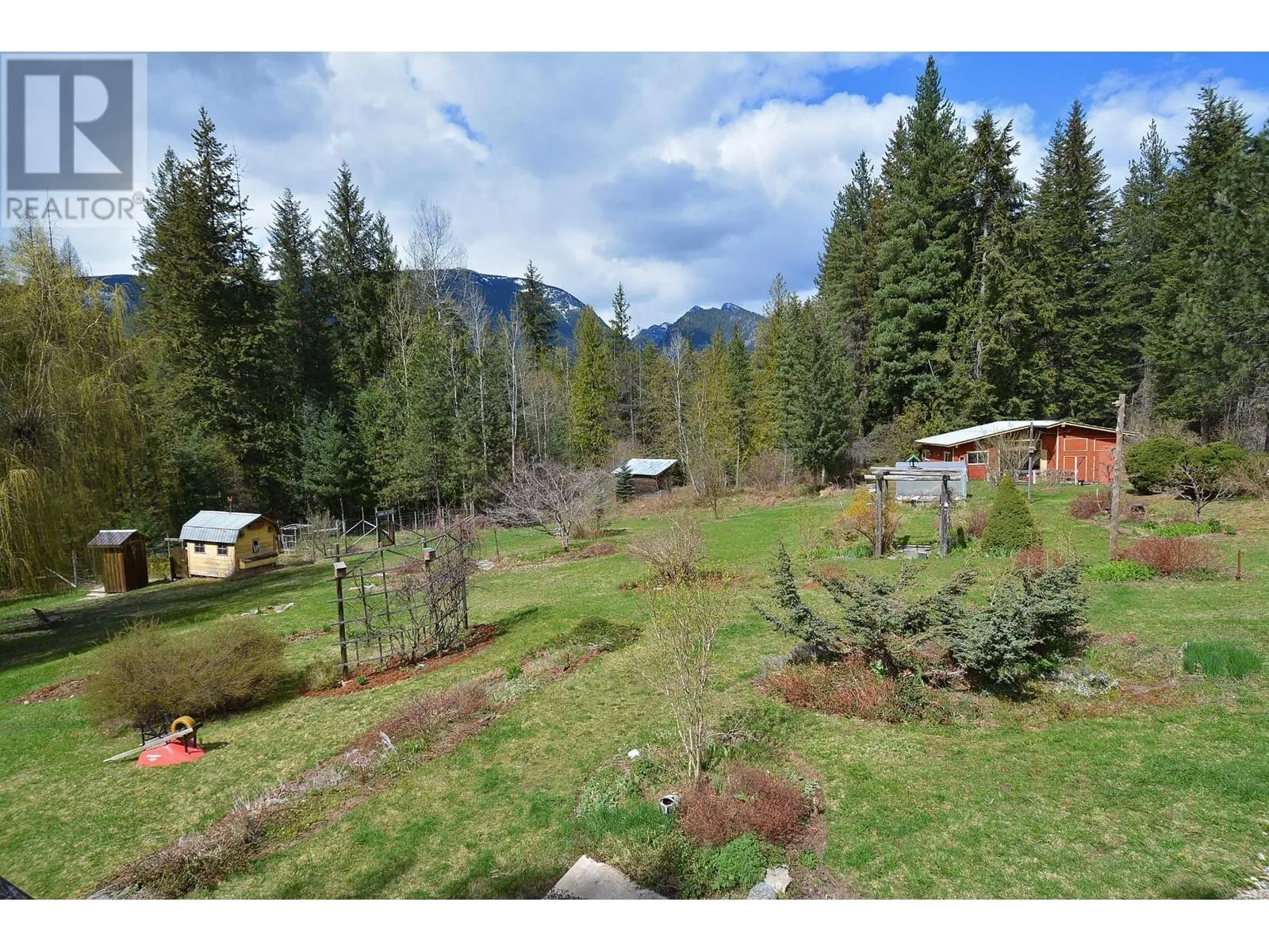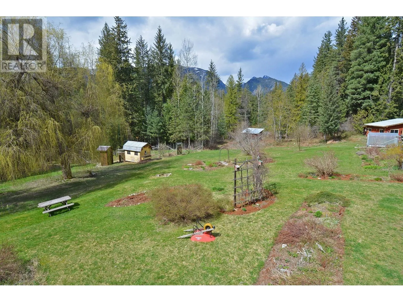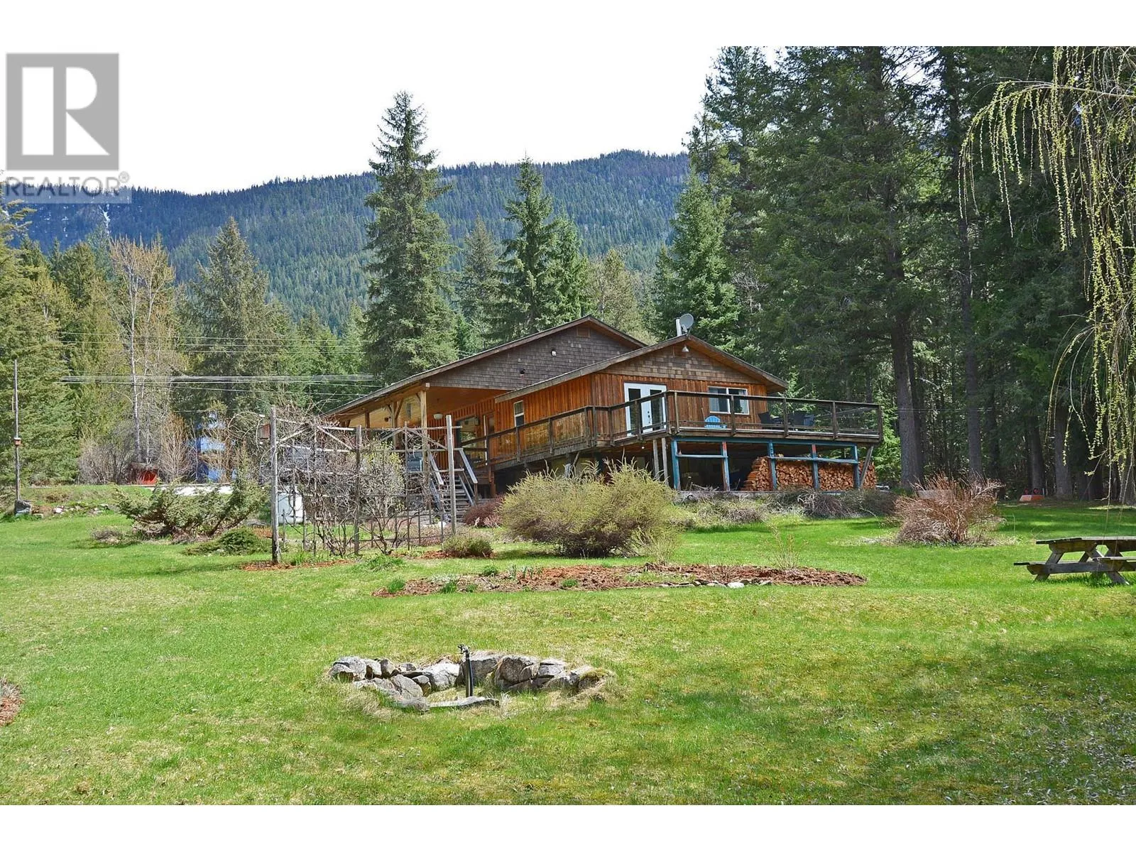 This remarkable property is a rare 49.2 acres of natural beauty. The expansive flat land is mostly forested with some clearings and a large landscaped yard complete with vegetable gardens, willow trees, fruit trees, flower beds, and multiple outbuildings. Bordering the Rail Trail, outdoor adventures are right at your doorstep, while stunning views of the Valhallas provide a picturesque backdrop to everyday life. The inviting home is well-maintained and comfortable offering 5-bedrooms and two bathrooms including the primary bedroom with French doors onto a large deck overlooking the yard and an ensuite. The custom kitchen features warm wood cabinets and modern amenities while the living room is a bright and inviting space. Downstairs offers two more bedrooms, additional storage, laundry and a wood stove. There is a new heat pump. The property has multiple water licences and trails also throughout and is only minutes from Slocan City and pristine Slocan Lake. (id:27476)