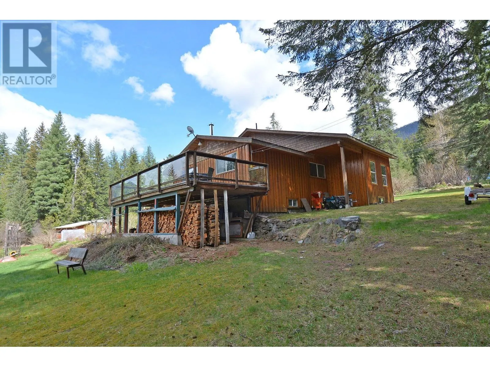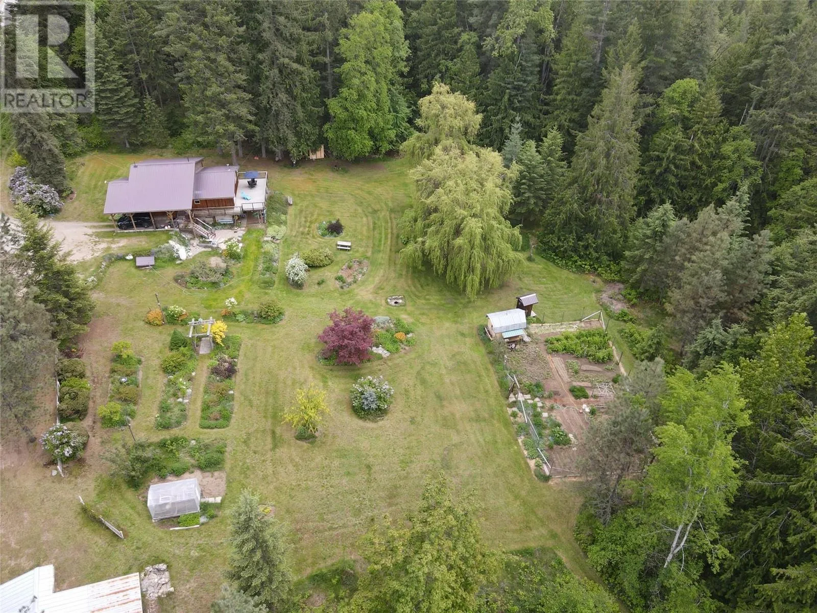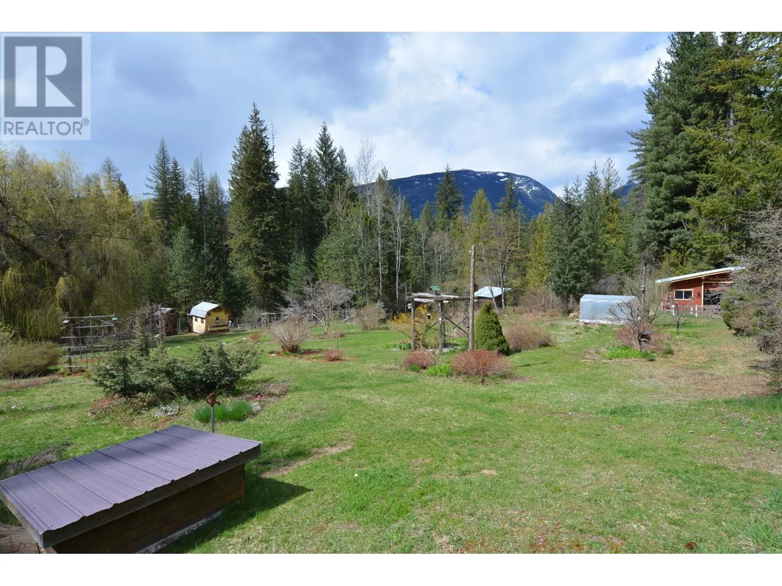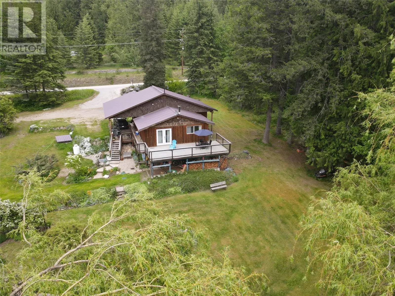 This remarkable property is a rare 49.2 acres of natural beauty. The expansive flat land is mostly forested with some clearings and a large landscaped yard complete with vegetable gardens, willow trees, fruit trees, flower beds, and multiple outbuildings. Bordering the Rail Trail, outdoor adventures are right at your doorstep, while stunning views of the Valhallas provide a picturesque backdrop to everyday life. The inviting home is well-maintained and comfortable offering 5-bedrooms and two bathrooms including the primary bedroom with French doors onto a large deck overlooking the yard and an ensuite. The custom kitchen features warm wood cabinets and modern amenities while the living room is a bright and inviting space. Downstairs offers two more bedrooms, additional storage, laundry and a wood stove. There is a new heat pump. The property has multiple water licences and trails also throughout and is only minutes from Slocan City and pristine Slocan Lake. (id:27476)