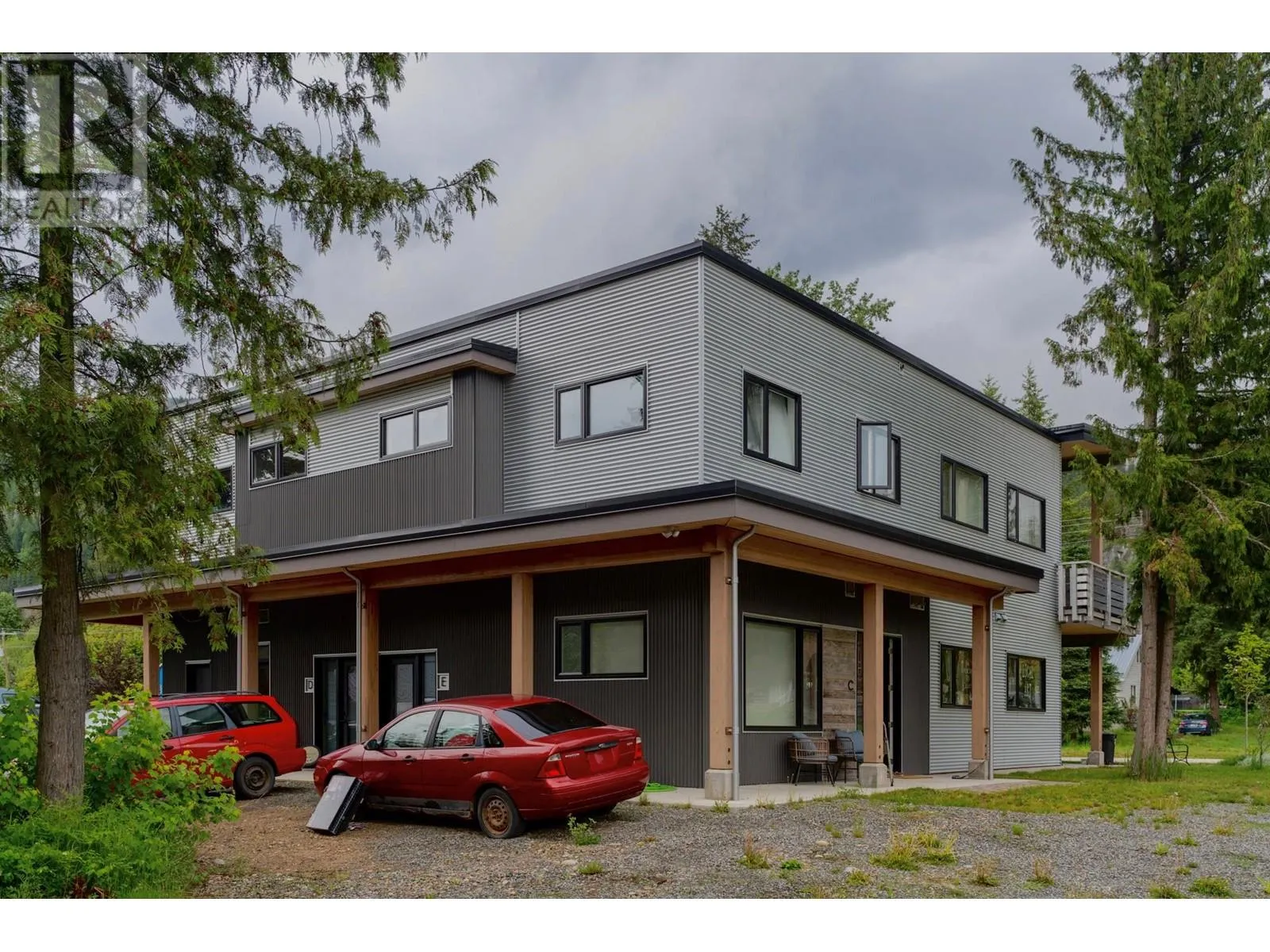 This is truly a one-of-a-kind opportunity for adventurous investors. Tucked away in a picturesque lakefront village known for its natural beauty and recreational lifestyle, this property offers a rare blend of residential, commercial, and short-term rental income potentialâall under one roof. Designed with flexibility and functionality in mind, the building features two bright and spacious 2-bedroom residential units on the upper level, each with open-concept living, full bathrooms, large covered decks, and plenty of natural light. Below, the main floor includes a commercial storefrontâcurrently home to a boutique artisan/tattoo shopâand two well-appointed short-term rental suites. Thoughtful design touches are evident throughout, including common laundry, private storage spaces, low-maintenance landscaping, and a private yard area for short-term guests to unwind. The aesthetic strikes a perfect balance between contemporary comfort and the rugged, creative spirit of the Kootenaysâpaying tribute to the regionâs industrial heritage while delivering modern-day appeal. Whether you're looking to live on-site, operate a business, or simply enjoy strong passive income from a multi-stream investment, this property checks every box. Nature, culture, income, and lifestyleâall in one place. A rare chance to own something that truly reflects the charm and potential of the region. (id:27476)