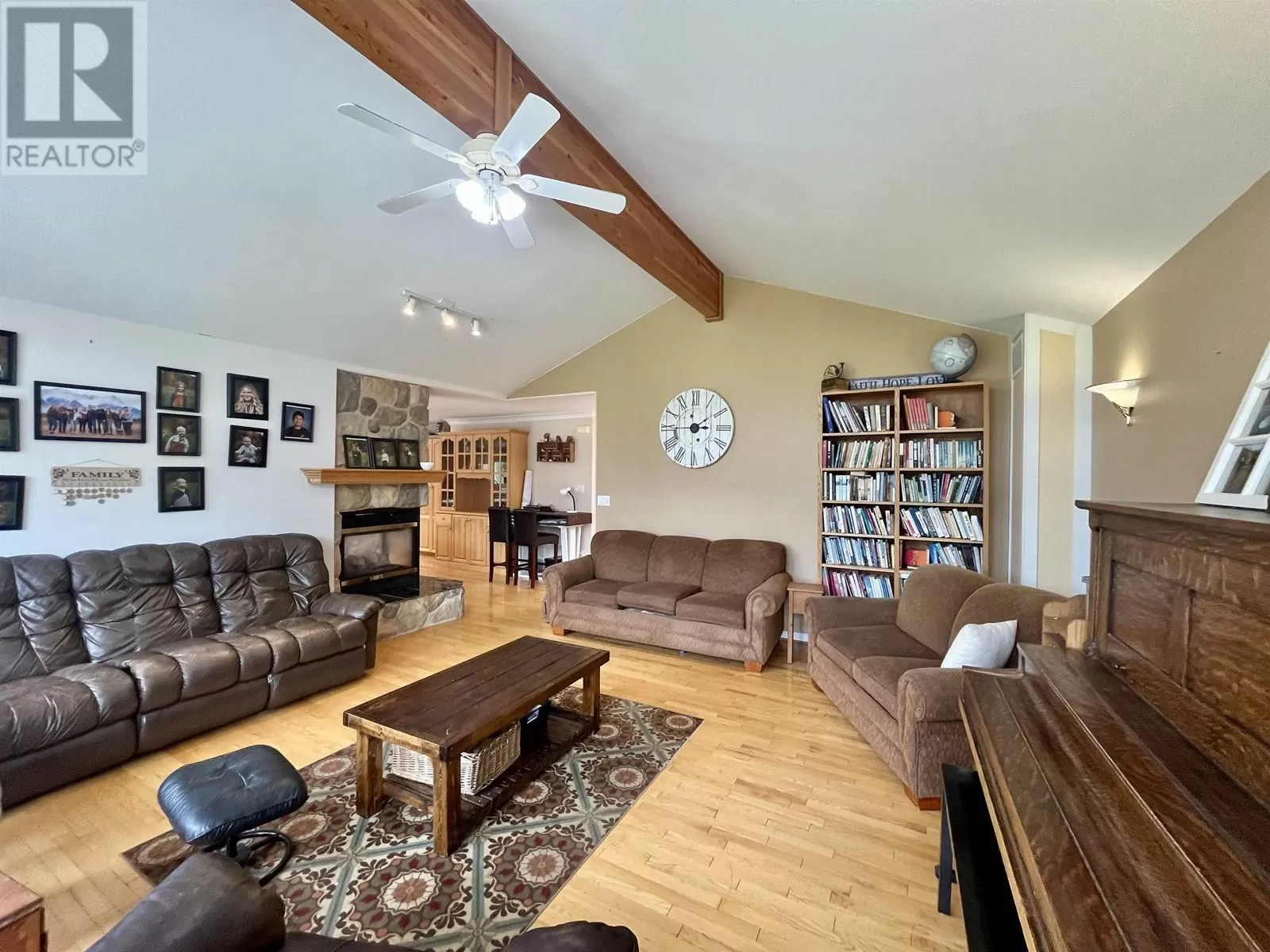 Welcome to this spacious 3,500 sq. ft. home situated on over 14 private acres with valley views. Step inside to a warm and inviting kitchen featuring rich natural wood cabinetry and generous counter space. The open-concept layout flows seamlessly past a natural gas fireplace with custom stonework into the expansive living room with large windows. The main level also offers the primary suite with a 5-piece ensuite and walk-in closet, along with a second bedroom. Downstairs, you'll find a massive rec room, alongside four additional bedrooms. With two separate entrances to the lower level, thereâs potential to create an in-law suite. Outside enjoy the 40x60 shop with 16' ceilings, a 44'x50' storage shed, animal shelters. Explore subdividing this lot with the H-1 zoning (id:27476)