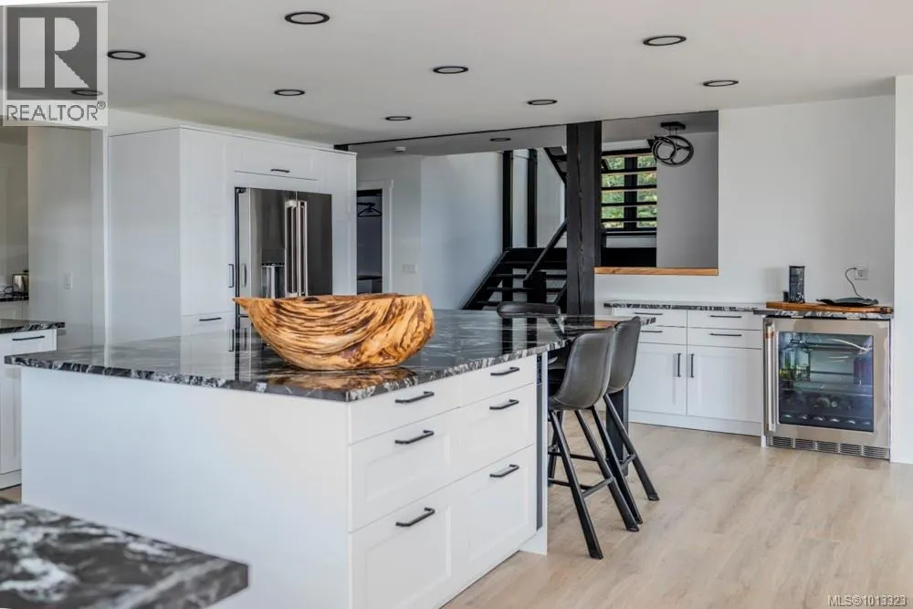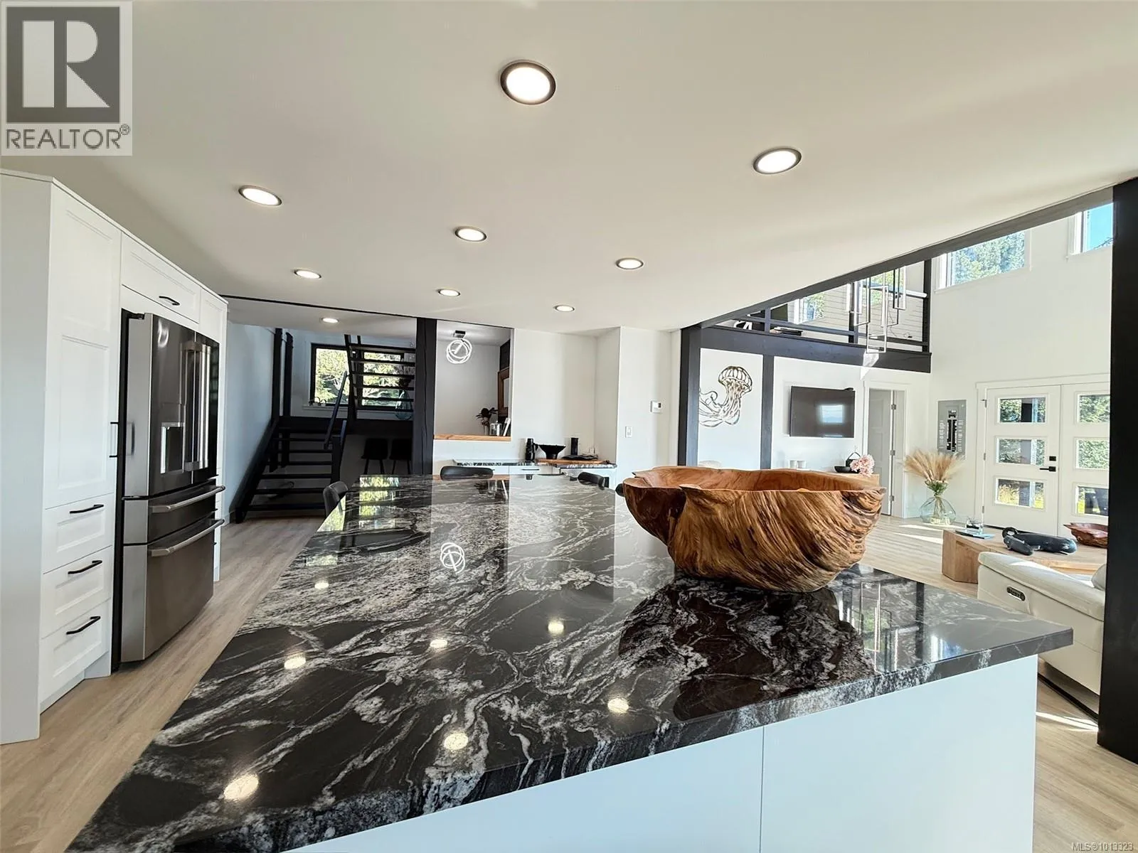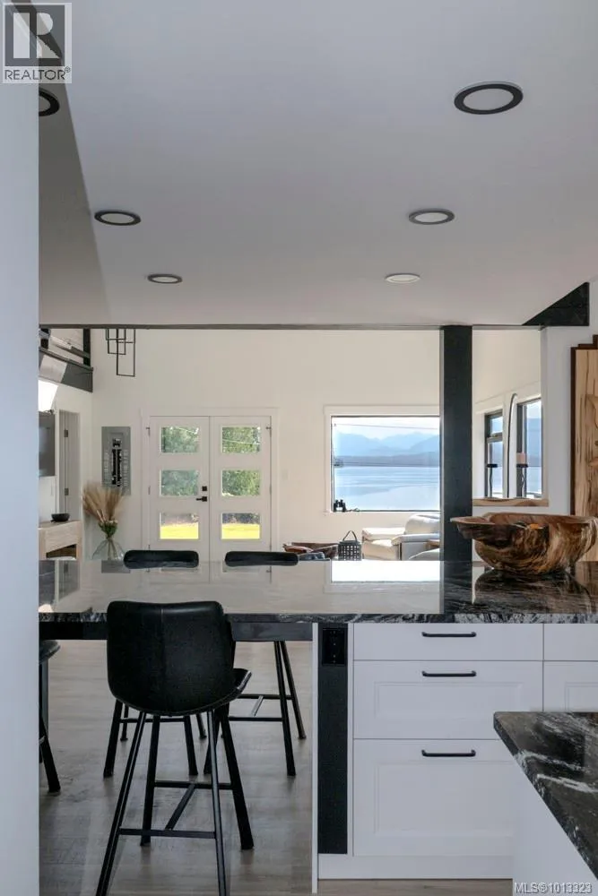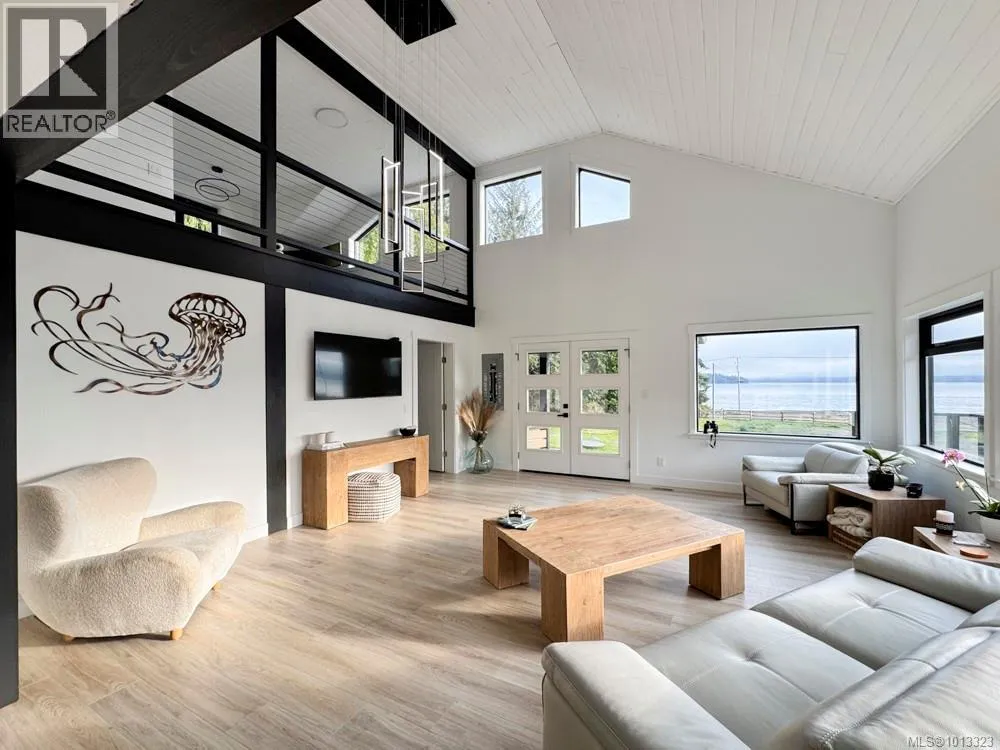 Motivated seller! Experience coastal living at its finest with this stunningly renovated home, perfectly situated on this 4.9 acres of esplanade waterfront property. Every detail has been thoughtfully designed, blending timeless elegance with modern luxury. From the moment you step inside, expansive windows with great natural light, some vaulted ceilings and refined finishes create a sense of sophistication and warmth. The gourmet kitchen showcases premium appliances, large granite island, a butler's pantry and lots of cabinetry. A great space of daily living as well as entertaining. The primary bedroom is on the main floor, with a spa like ensuite and walk-in closet. Main floor also includes the laundry room. The open stair case leads up to 2 more bedrooms, a bonus room (could be used for a small gym) another spa like bathroom and a great loft area - for an office or hobbies. Exceptional ocean and mountain views from the loft. A must see property now, with everything in âas newâ condition. Aside from the exceptional interior design, many exterior renovations include a new roof, new gutters, new heat pump and much more. 2 outbuildings with potential. (id:27476)