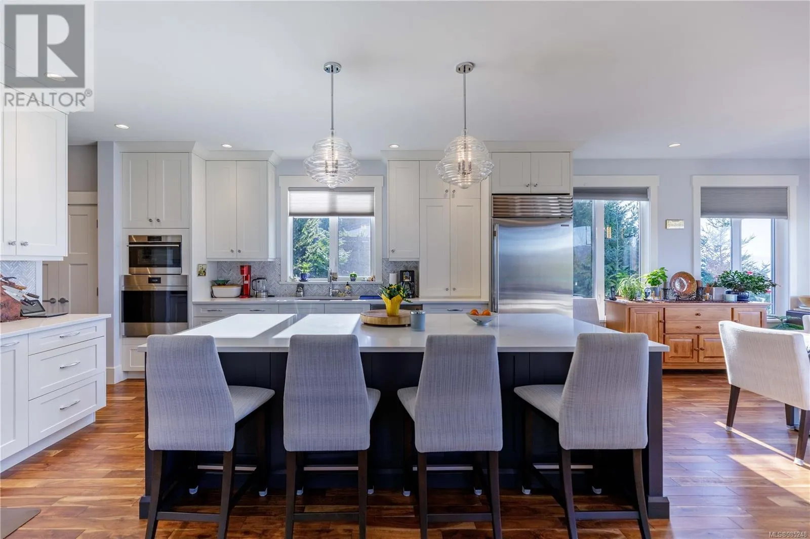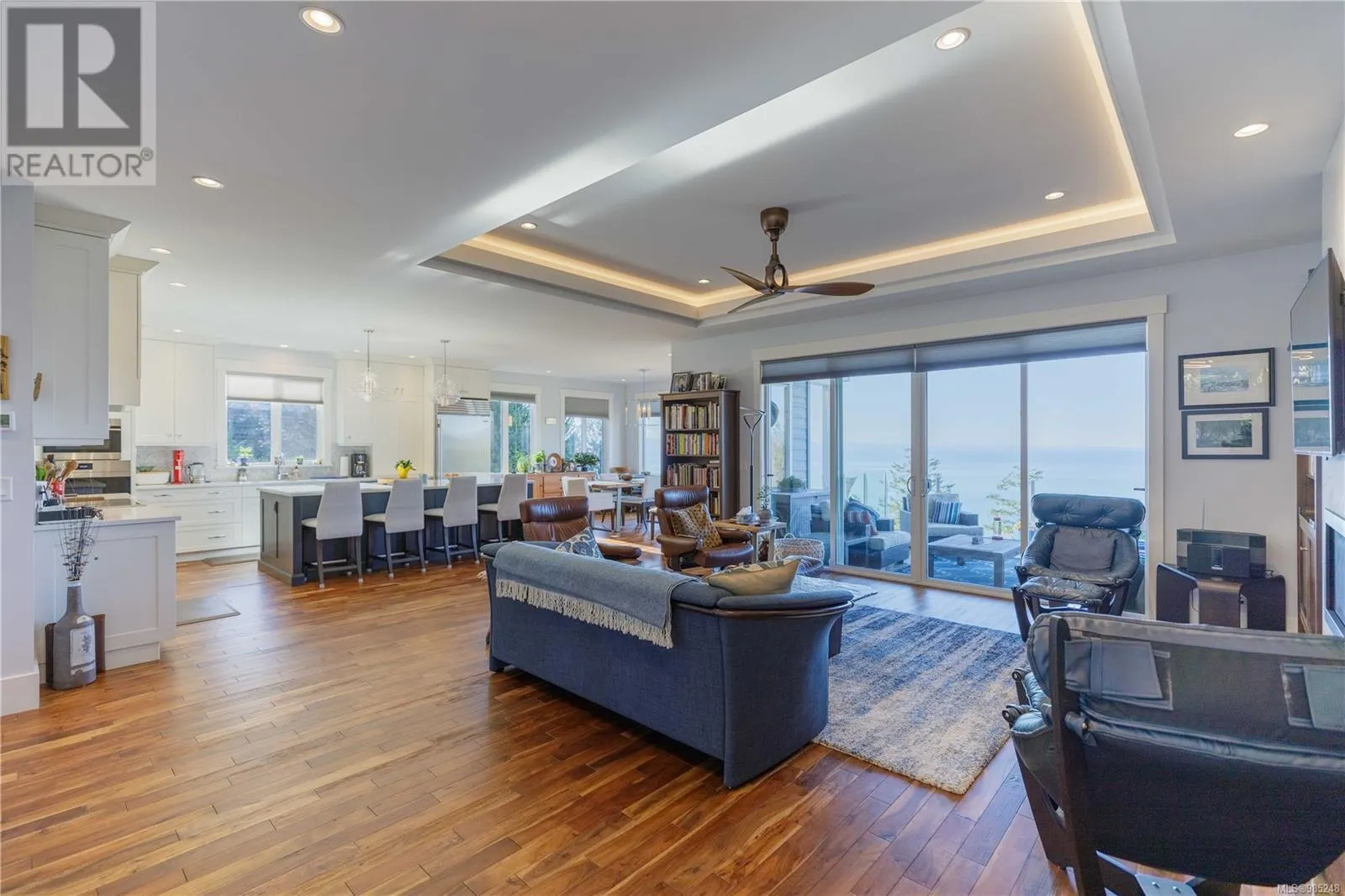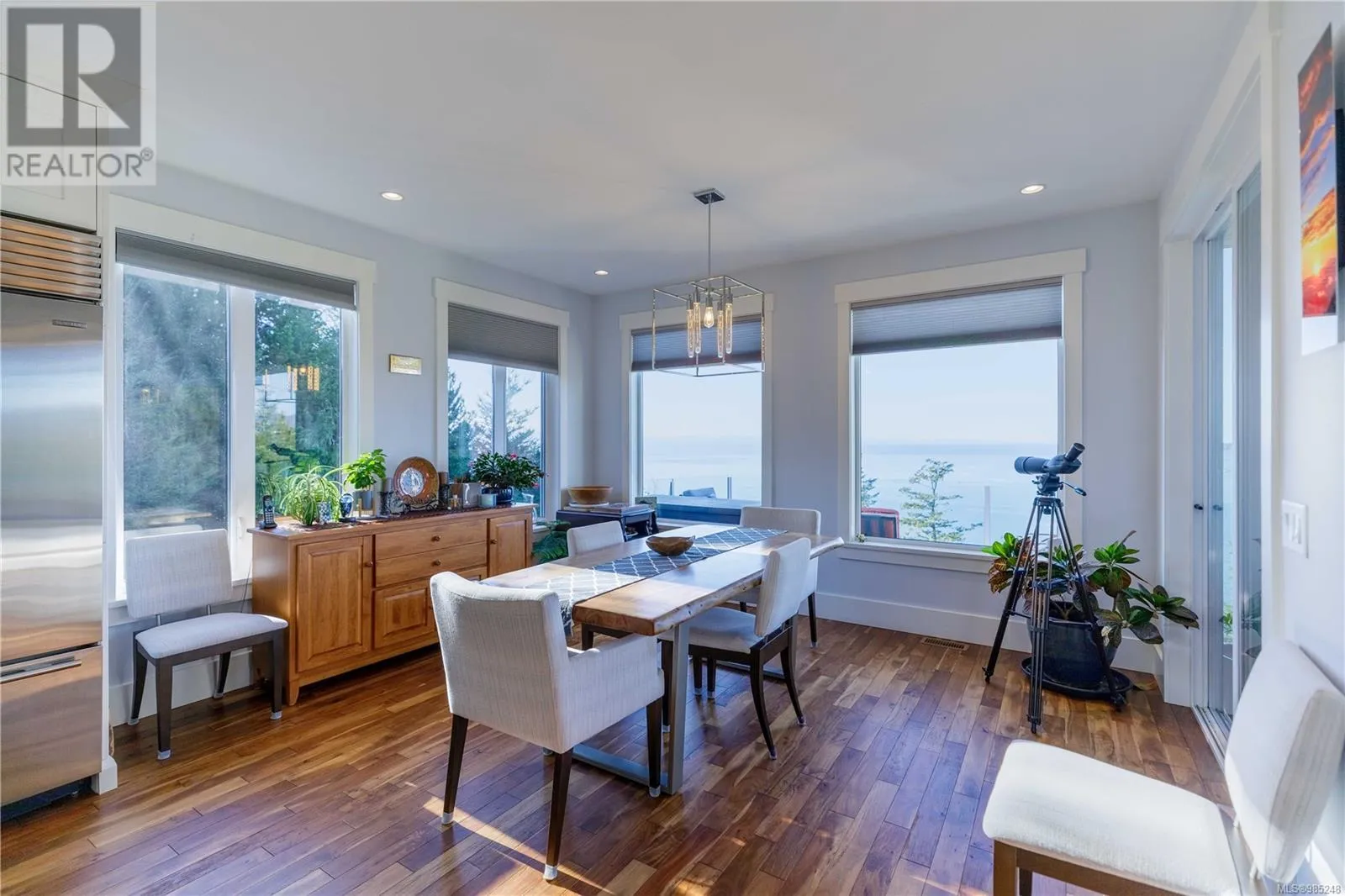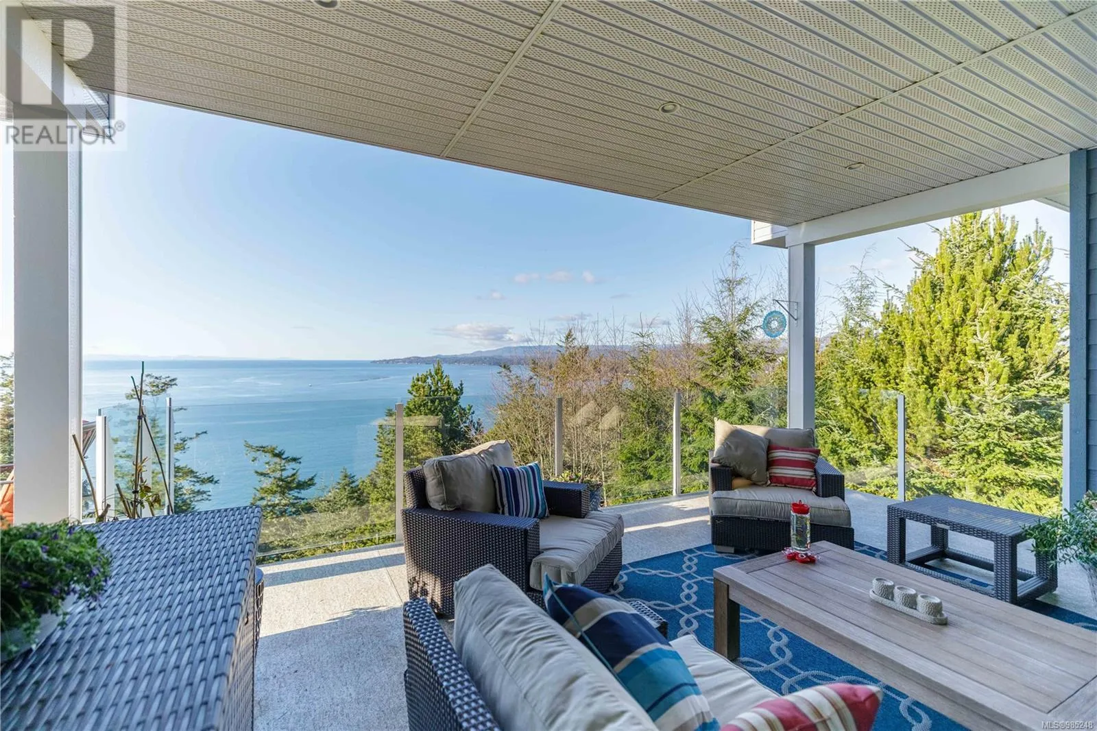 Embrace the coast at this stunning five-bed, three-bath home in scenic Sooke. Built in 2018, this west-facing residence showcases breathtaking ocean views, sunsets, and frequent visits from local wildlife from most rooms, as well as multiple balconies and patios. Inside, the open-concept layout features sleek finishes, large windows that flood the home with natural light, and a kitchen equipped with stainless steel appliances and ample cabinet and pantry storage. The primary bedroom offers a private retreat with ocean views, an ensuite bathroom, and walk-in closet. Four additional bedrooms, all located below along with an expansive covered walkout patio, provide comfort and flexibility for family or guests. Outside, protected by privacy fencing and mature growth, a stone path meanders from the double-attached garage and kitchen-side BBQ enclave, past the picturesque fenced garden, to the spectacular ocean-view hot tub. Contact us today to book your private viewing. (id:27476)
