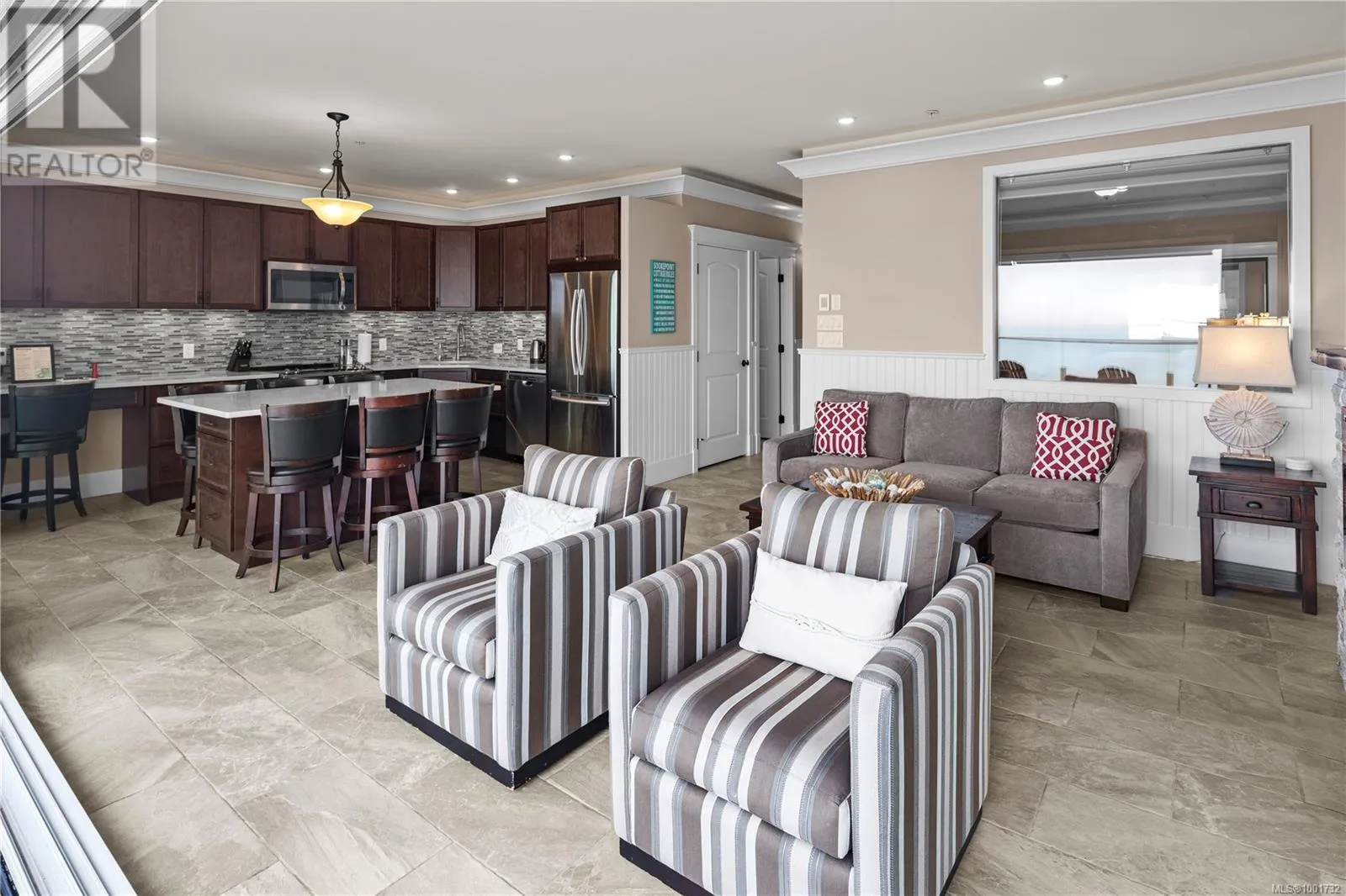 Discover a rare opportunity to own a fully furnished, oceanfront home with exceptional short-term rental income potential. Located in the sought-after Sookepoint development on Vancouver Island, this two-bedroom, two-bath residence offers refined coastal living with panoramic views across the Salish Sea to the Olympic Mountains. Ideal as a vacation rental or a full-time home, the open-concept layout features floor-to-ceiling glass doors opening to a signature prow-shaped deckâperfect for enjoying the ocean air. The kitchen is beautifully appointed with granite countertops, stainless steel appliances, and custom cabinetry. A luxurious primary suite boasts a spa-like ensuite with heated floors, a soaker tub, and walk-in shower. The second bedroom and bath provide comfort and flexibility for guests. Enjoy lock-and-leave convenience, professional strata management, and strong revenue potential from short-term rentals in a world-class oceanfront setting. A turn-key investment in lifestyle and value. (id:27476)
