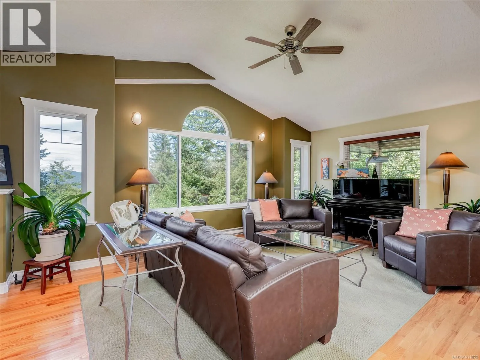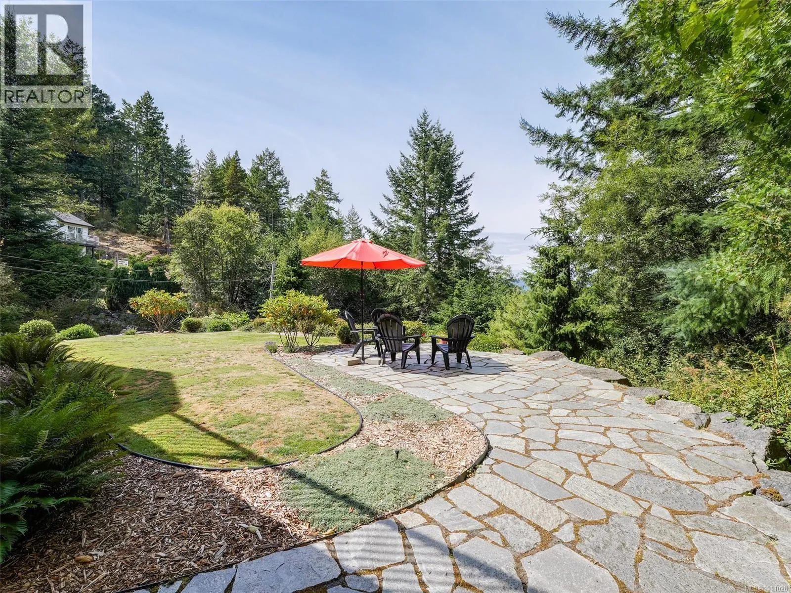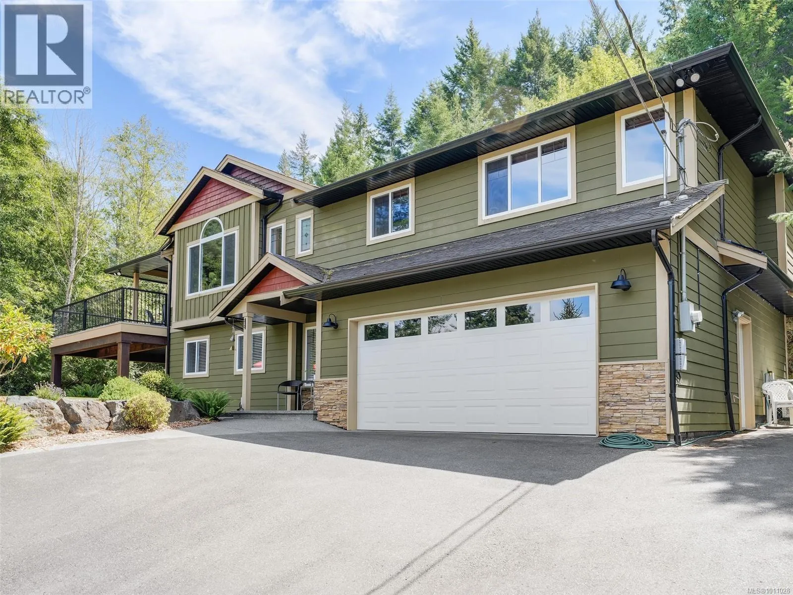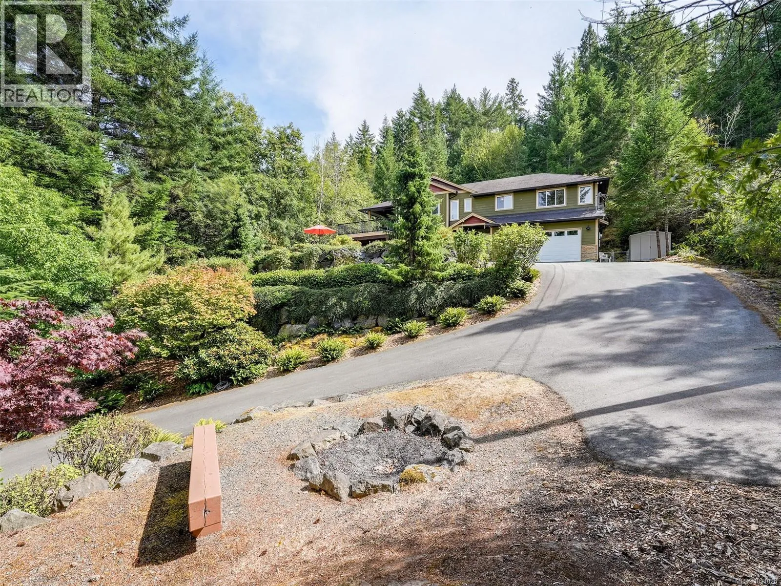 Elegant Executive Home. Tucked up a winding, landscaped drive & perched among the treetops, this fabulous 2005 built 1-owner home offers a rare blend of meticulous design & serene, natural surroundings. Engineered terraced gardens feature private nooks throughout, creating a zen retreat. Open-concept layout provides generous space while maintaining privacy, perfect for large/extended families, or easily suited for income potential. Main level showcases rich wood floors, vaulted ceiling in living, & gas FP in formal dining. Shaker-style kitchen includes an island & SS appliances. Entertainment-sized deck, partially covered for year-round enjoyment. Primary suite boasts WIC & spa-like ensuite w/soaker tub. Downstairs offers flexible living w/a massive rec.room, family room & easy suite potential! Spotless dbl garage provides ample parking & storage. Extra perks include heat pump, new HWT & wired generator. Incredible location near parks, hiking, kayaking, & biking with no Sooke Traffic! (id:27476)