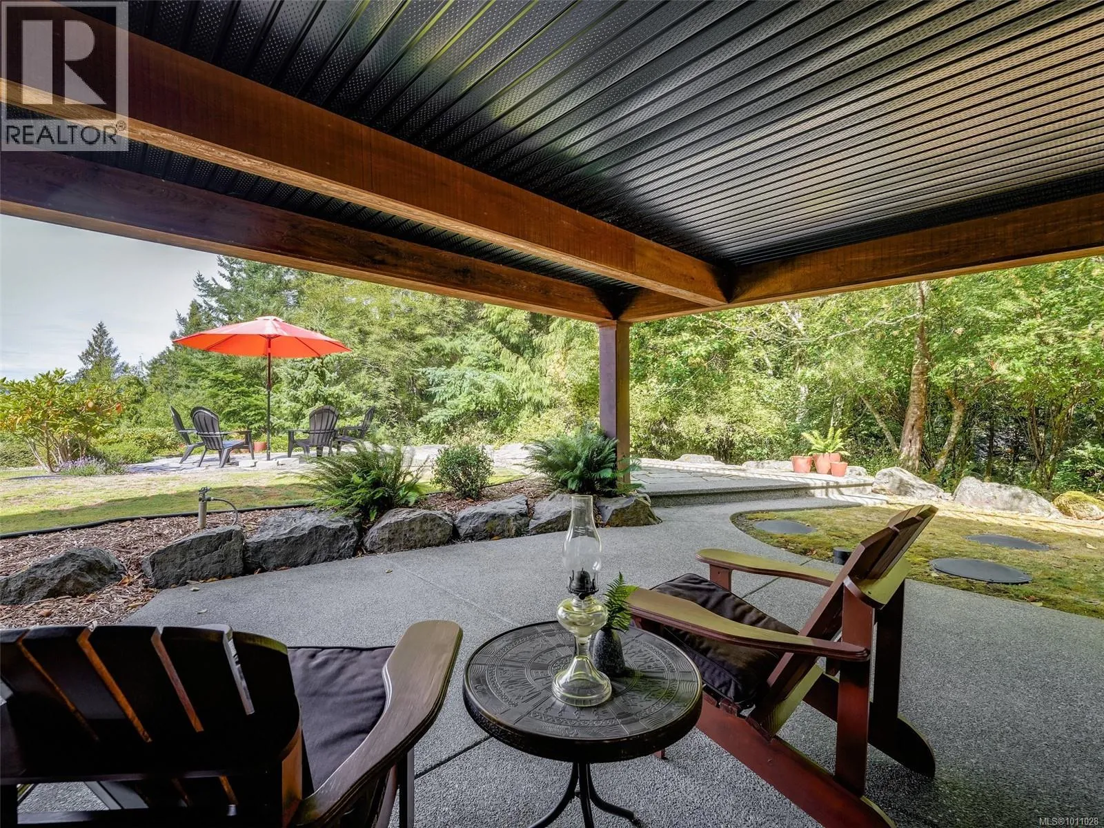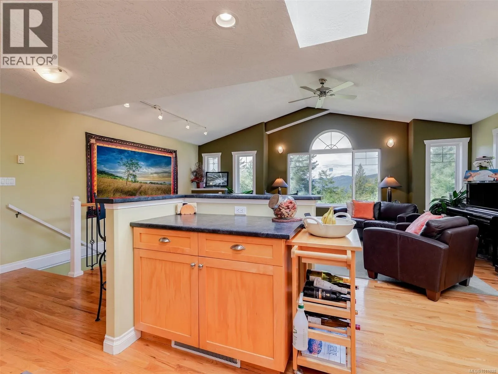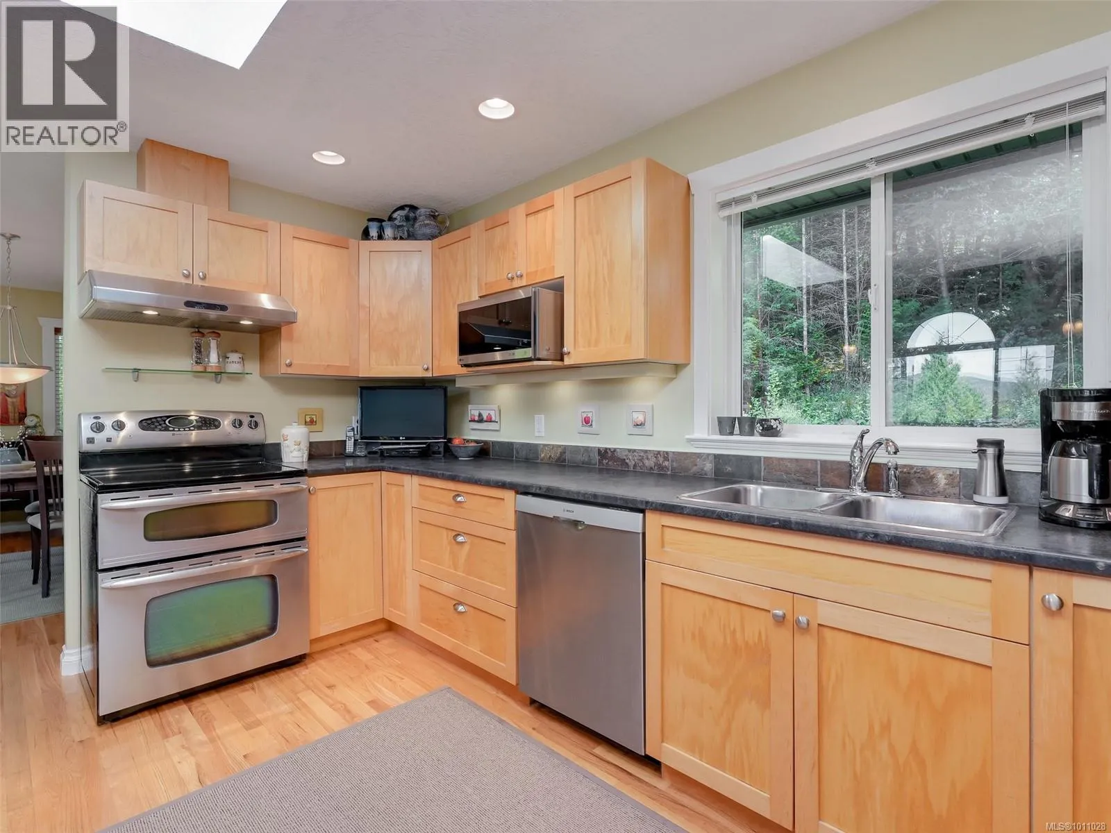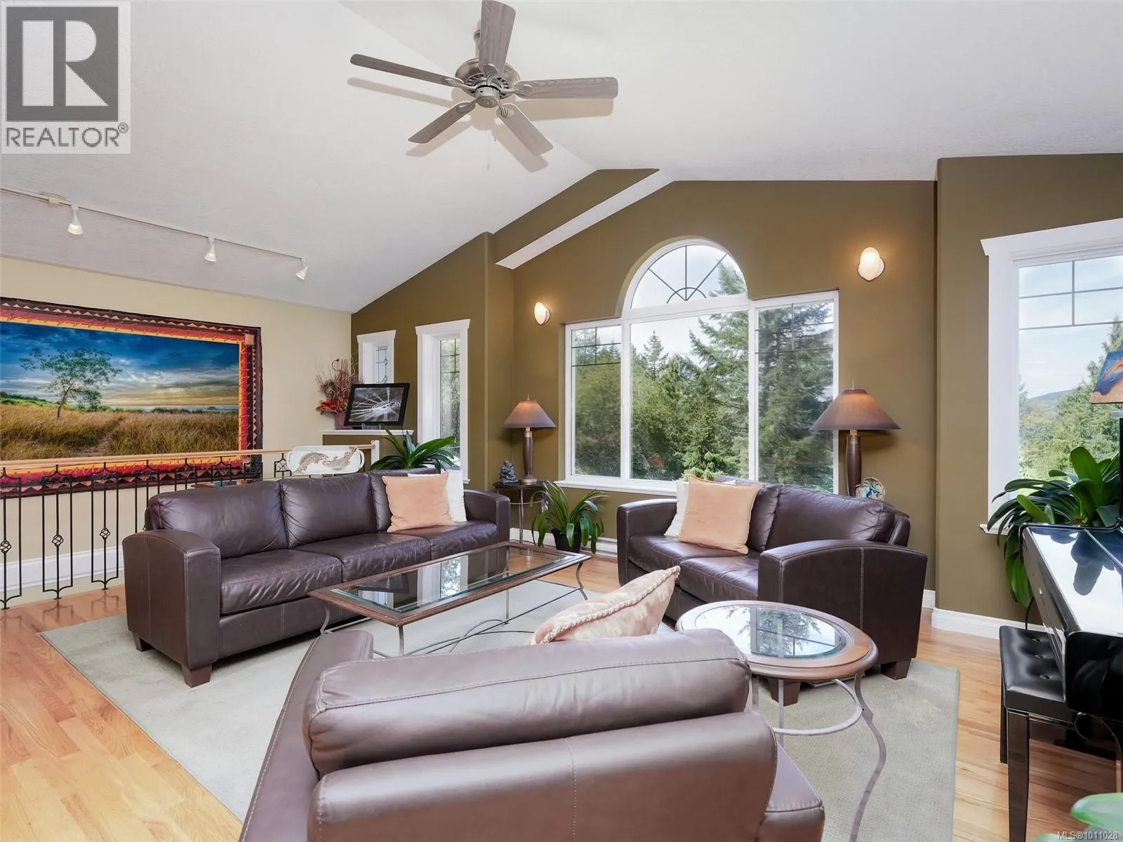 Elegant Executive Home. Tucked up a winding, landscaped drive & perched among the treetops, this fabulous 2005 built 1-owner home offers a rare blend of meticulous design & serene, natural surroundings. Engineered terraced gardens feature private nooks throughout, creating a zen retreat. Open-concept layout provides generous space while maintaining privacy, perfect for large/extended families, or easily suited for income potential. Main level showcases rich wood floors, vaulted ceiling in living, & gas FP in formal dining. Shaker-style kitchen includes an island & SS appliances. Entertainment-sized deck, partially covered for year-round enjoyment. Primary suite boasts WIC & spa-like ensuite w/soaker tub. Downstairs offers flexible living w/a massive rec.room, family room & easy suite potential! Spotless dbl garage provides ample parking & storage. Extra perks include heat pump, new HWT & wired generator. Incredible location near parks, hiking, kayaking, & biking with no Sooke Traffic! (id:27476)