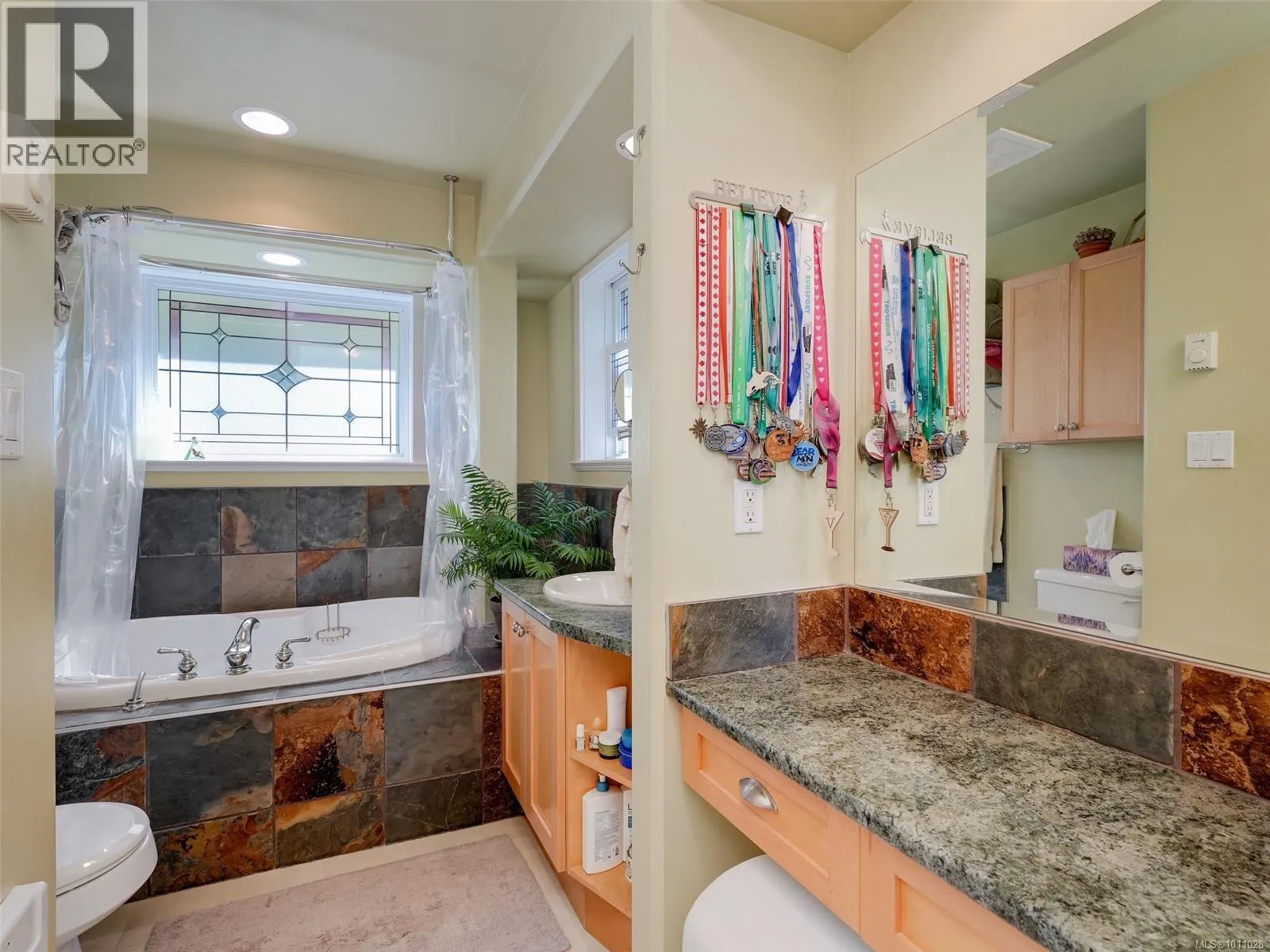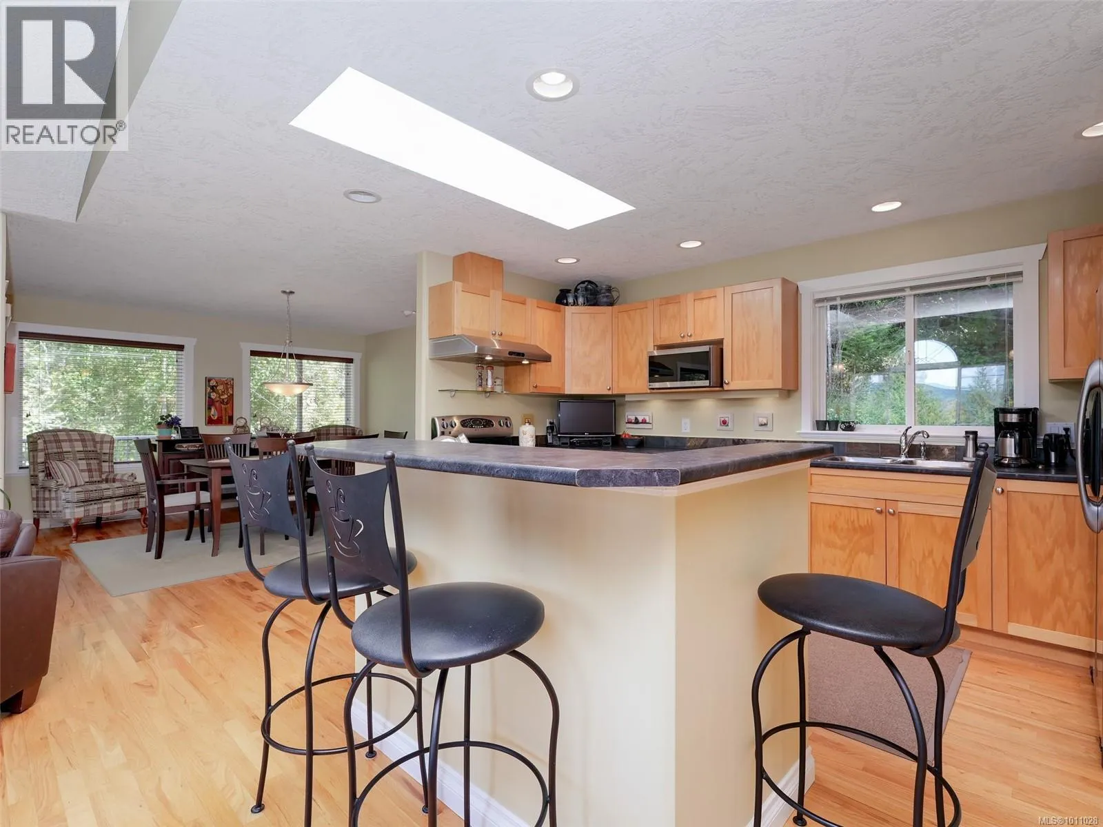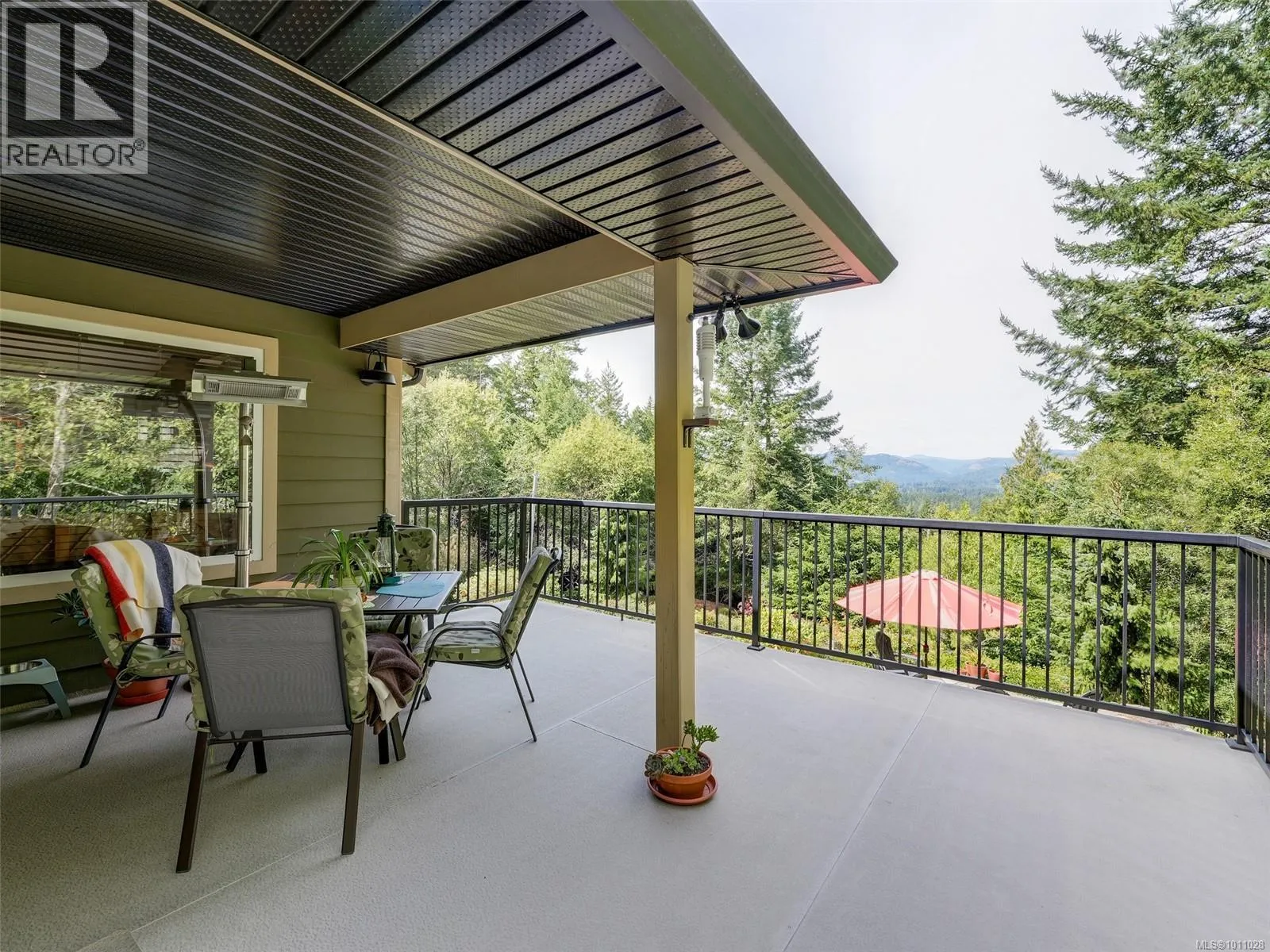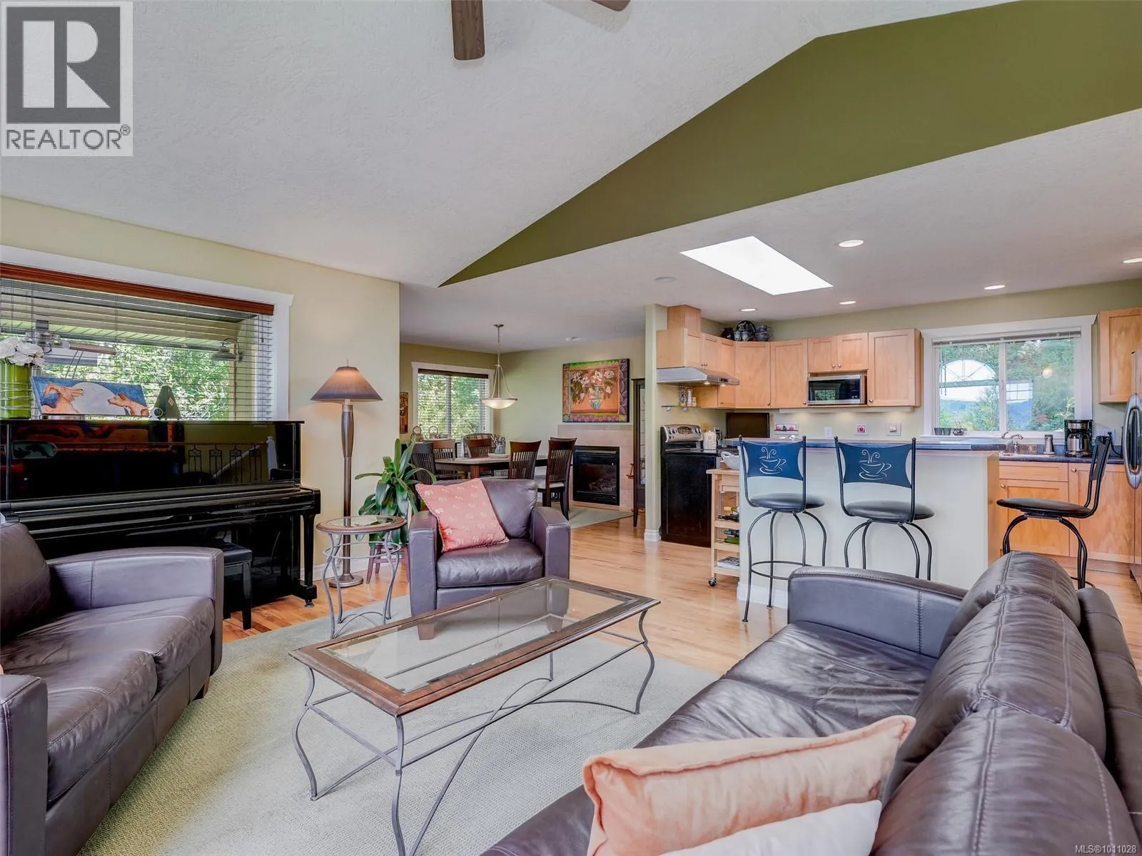 Elegant Executive Home. Tucked up a winding, landscaped drive & perched among the treetops, this fabulous 2005 built 1-owner home offers a rare blend of meticulous design & serene, natural surroundings. Engineered terraced gardens feature private nooks throughout, creating a zen retreat. Open-concept layout provides generous space while maintaining privacy, perfect for large/extended families, or easily suited for income potential. Main level showcases rich wood floors, vaulted ceiling in living, & gas FP in formal dining. Shaker-style kitchen includes an island & SS appliances. Entertainment-sized deck, partially covered for year-round enjoyment. Primary suite boasts WIC & spa-like ensuite w/soaker tub. Downstairs offers flexible living w/a massive rec.room, family room & easy suite potential! Spotless dbl garage provides ample parking & storage. Extra perks include heat pump, new HWT & wired generator. Incredible location near parks, hiking, kayaking, & biking with no Sooke Traffic! (id:27476)