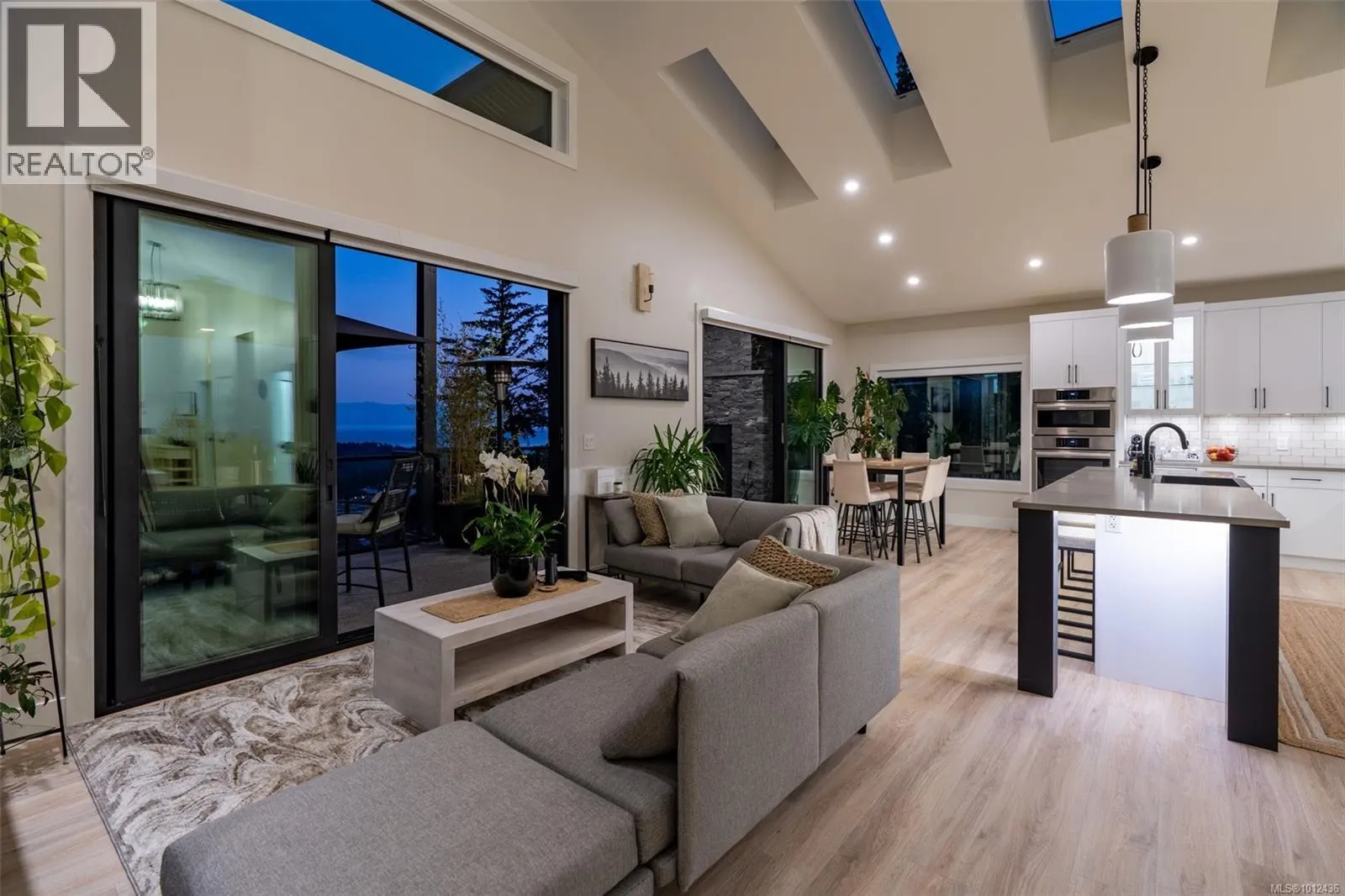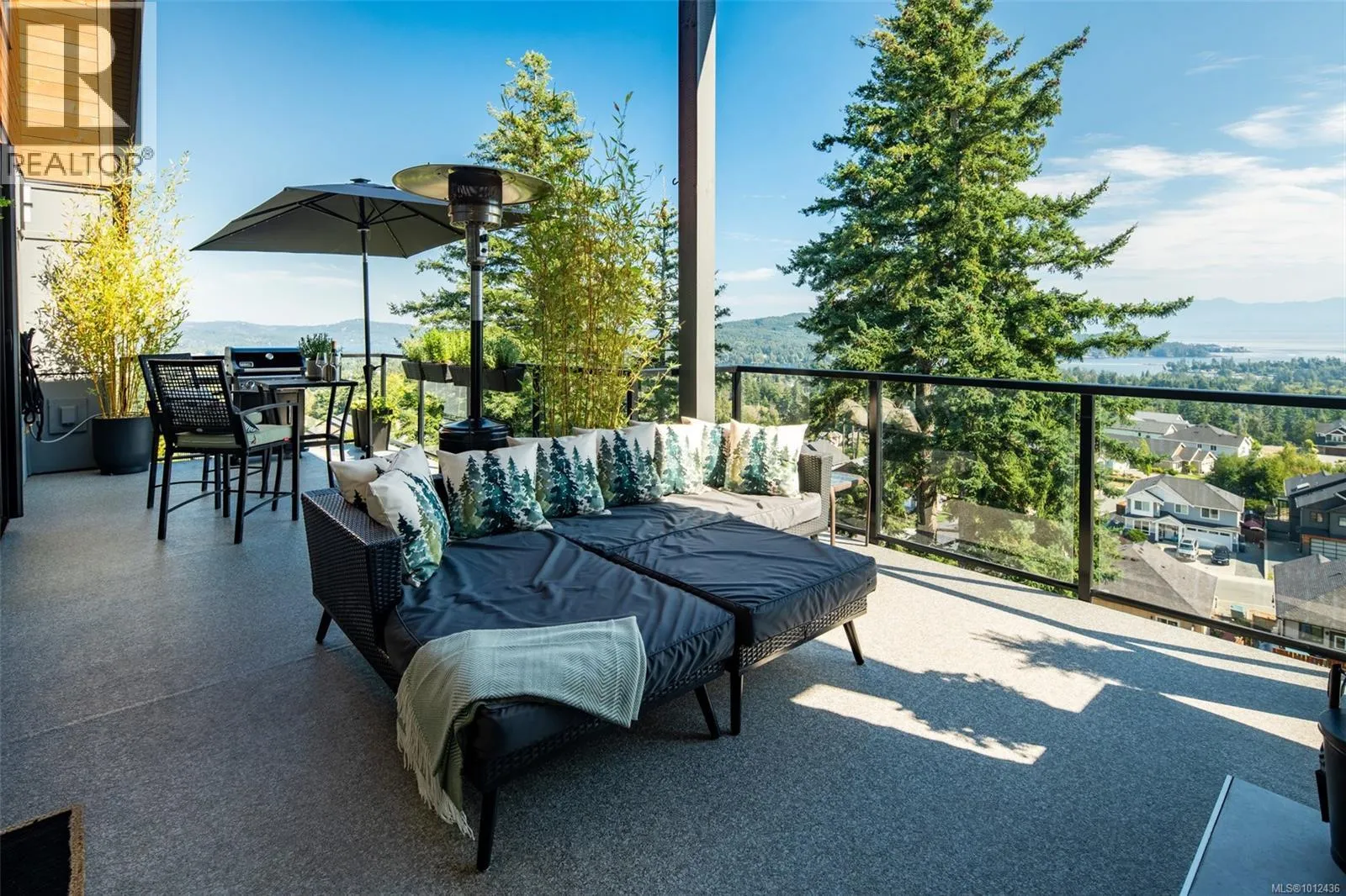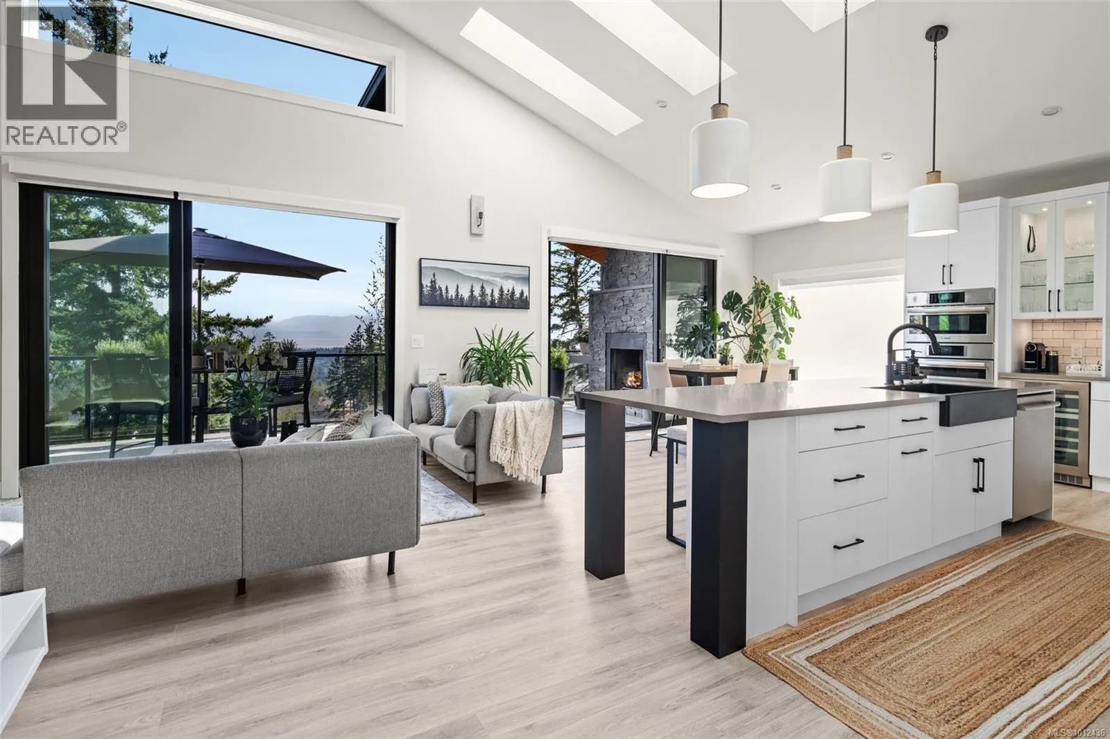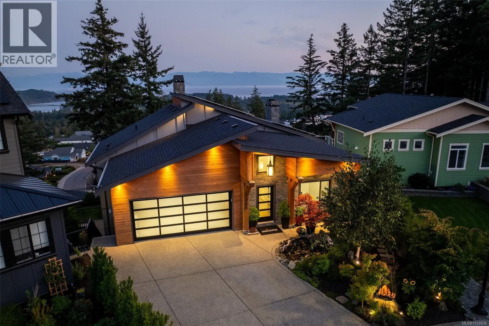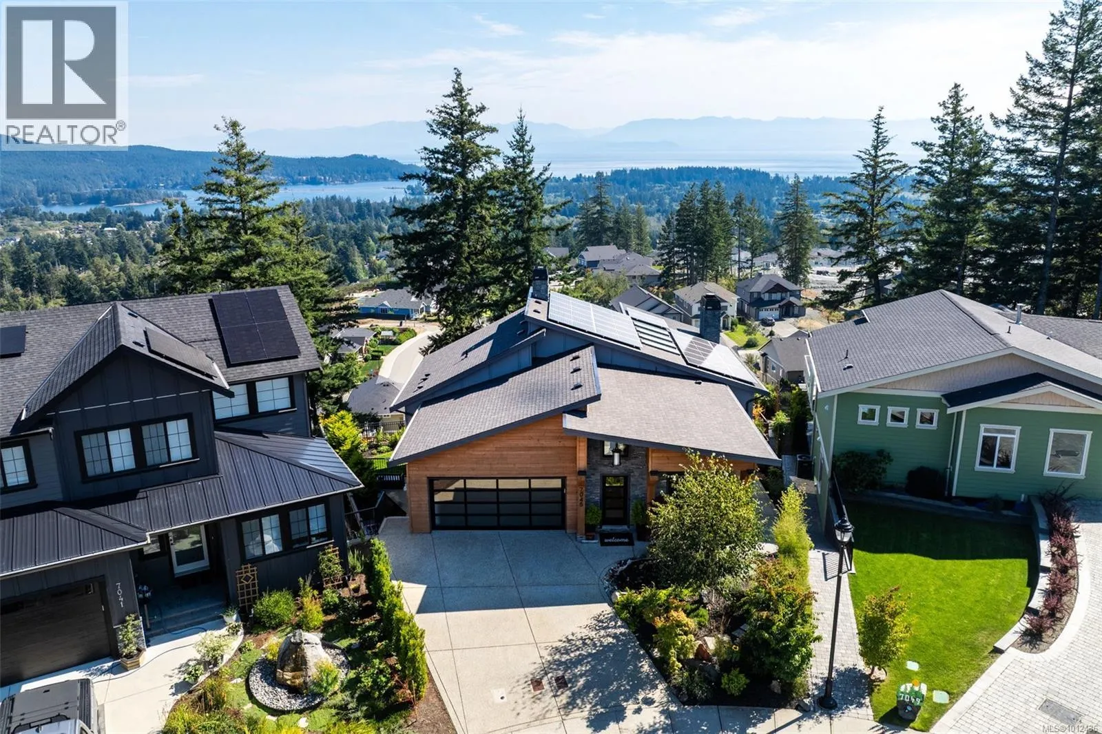 Welcome to this modern, light-filled executive residence w/ over 3,000 sq ft of thoughtfully designed living space. Perched to capture panoramic views of the Olympic Mountains & the Strait of Juan de Fuca, this custom home seamlessly blends timeless design w/ contemporary luxury. Featuring 5 bedrooms, 4 bathrooms including a self-contained 1-bedroom, ocean view suite. Step inside to an abundance of natural light pouring through 3 oversized skylights & two expansive 3-panel multi-slide glass doors. These frame breathtaking vistas & provide effortless indoor-outdoor flow, perfect for entertaining or peaceful relaxation. The open-concept main living space incl. a gourmet kitchen w/an oversized granite island that seats 6, high-end appliances incl. wine fridge & seamless connection to the living & dining areas. Step out onto the spacious deck complete w/ a stunning custom wood-burning fireplaceâan ideal setting for West Coast evenings. The fully self-contained 1-bedroom suite w/ its own private entrance & ocean views, is ideal for guests, extended family, or rental income. Superior soundproofing ensures privacy between the suite & main home. Environmentally conscious features include 23 solar panels, wiring for two EV chargers & a ductless heat pump systemâall centered around energy efficiency & sustainable living. Beautifully landscaped w/water feature, raised gardens & privacy hedge. Backing onto serene green space, this home offers privacy, tranquility, & a strong connection to natureâwithout sacrificing proximity to urban amenities. (id:27476)