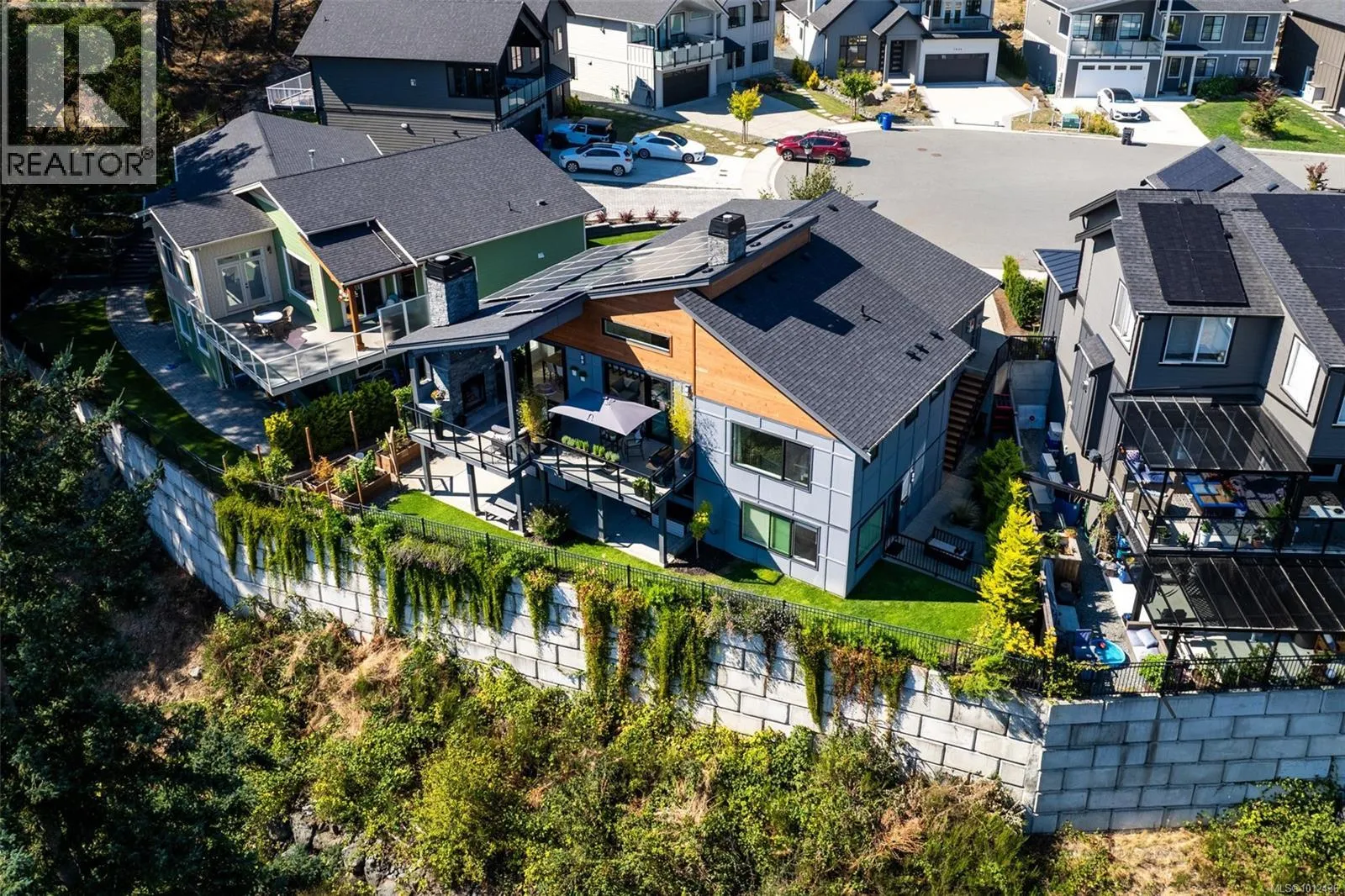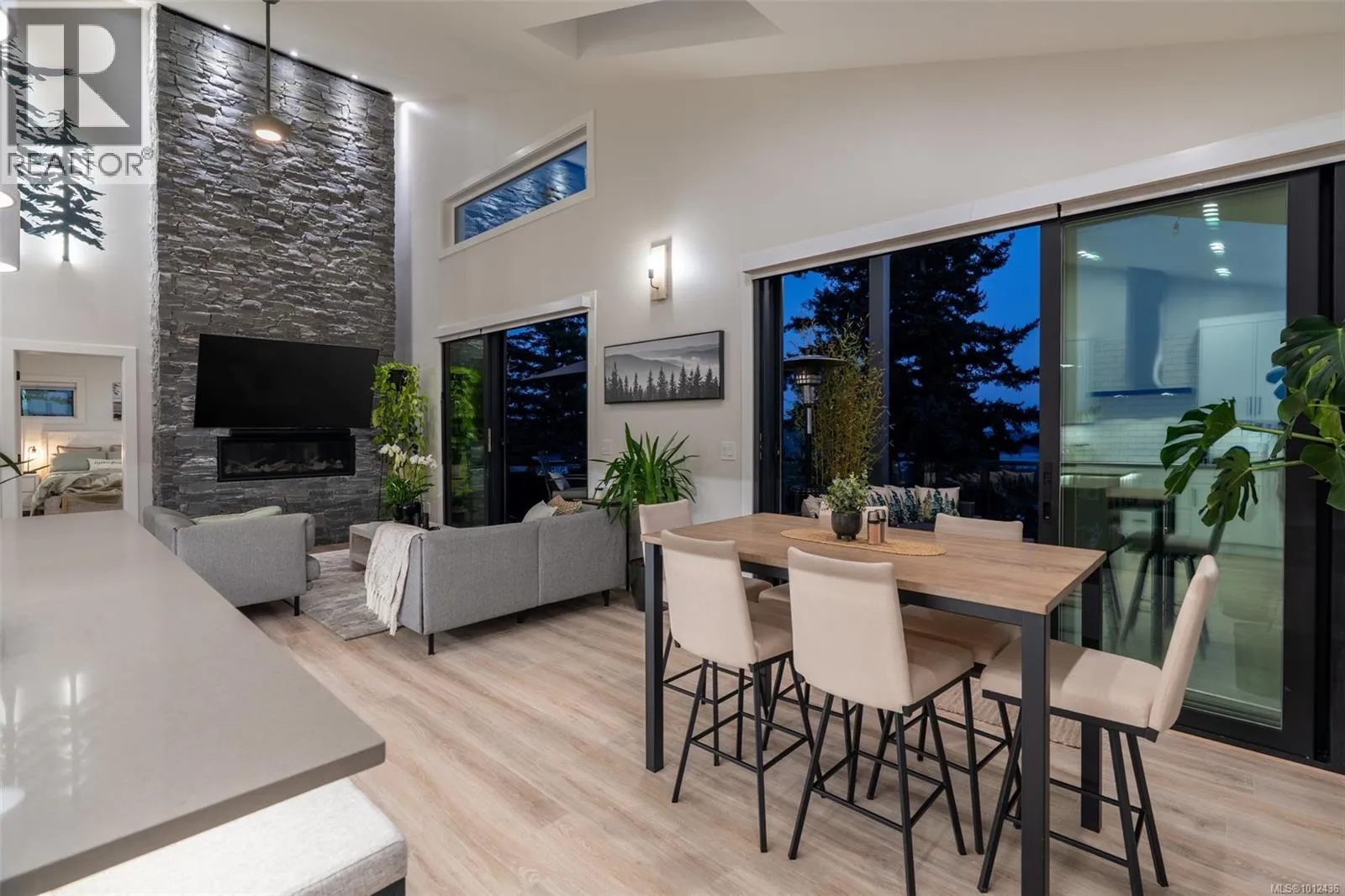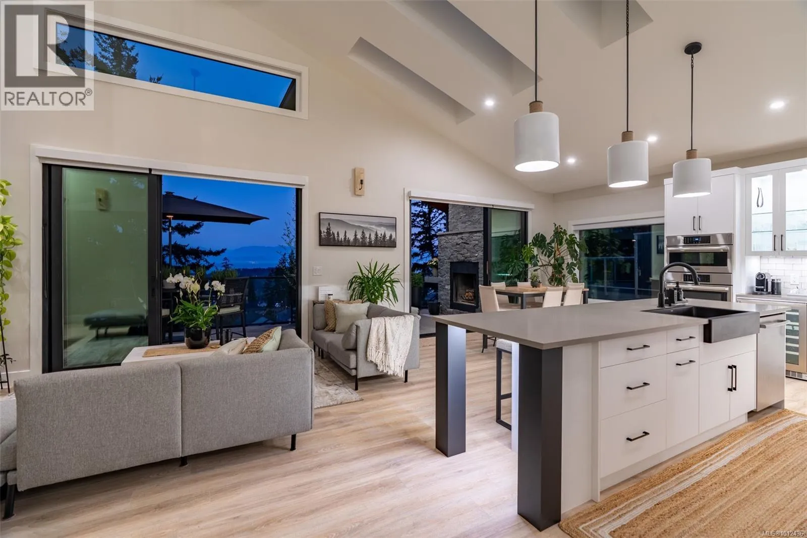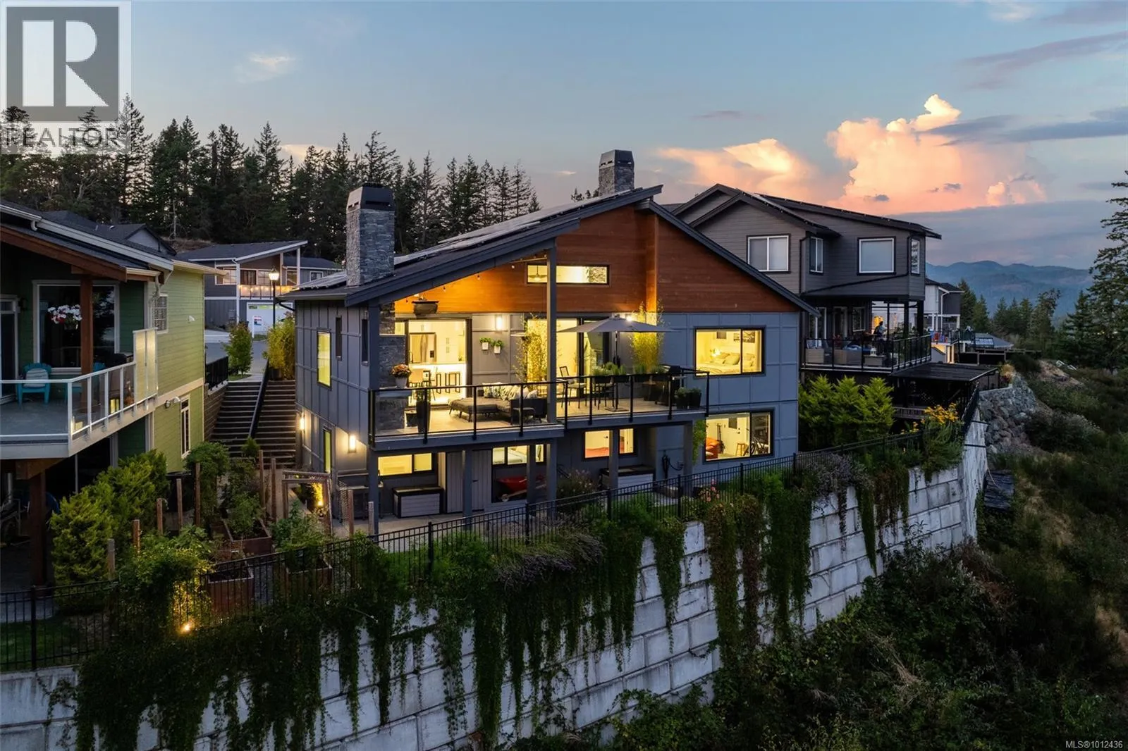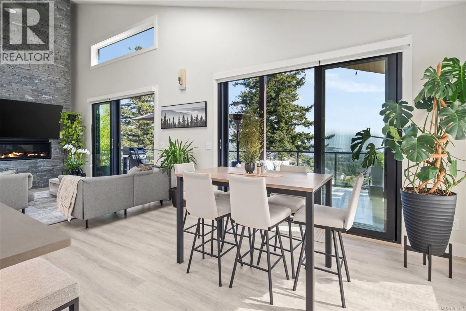 Welcome to this modern, light-filled executive residence w/ over 3,000 sq ft of thoughtfully designed living space. Perched to capture panoramic views of the Olympic Mountains & the Strait of Juan de Fuca, this custom home seamlessly blends timeless design w/ contemporary luxury. Featuring 5 bedrooms, 4 bathrooms including a self-contained 1-bedroom, ocean view suite. Step inside to an abundance of natural light pouring through 3 oversized skylights & two expansive 3-panel multi-slide glass doors. These frame breathtaking vistas & provide effortless indoor-outdoor flow, perfect for entertaining or peaceful relaxation. The open-concept main living space incl. a gourmet kitchen w/an oversized granite island that seats 6, high-end appliances incl. wine fridge & seamless connection to the living & dining areas. Step out onto the spacious deck complete w/ a stunning custom wood-burning fireplaceâan ideal setting for West Coast evenings. The fully self-contained 1-bedroom suite w/ its own private entrance & ocean views, is ideal for guests, extended family, or rental income. Superior soundproofing ensures privacy between the suite & main home. Environmentally conscious features include 23 solar panels, wiring for two EV chargers & a ductless heat pump systemâall centered around energy efficiency & sustainable living. Beautifully landscaped w/water feature, raised gardens & privacy hedge. Backing onto serene green space, this home offers privacy, tranquility, & a strong connection to natureâwithout sacrificing proximity to urban amenities. (id:27476)