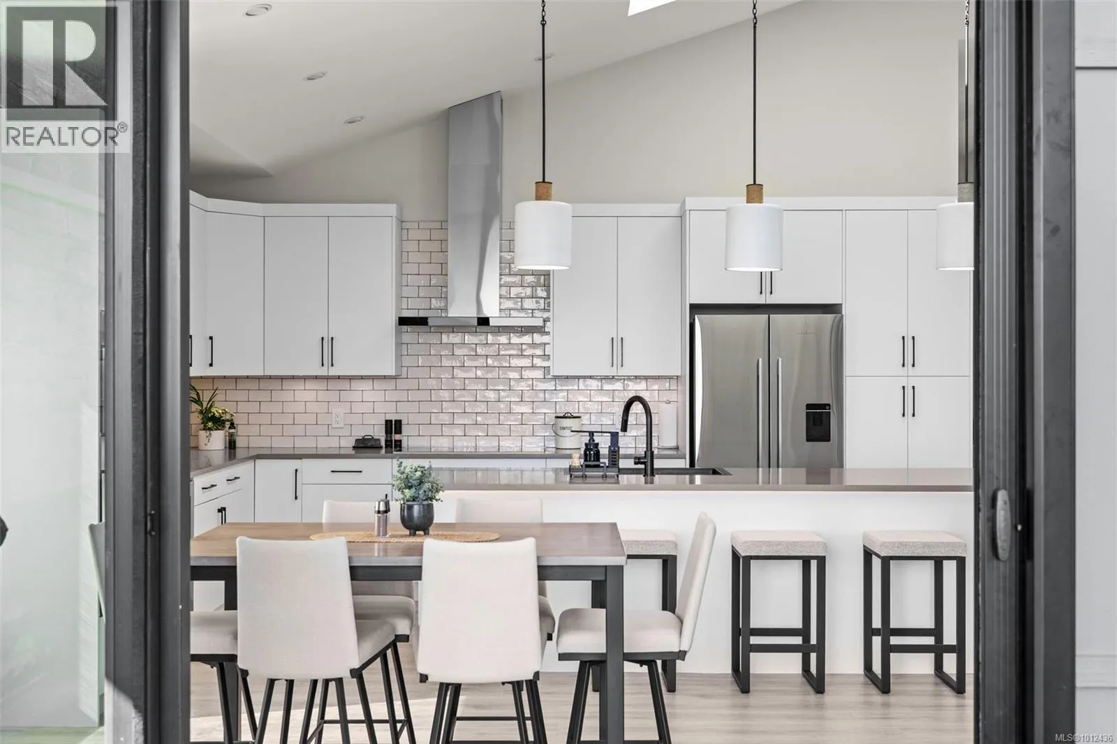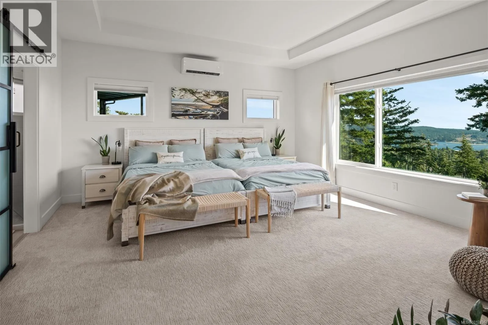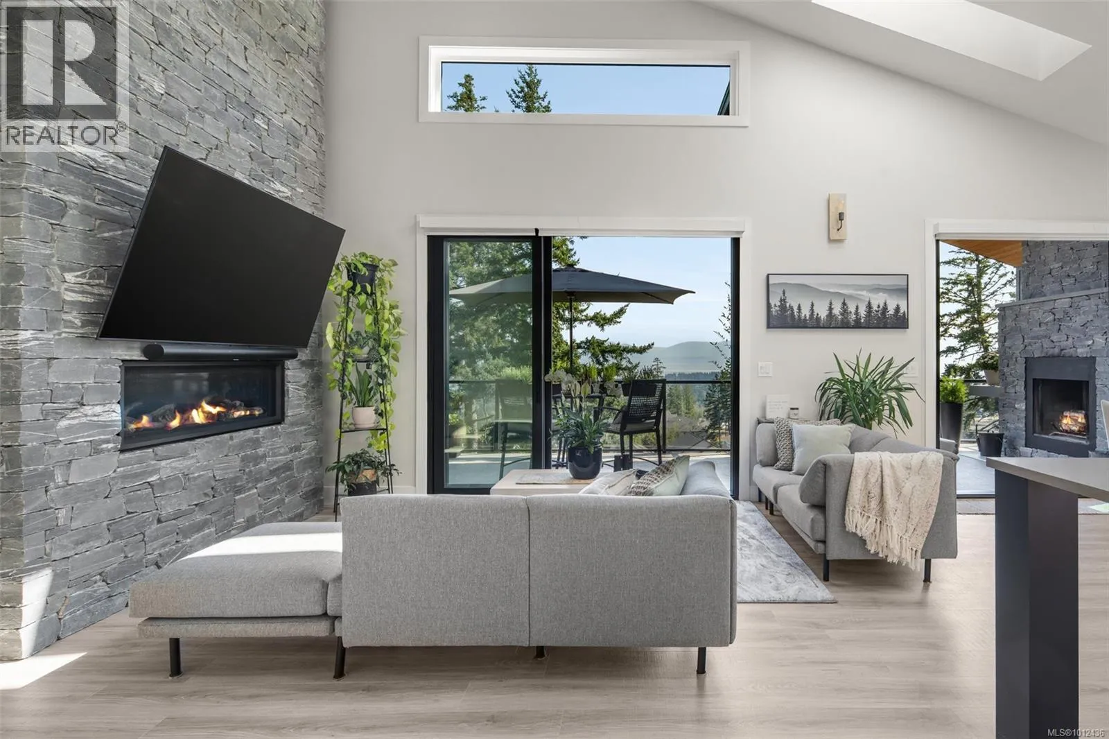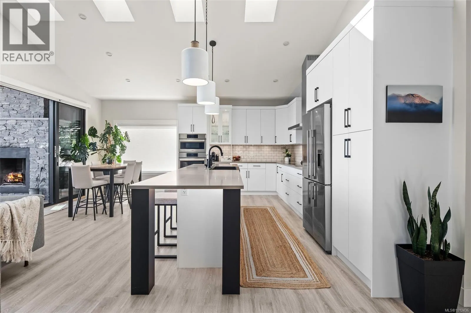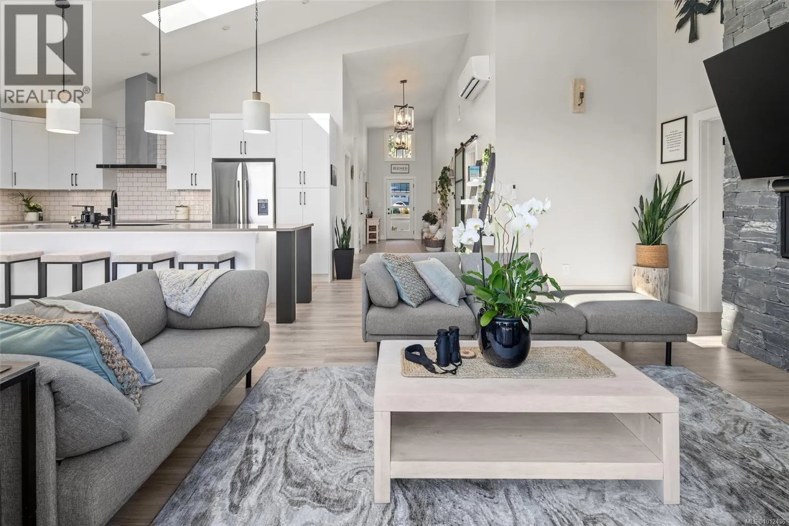 Welcome to this modern, light-filled executive residence w/ over 3,000 sq ft of thoughtfully designed living space. Perched to capture panoramic views of the Olympic Mountains & the Strait of Juan de Fuca, this custom home seamlessly blends timeless design w/ contemporary luxury. Featuring 5 bedrooms, 4 bathrooms including a self-contained 1-bedroom, ocean view suite. Step inside to an abundance of natural light pouring through 3 oversized skylights & two expansive 3-panel multi-slide glass doors. These frame breathtaking vistas & provide effortless indoor-outdoor flow, perfect for entertaining or peaceful relaxation. The open-concept main living space incl. a gourmet kitchen w/an oversized granite island that seats 6, high-end appliances incl. wine fridge & seamless connection to the living & dining areas. Step out onto the spacious deck complete w/ a stunning custom wood-burning fireplaceâan ideal setting for West Coast evenings. The fully self-contained 1-bedroom suite w/ its own private entrance & ocean views, is ideal for guests, extended family, or rental income. Superior soundproofing ensures privacy between the suite & main home. Environmentally conscious features include 23 solar panels, wiring for two EV chargers & a ductless heat pump systemâall centered around energy efficiency & sustainable living. Beautifully landscaped w/water feature, raised gardens & privacy hedge. Backing onto serene green space, this home offers privacy, tranquility, & a strong connection to natureâwithout sacrificing proximity to urban amenities. (id:27476)