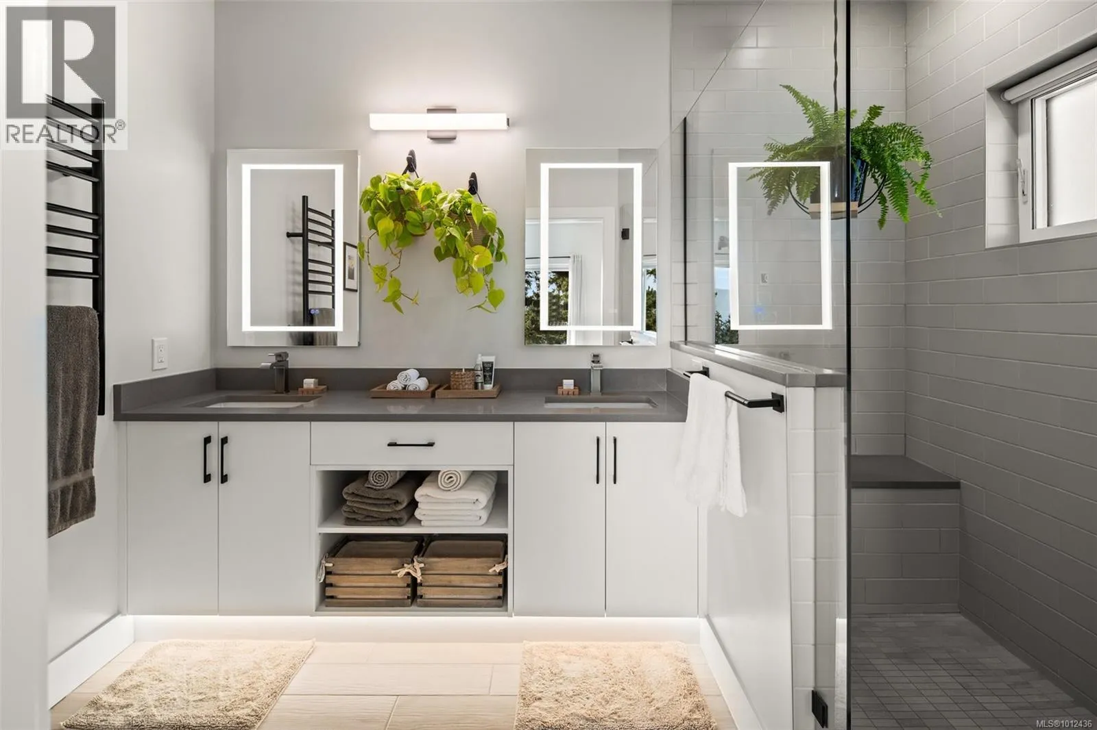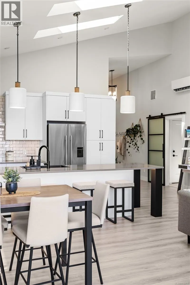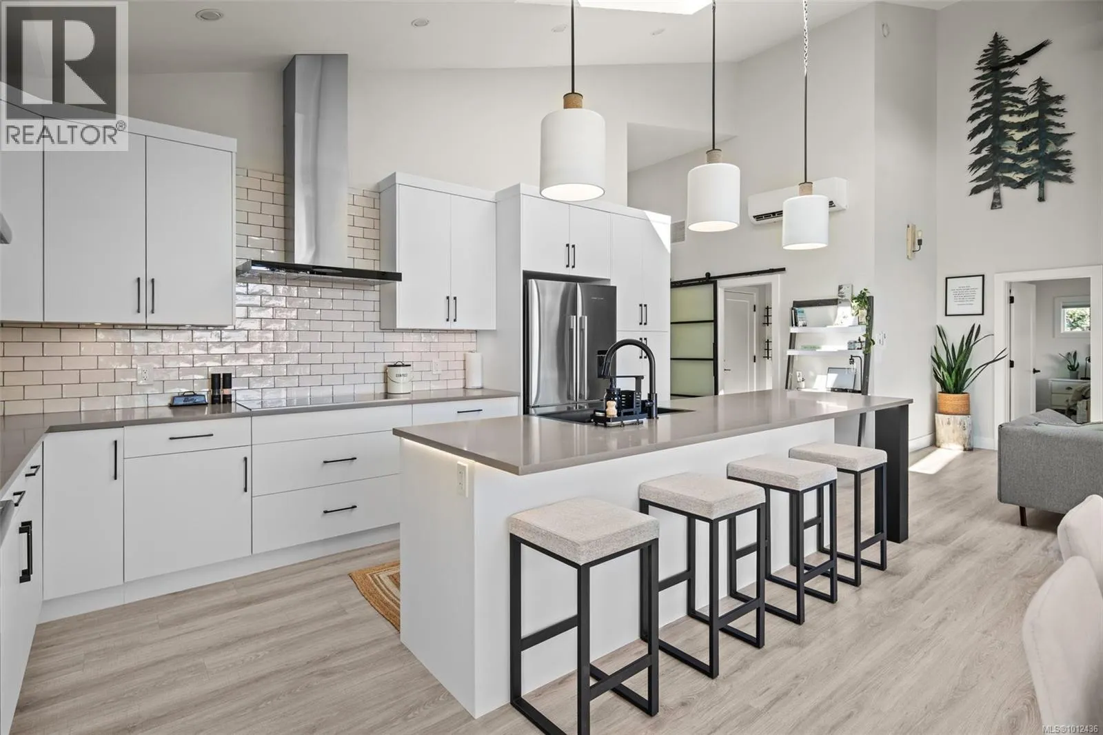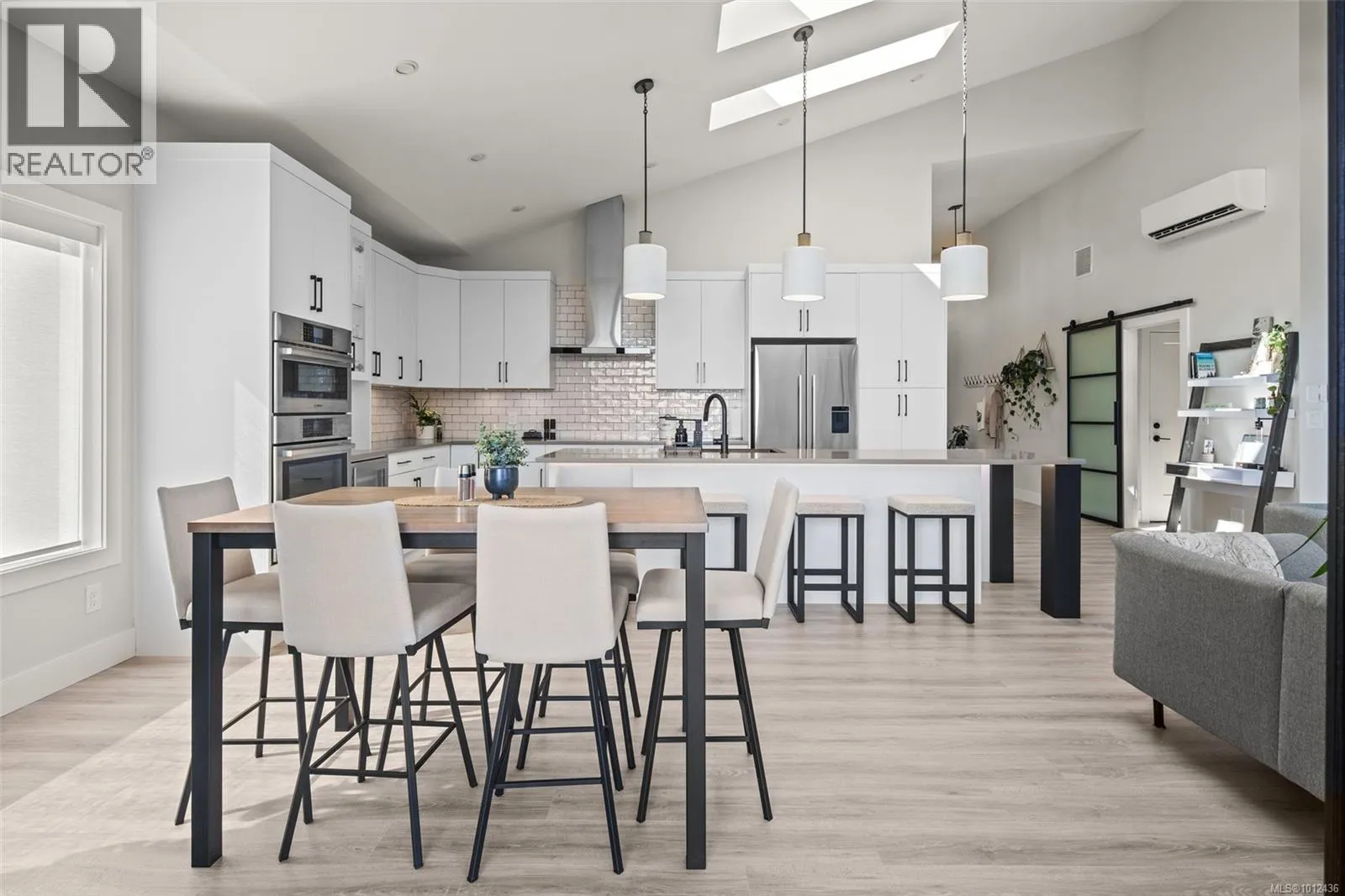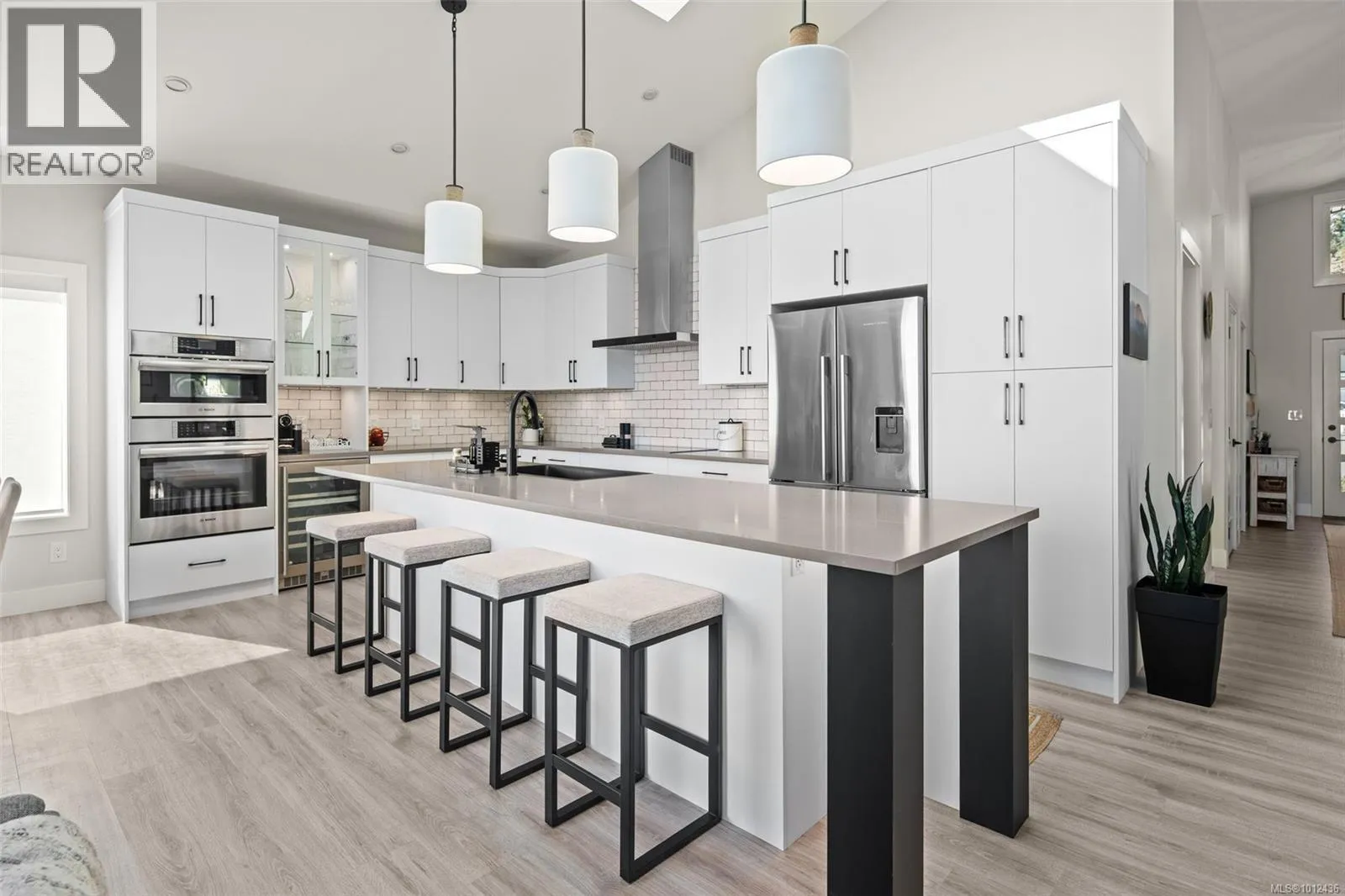 Welcome to this modern, light-filled executive residence w/ over 3,000 sq ft of thoughtfully designed living space. Perched to capture panoramic views of the Olympic Mountains & the Strait of Juan de Fuca, this custom home seamlessly blends timeless design w/ contemporary luxury. Featuring 5 bedrooms, 4 bathrooms including a self-contained 1-bedroom, ocean view suite. Step inside to an abundance of natural light pouring through 3 oversized skylights & two expansive 3-panel multi-slide glass doors. These frame breathtaking vistas & provide effortless indoor-outdoor flow, perfect for entertaining or peaceful relaxation. The open-concept main living space incl. a gourmet kitchen w/an oversized granite island that seats 6, high-end appliances incl. wine fridge & seamless connection to the living & dining areas. Step out onto the spacious deck complete w/ a stunning custom wood-burning fireplaceâan ideal setting for West Coast evenings. The fully self-contained 1-bedroom suite w/ its own private entrance & ocean views, is ideal for guests, extended family, or rental income. Superior soundproofing ensures privacy between the suite & main home. Environmentally conscious features include 23 solar panels, wiring for two EV chargers & a ductless heat pump systemâall centered around energy efficiency & sustainable living. Beautifully landscaped w/water feature, raised gardens & privacy hedge. Backing onto serene green space, this home offers privacy, tranquility, & a strong connection to natureâwithout sacrificing proximity to urban amenities. (id:27476)