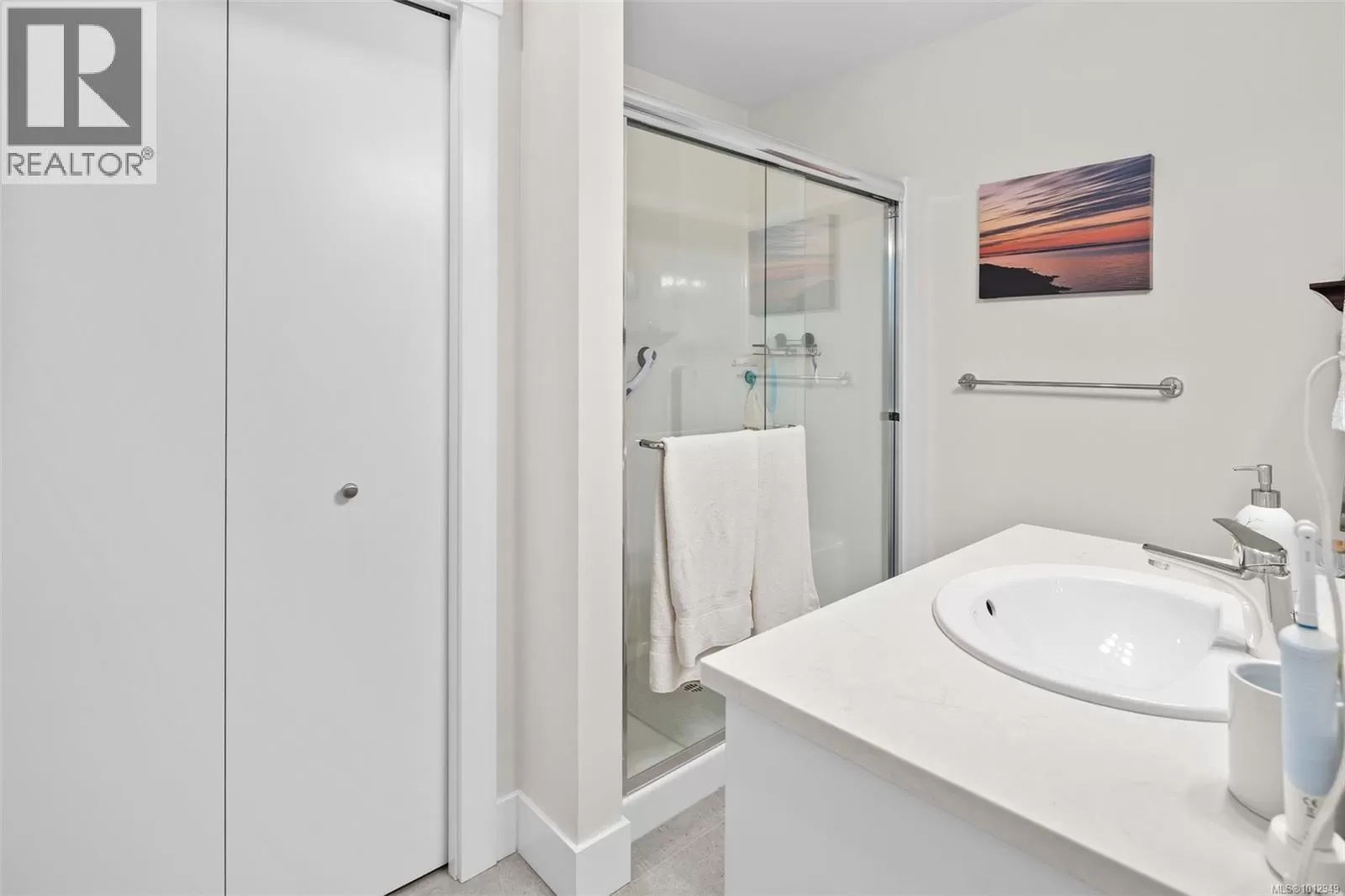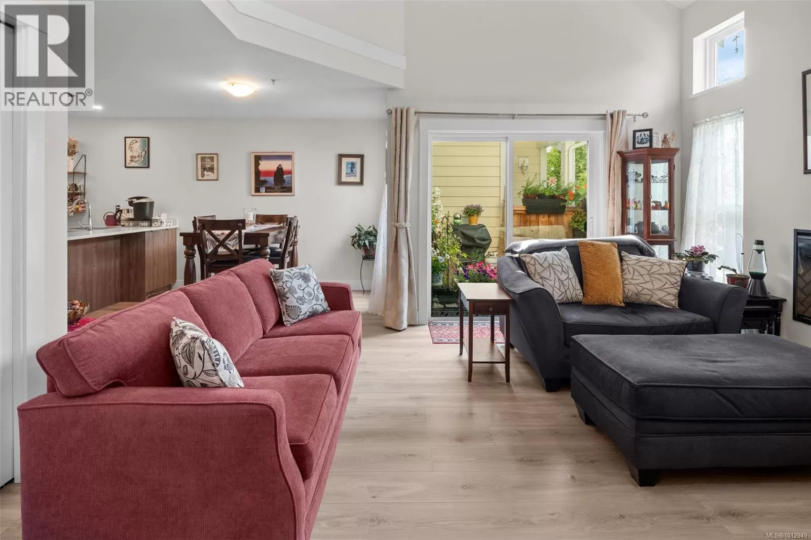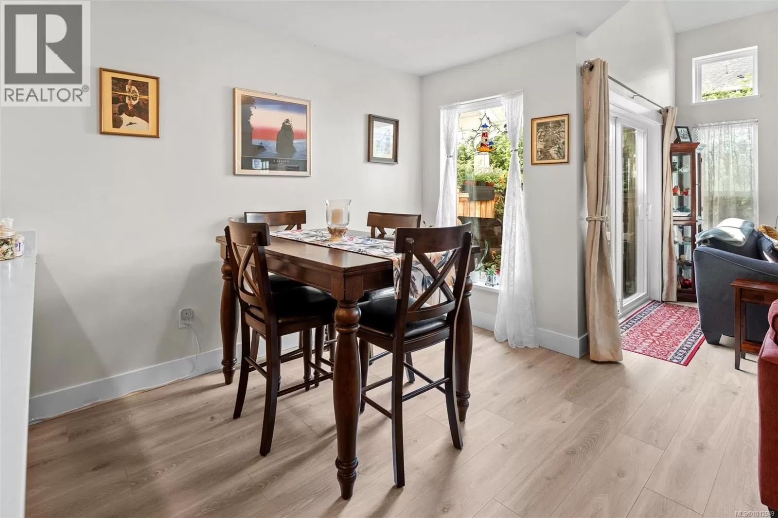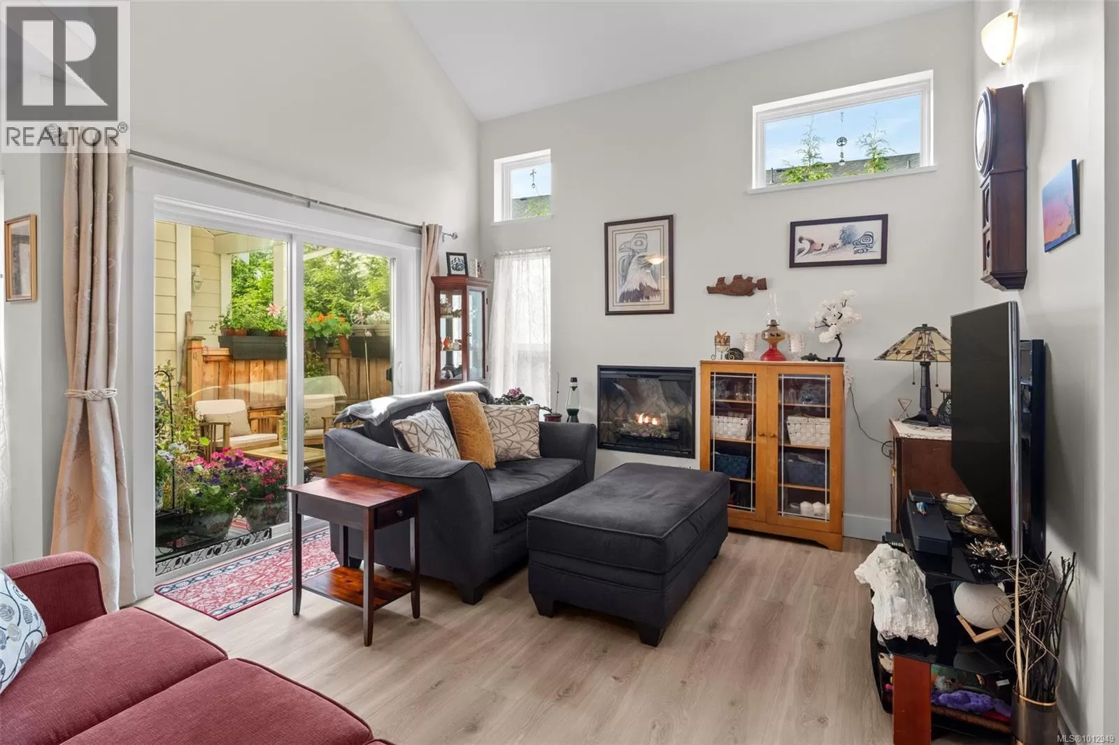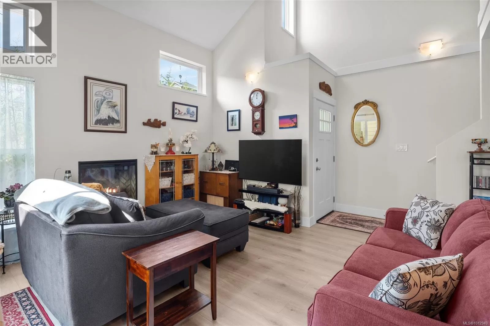 Move right in to this beautifully-appointed townhouse, right in the centre of Sooke! With its two bedrooms, each with its own ensuite bathroom, this 1250 sqft home is the ideal spot! Park in the single car garage, and enter into the open-plan west-facing main floor, with 17' vaulted ceilings and lots of windows for a bright living experience. The kitchen features stainless steel appliances and quartz counters, and a stylish electric fireplace is in the living room. Enjoy a fenced patio right off the living and dining room. Upstairs, you'll find two spacious bedrooms - each with its own ensuite bath - it's like having two primary bedrooms! This home features laminate floors in the living areas and bedrooms, and tile in the bathrooms. Walking distance to shops, restaurants, parks, and more! Low strata fees in a well-managed community of 18 homes. Clean and bright and ready for you to make it yours - call today! (id:27476)
