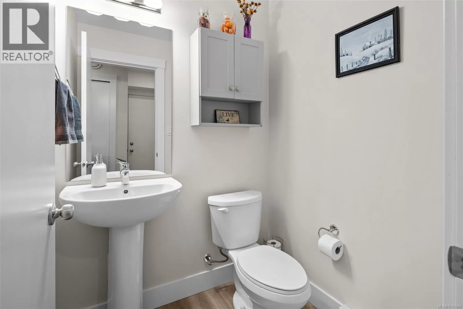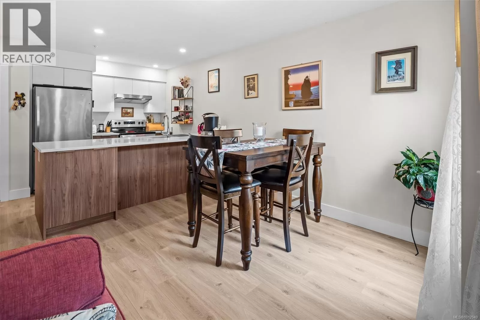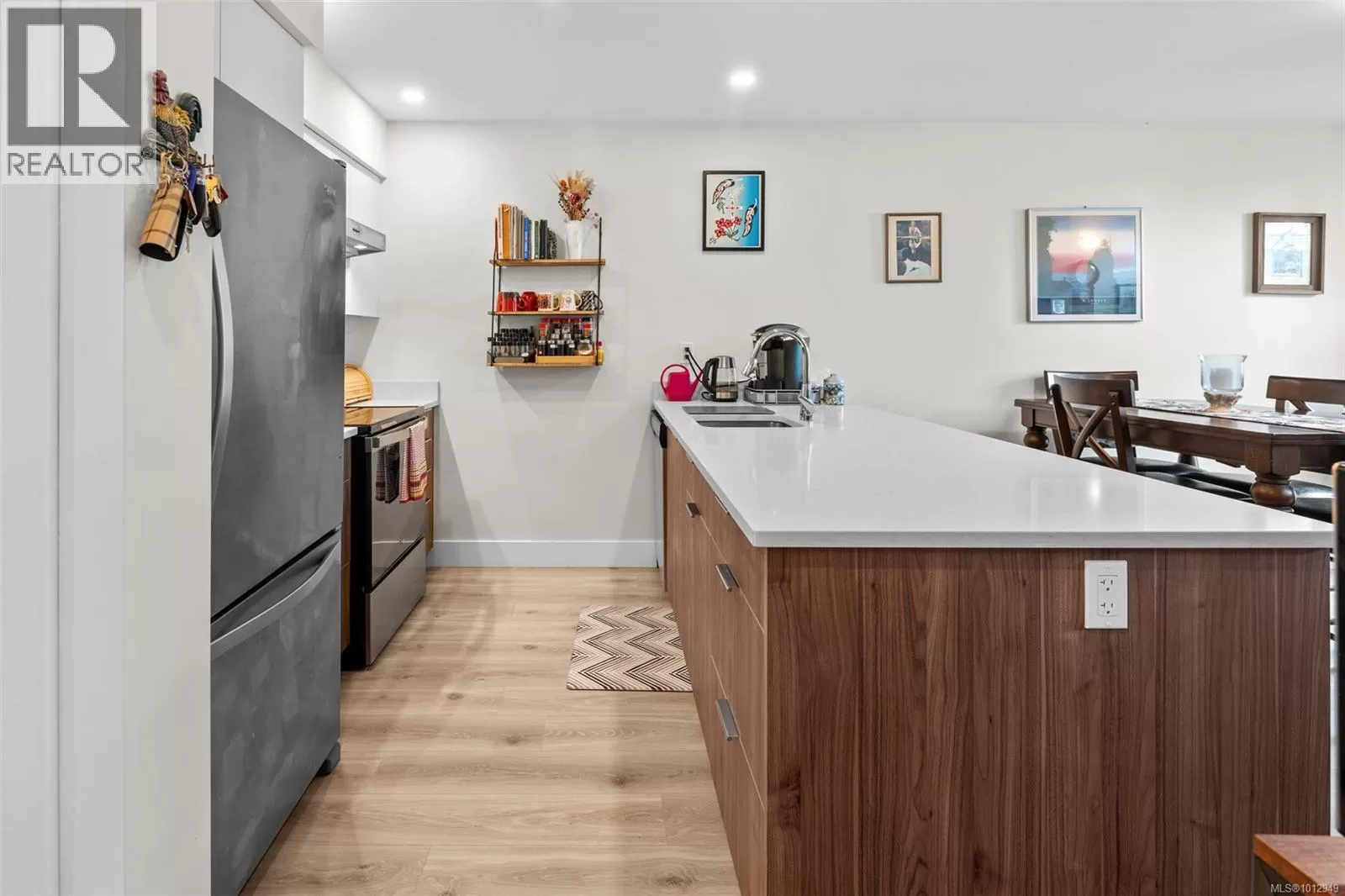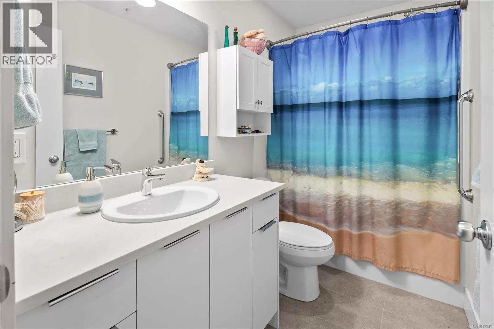 Move right in to this beautifully-appointed townhouse, right in the centre of Sooke! With its two bedrooms, each with its own ensuite bathroom, this 1250 sqft home is the ideal spot! Park in the single car garage, and enter into the open-plan west-facing main floor, with 17' vaulted ceilings and lots of windows for a bright living experience. The kitchen features stainless steel appliances and quartz counters, and a stylish electric fireplace is in the living room. Enjoy a fenced patio right off the living and dining room. Upstairs, you'll find two spacious bedrooms - each with its own ensuite bath - it's like having two primary bedrooms! This home features laminate floors in the living areas and bedrooms, and tile in the bathrooms. Walking distance to shops, restaurants, parks, and more! Low strata fees in a well-managed community of 18 homes. Clean and bright and ready for you to make it yours - call today! (id:27476)