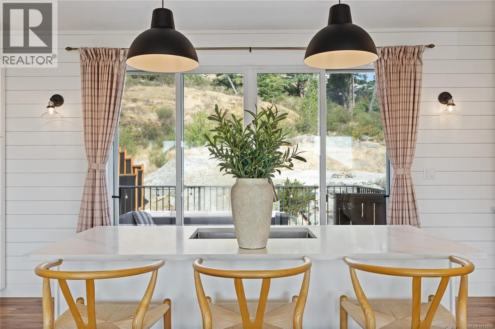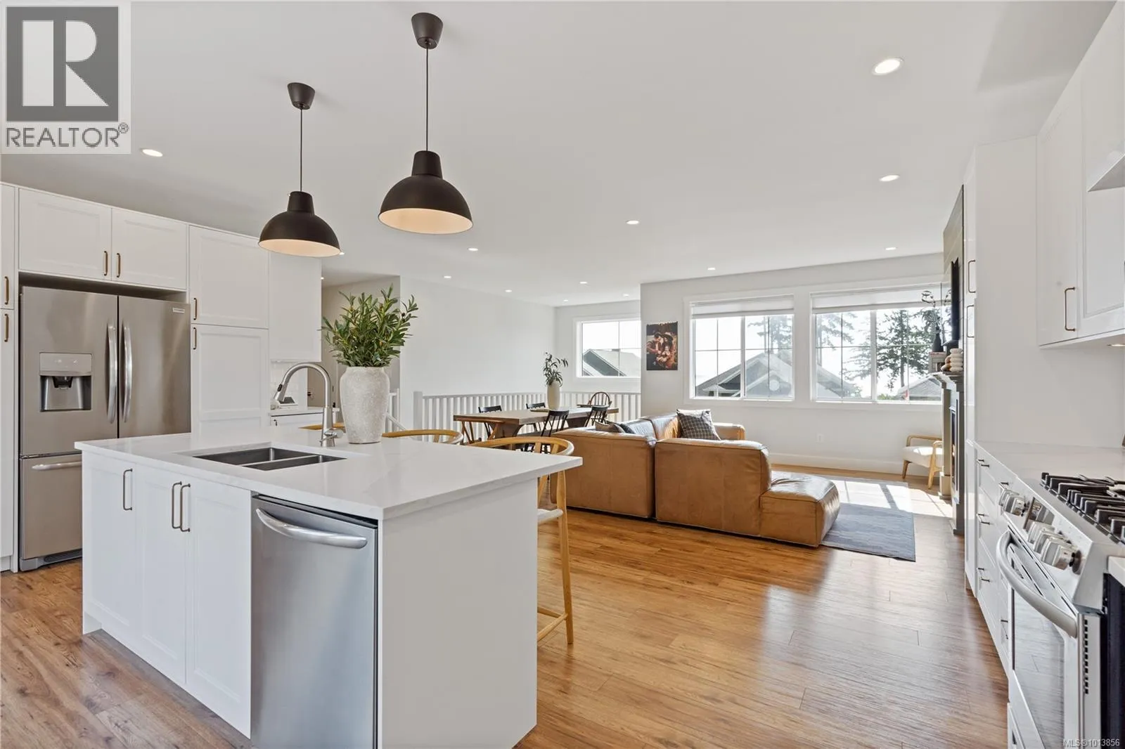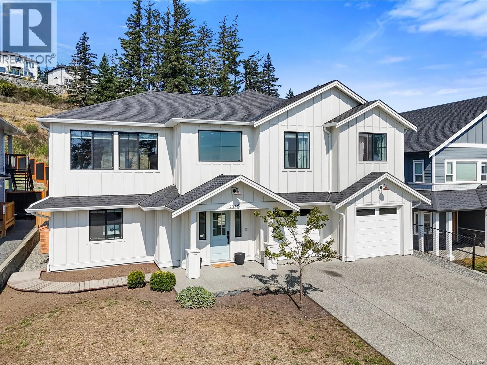 Discover this beautifully crafted, one-of-a-kind home in Sookeâs desirable Stone Ridge Estates. Set on nearly a ¼-acre lot, the property offers incredible potential to create your dream outdoor space complete with ocean and mountain views. Inside, the home is full of thoughtful design and upscale finishes. Shiplap feature walls, black fixtures, and statement lighting give it a modern farmhouse vibe, while oversized windows bring in tons of natural light and showcase the stunning scenery. Enjoy two cozy gas fireplaces, a ductless heat pump, in-floor heating in the primary ensuite, a large laundry room, and a double garage. A fully self-contained 1 bed 1 bath legal suite with its own gas fireplace offers flexibility for guests, or rental income. With its crisp white exterior, low-maintenance landscaping, and a charming wood walkway leading to the backyard, this home also has standout curb appeal, all just minutes from schools, shops, and everything Sooke has to offer. (id:27476)