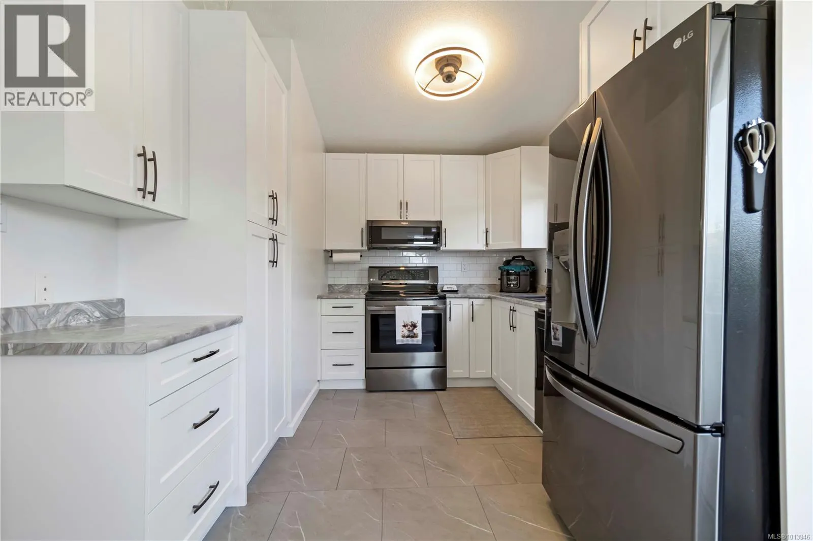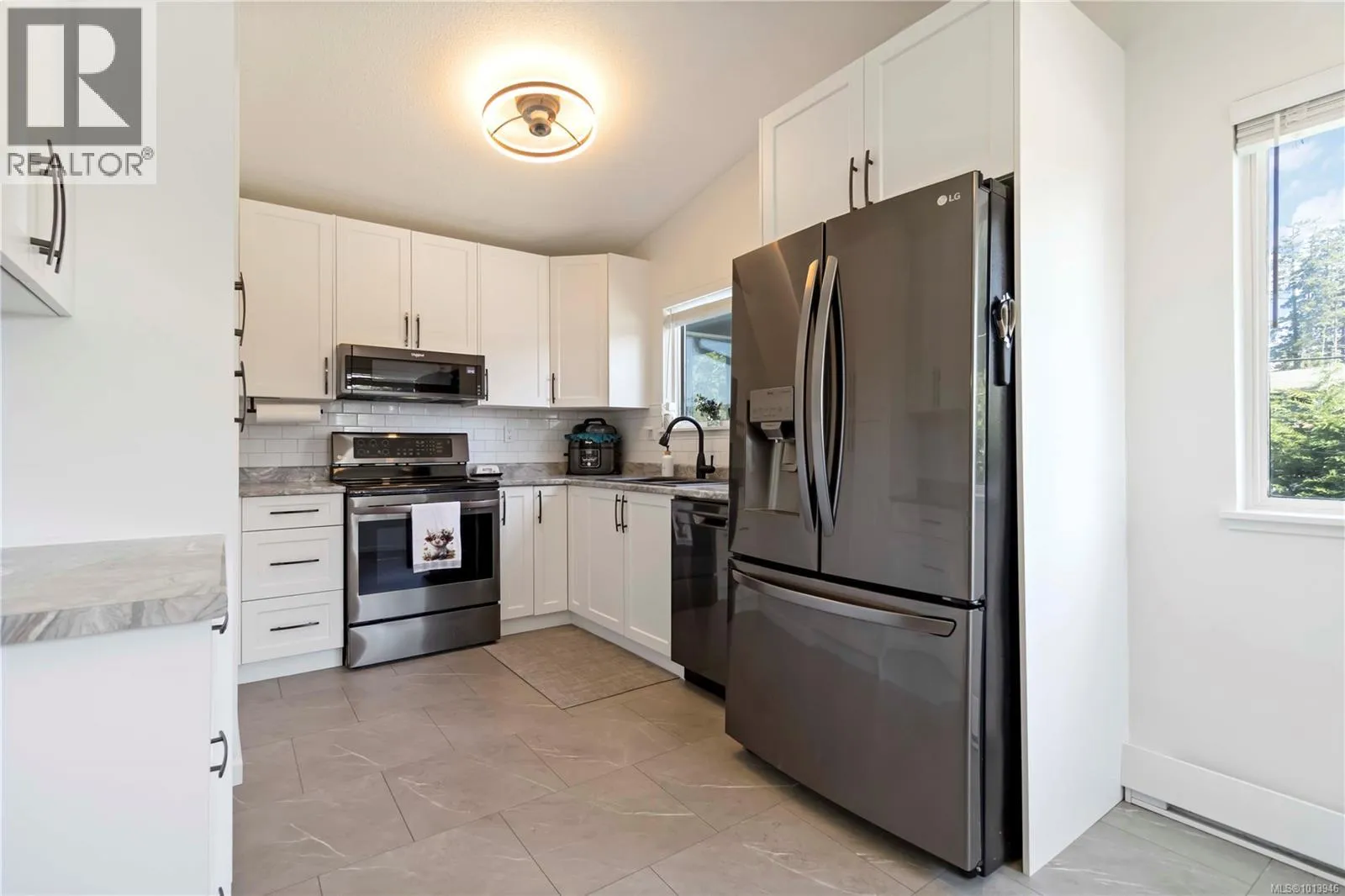 Embrace true coastal living at Unit 2 â 6110 Seabroom Road! This beautifully updated 2 bed, 2 bath townhome in a waterfront complex offers beach access just steps from your door. Inside, enjoy crisp white walls, warm stone fireplace surround, and a bright, modern kitchen with white shaker cabinets, stainless steel appliances, and ocean views. The spacious layout provides excellent separation between living and sleeping areas. Upstairs features a sunny deck, while the large primary bedroom boasts a private walkout patio. Recent updates include both bathrooms, kitchen, lighting, appliances, and fresh paint throughout. Outside, lush rhododendrons, manicured grounds, two storage rooms, and two parking stalls add to the appeal. Walk to the beach, local brewery, or nearby park, with central Sooke and endless trails just minutes away. Live the true Sooke lifestyleânature, ocean, and comfort, all in one. (id:27476)