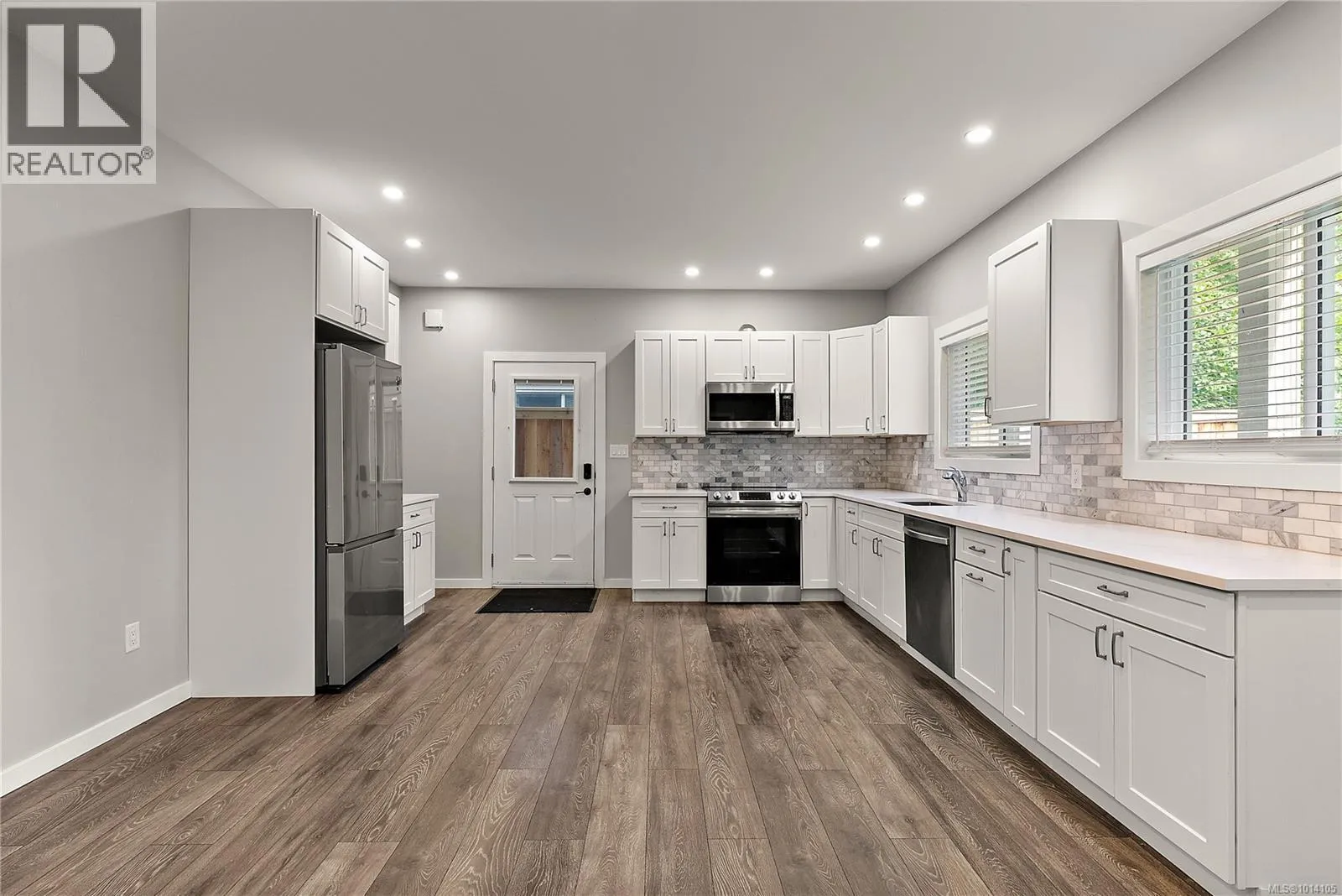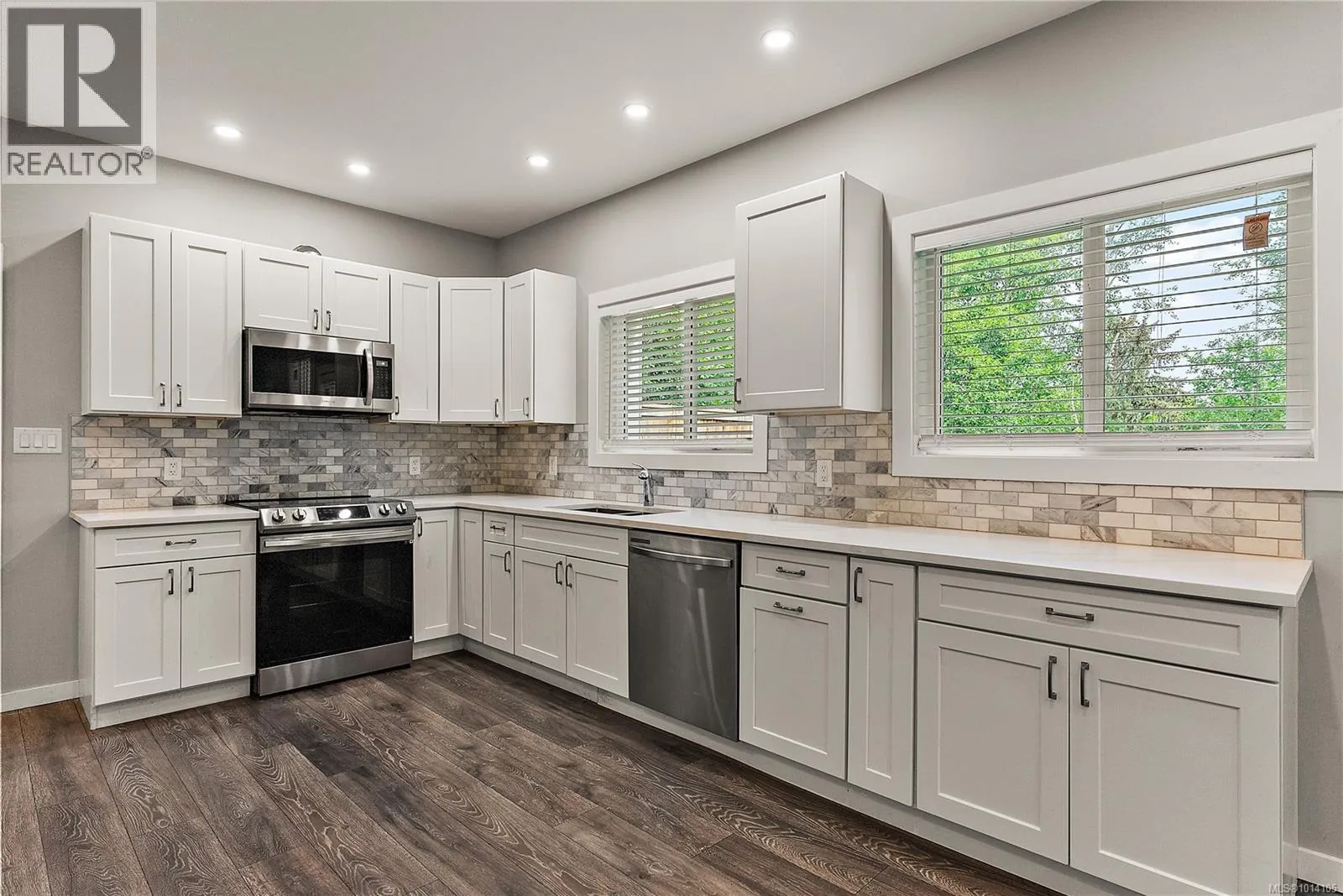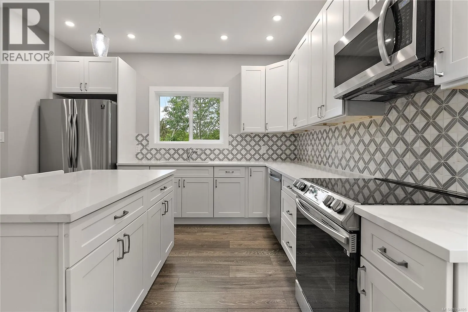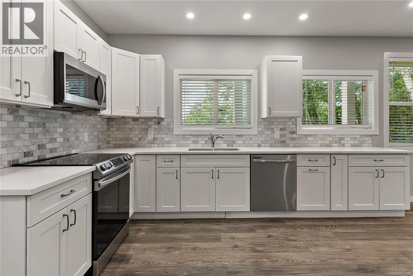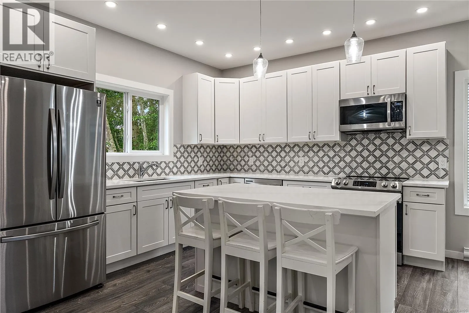 Experience the best of Sunriver Estates in this remarkable 2021-built home, offering 5 bedrooms and 4 bathrooms of modern elegance and a fantastic mortgage-helper opportunity. Tucked away at the end of a peaceful cul-de-sac, this property boasts incredible privacy and captivating south-facing views overlooking DeMamiel Creek Park. Inside, the main residence showcases premium finishes like quartz countertops, high-end stainless steel appliances, charming French doors, and a gas fireplace, creating an inviting and stylish living environment. The highlight for many will be the vacant 2-bedroom legal suite, complete with its own luxurious finishings, in-suite laundry, and a dedicated private patio spaceâan ideal solution for extended family or generating significant rental income. What's more, the ''Reimagined Back Yard Space,'' featuring convenient stairs off the main deck and a thoughtfully screened-off tenant patio, can be made available by the sellers with the right offer, adding even more value and utility. With easy access to schools, Seaparc Recreation Centre, and an abundance of parks and trails, this home truly represents a rare chance to own luxury and affordability in Sooke. (id:27476)