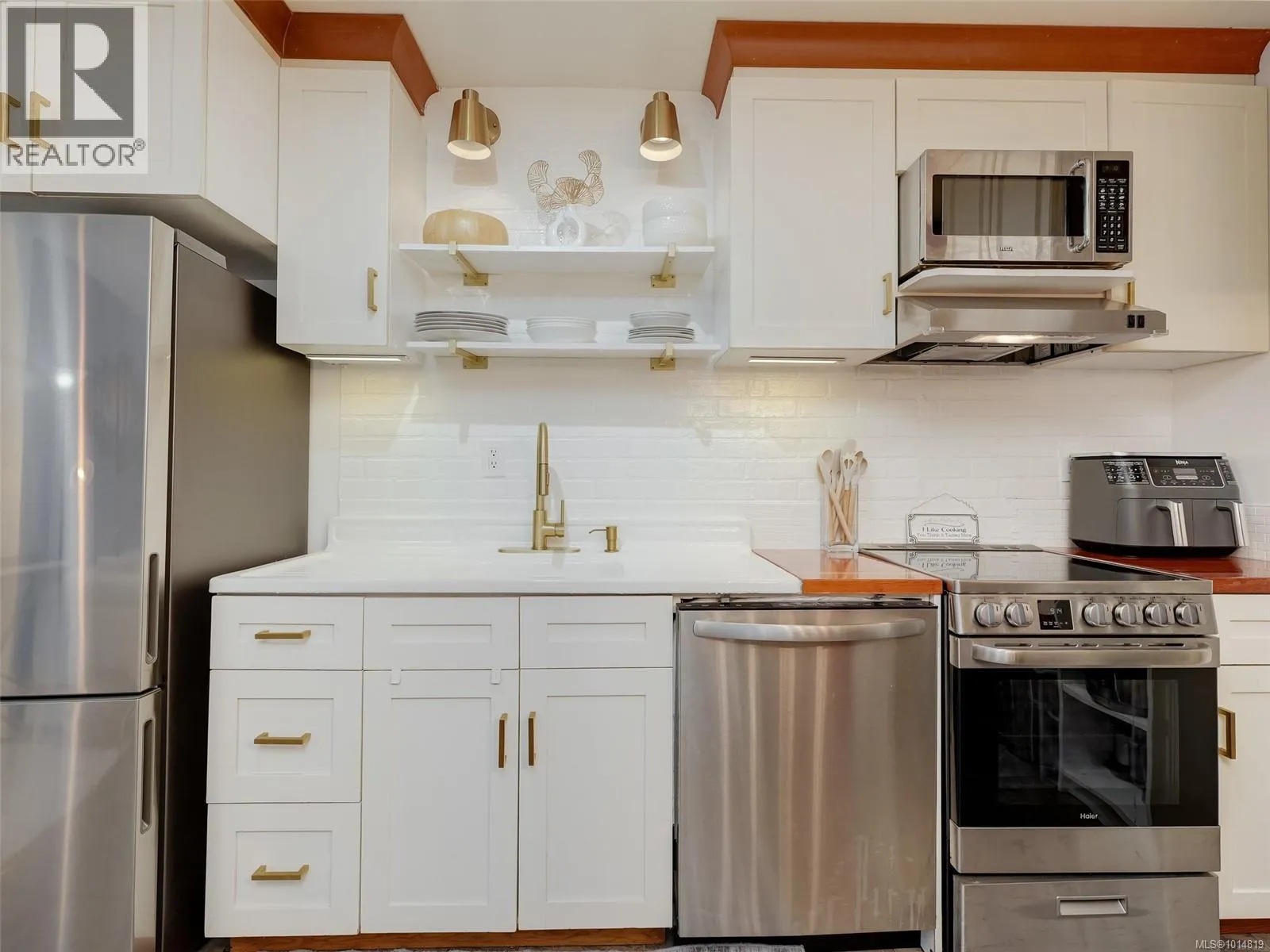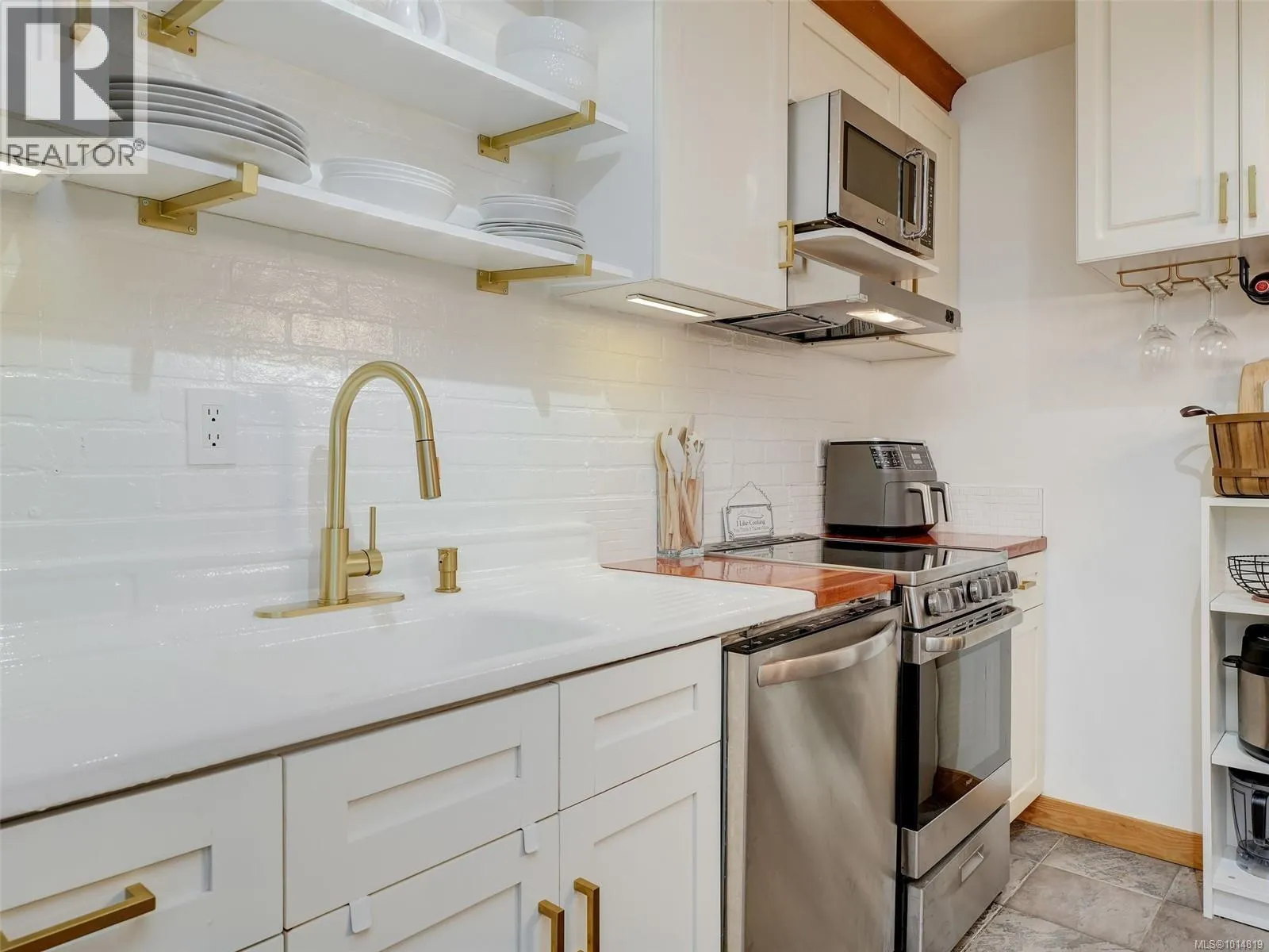 Ocean Edge Opportunity! Affordable, stylish, & just steps to the beach - this 1 bed, 1 bath ground-floor condo is the perfect starter, downsize, or investment property! Located on the Victoria side of Sooke in a quaint 12-unit strata complex, this updated unit offers a comfortable & functional layout with thoughtful designer touches throughout. The chic kitchen features clean white cabinetry with gold & timber accents creating a warm, coastal vibe. The open-concept living/dining space flows nicely & offers easy access to your own private, walk-out patio opening onto peaceful green space, ideal for morning coffee or evening relaxation. Enjoy in-suite laundry, a spacious bedroom with dual-closets, updated 4-piece bathroom, seperate storage closet & 1 parking stall. Pet + family friendly & rentable with direct access to oceanfront just down the street. Close to Sooke core, on bus route, & only 20 minutes to Westshore. Donât miss this turn-key opportunity to live the West Coast lifestyle! (id:27476)