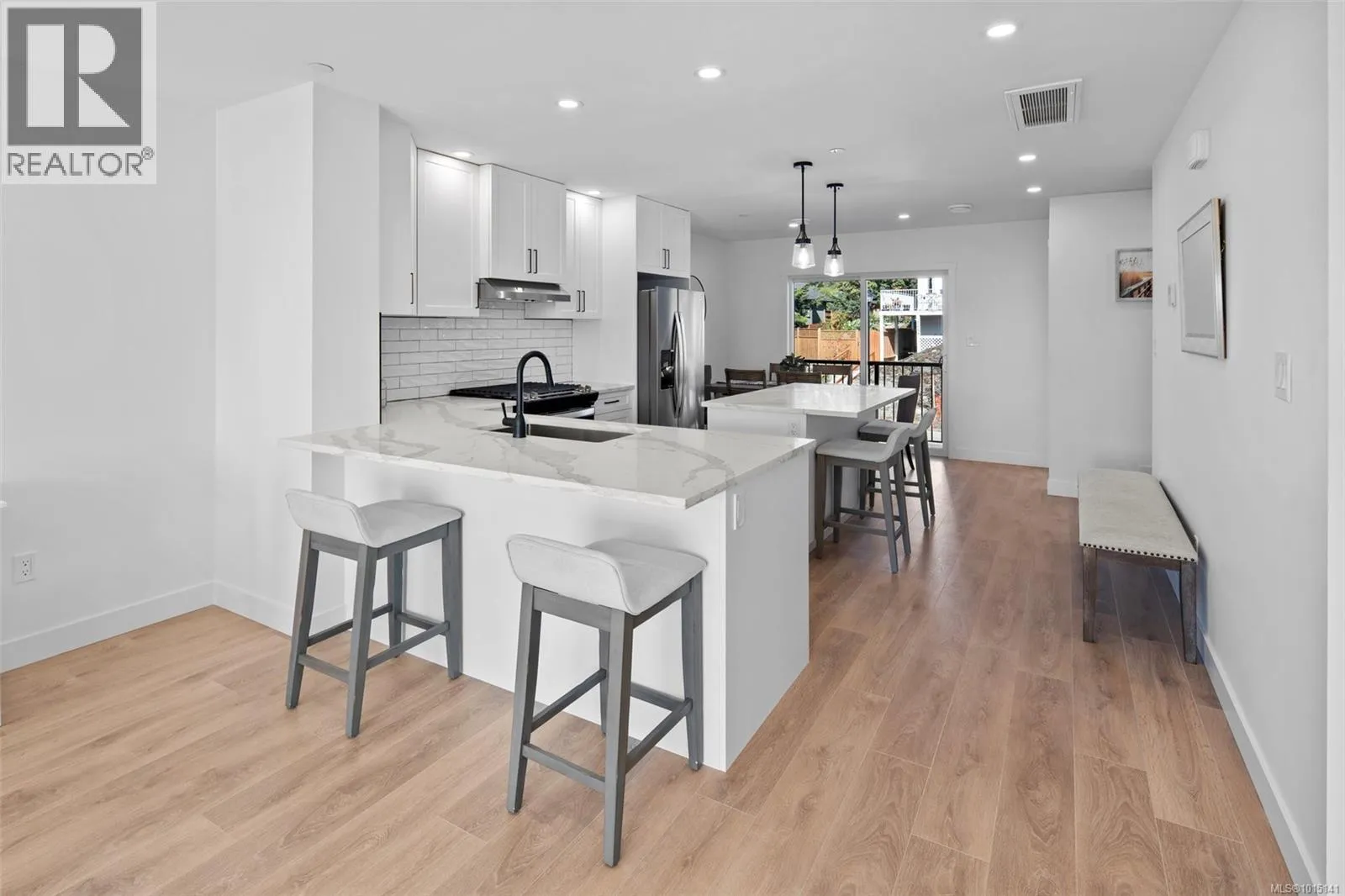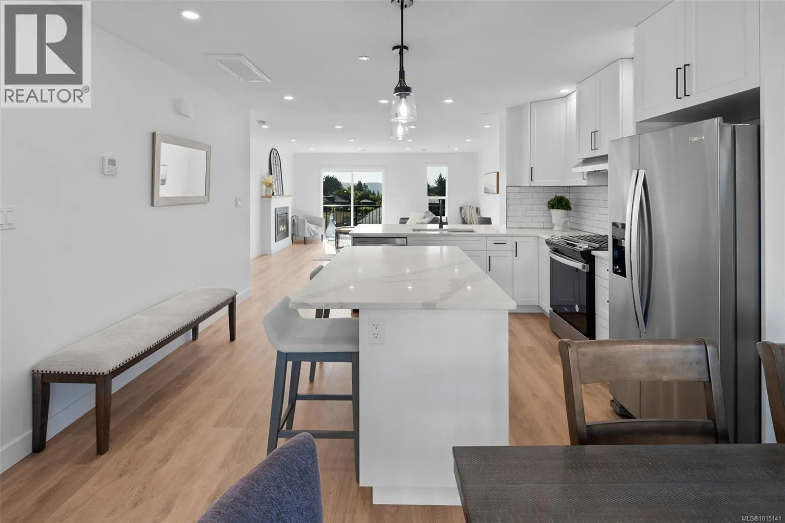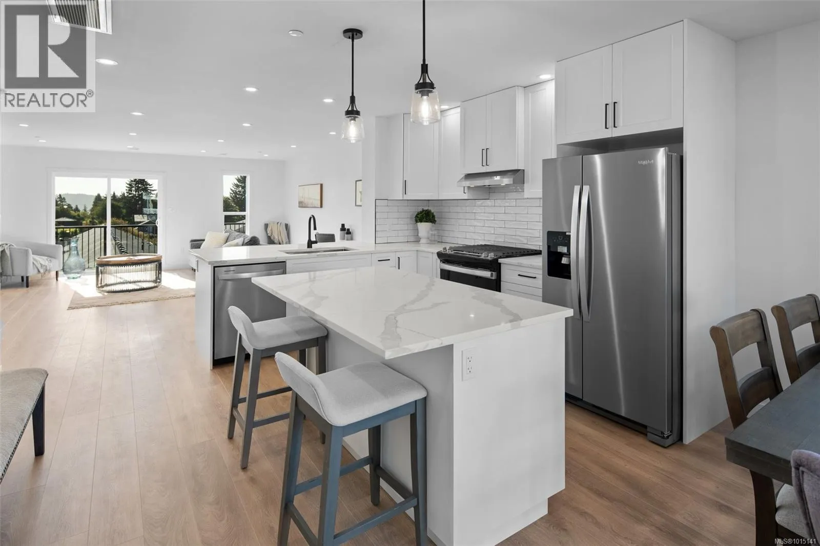 Step into this nearly new, thoughtfully designed 3-level townhome offering 1,880 sq ft of versatile living spaceâready for you to move in today! Featuring 3 spacious bedrooms, each w/ its own ensuite & walk-in closet, this home is ideal for multi-generational living, home office flexibility, even shared living arrangements. The 2nd flr is the heart of the home, showcasing an open-concept living area complete w/ an electric fireplace, a dedicated dining space & spacious kitchen w/ 2 large islandsâperfect for cooking, gathering & entertaining. Enjoy yr-round comfort with a dedicated HVAC system for the upper levels & separate wall unit for downstairs. Take in the expansive views from 3 private balconies each offering a unique vantage point of your new neighbourhood. Additional highlights: roughed in EV charger, crawlspace, 0 yard maintenance, Walking distance to transit & dwntwn Sooke, No size restrictions on pets! Donât miss this opportunity to own a home that adapts to your lifestyle! (id:27476)