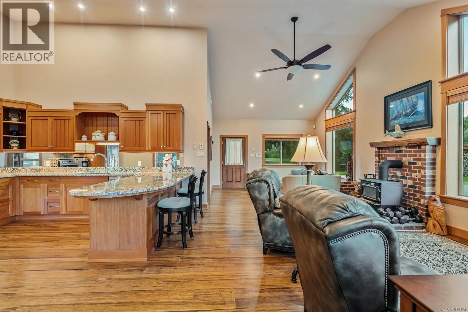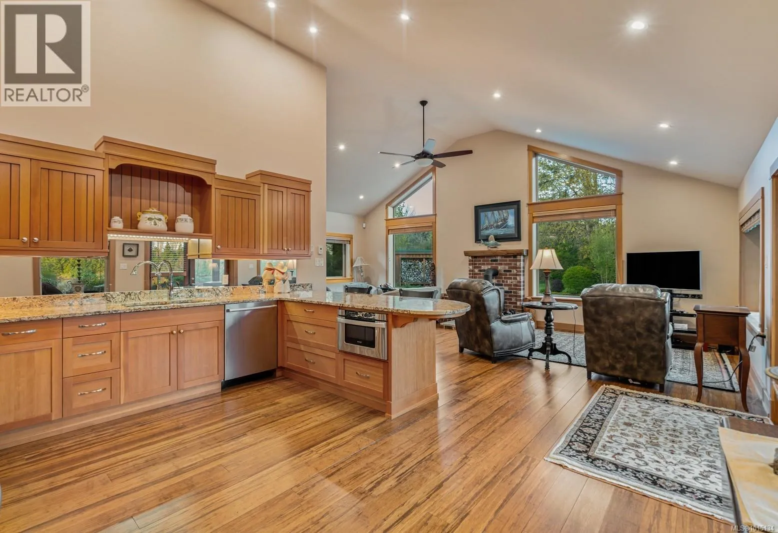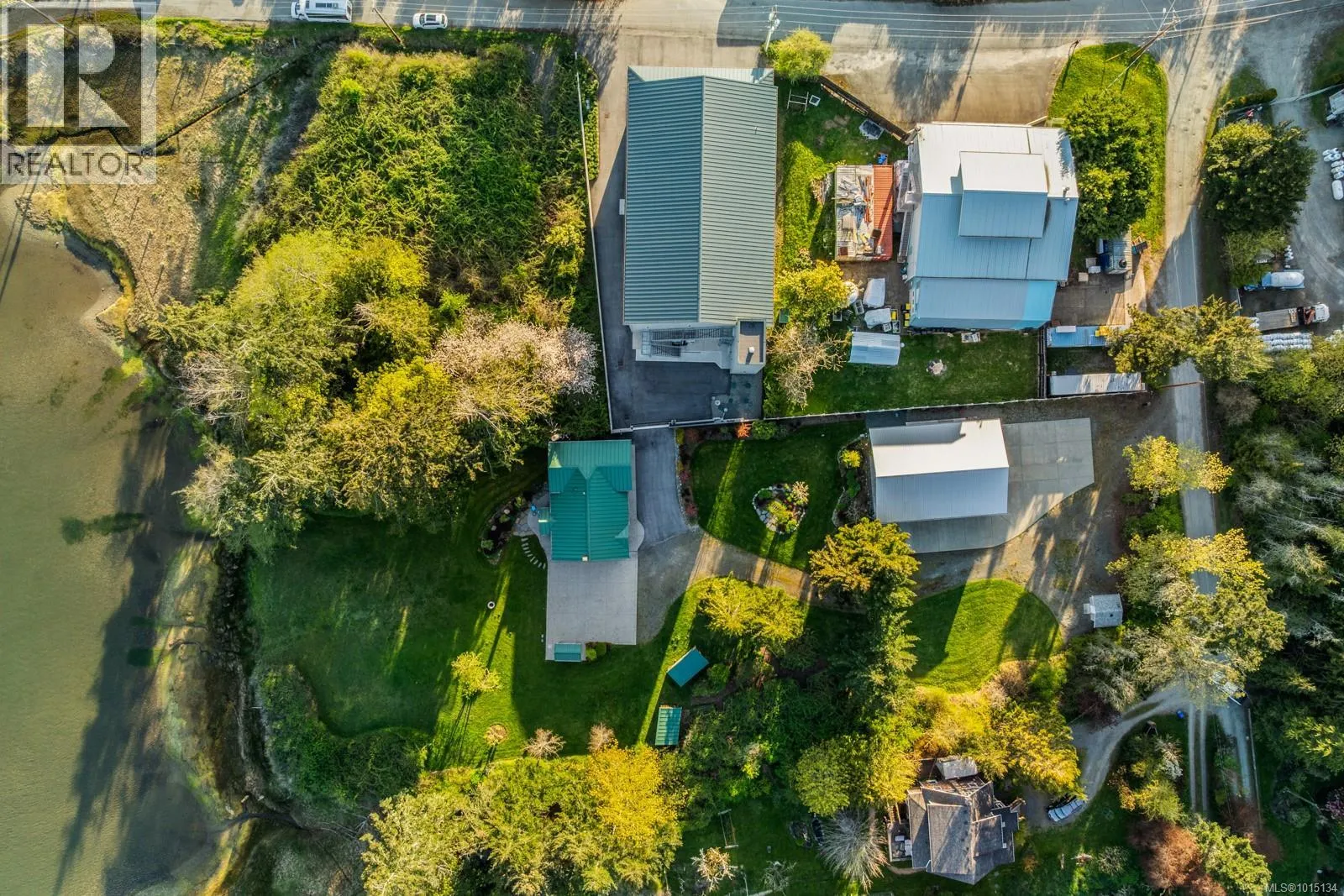 Oceanfront charm meets versatile opportunity at this beautifully updated 1 bed, 1 bath home on a private and quiet street. Inside, enjoy vaulted ceilings and an open-concept living space filled with natural light and woodstove. The kitchen features beautiful cabinetry, stone counters, stainless appliances, and a large eat-at peninsula. The primary bedroom offers vaulted ceilings. Find a 3-piece bath with walk-in shower, and a spacious laundry room. Outside, relax on your private patio overlooking the cove. Bonus features include a single-car garage with upper storage, plus a detached shop and plenty of parking. Being sold with the adjacent industrial property at 1931 Goodridge Road (MLS#1015130)âa unique opportunity for live-work flexibility or multi-use investment. (id:27476)