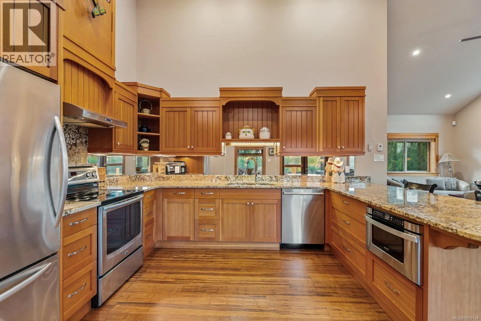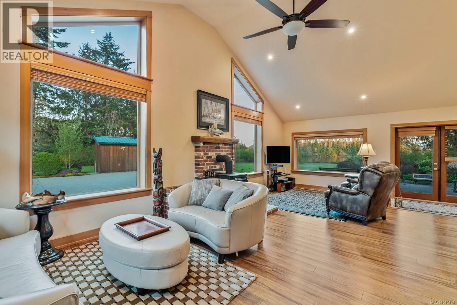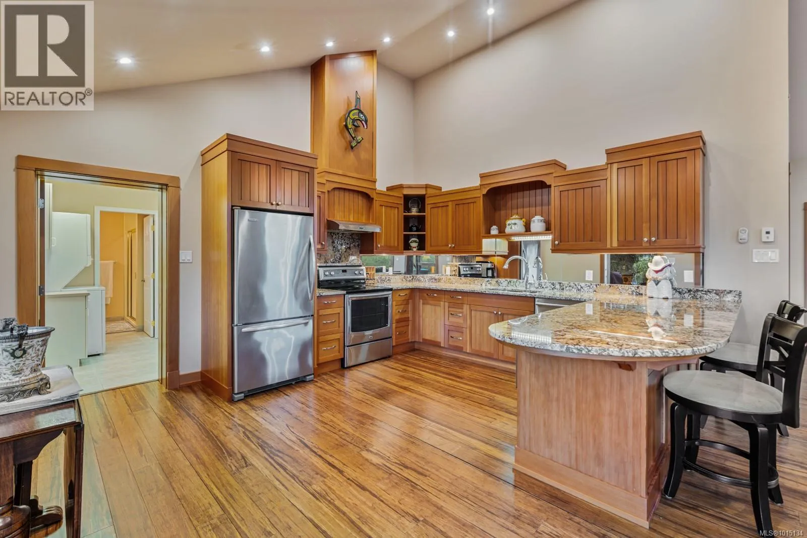 Oceanfront charm meets versatile opportunity at this beautifully updated 1 bed, 1 bath home on a private and quiet street. Inside, enjoy vaulted ceilings and an open-concept living space filled with natural light and woodstove. The kitchen features beautiful cabinetry, stone counters, stainless appliances, and a large eat-at peninsula. The primary bedroom offers vaulted ceilings. Find a 3-piece bath with walk-in shower, and a spacious laundry room. Outside, relax on your private patio overlooking the cove. Bonus features include a single-car garage with upper storage, plus a detached shop and plenty of parking. Being sold with the adjacent industrial property at 1931 Goodridge Road (MLS#1015130)âa unique opportunity for live-work flexibility or multi-use investment. (id:27476)