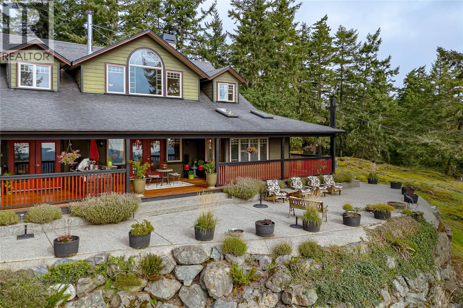 Character, charm, and attention to detail meet the modern conveniences of newer construction! Perched atop Mt. Matheson, this exceptional 1.25-acre property offers SWEEPING VIEWS of the Juan de Fuca Strait and Olympic Mountains. The custom-built home features 3 bedrooms (plus den), and 3 bathrooms. MAIN FLOOR living provides exceptional flexibility, with a luxurious primary ensuite and deck access to a private hot tub. A vaulted living room with cathedral windows and a wood-burning fireplace creates an inviting focal point, complemented by a warm, wood-accented kitchen and spacious dining area. Enjoy sunsets from the wraparound deck or entertain in the outdoor kitchen and dining space. Additional highlights include a 3-car garage, RV parking, beautifully landscaped gardens with irrigation and lighting, a heat pump with A/C, and CRD water with a purification system. Quiet charm of East Sooke in an exclusive hilltop community just 6 minutes to groceries and 20 minutes to everything else! (id:27476)