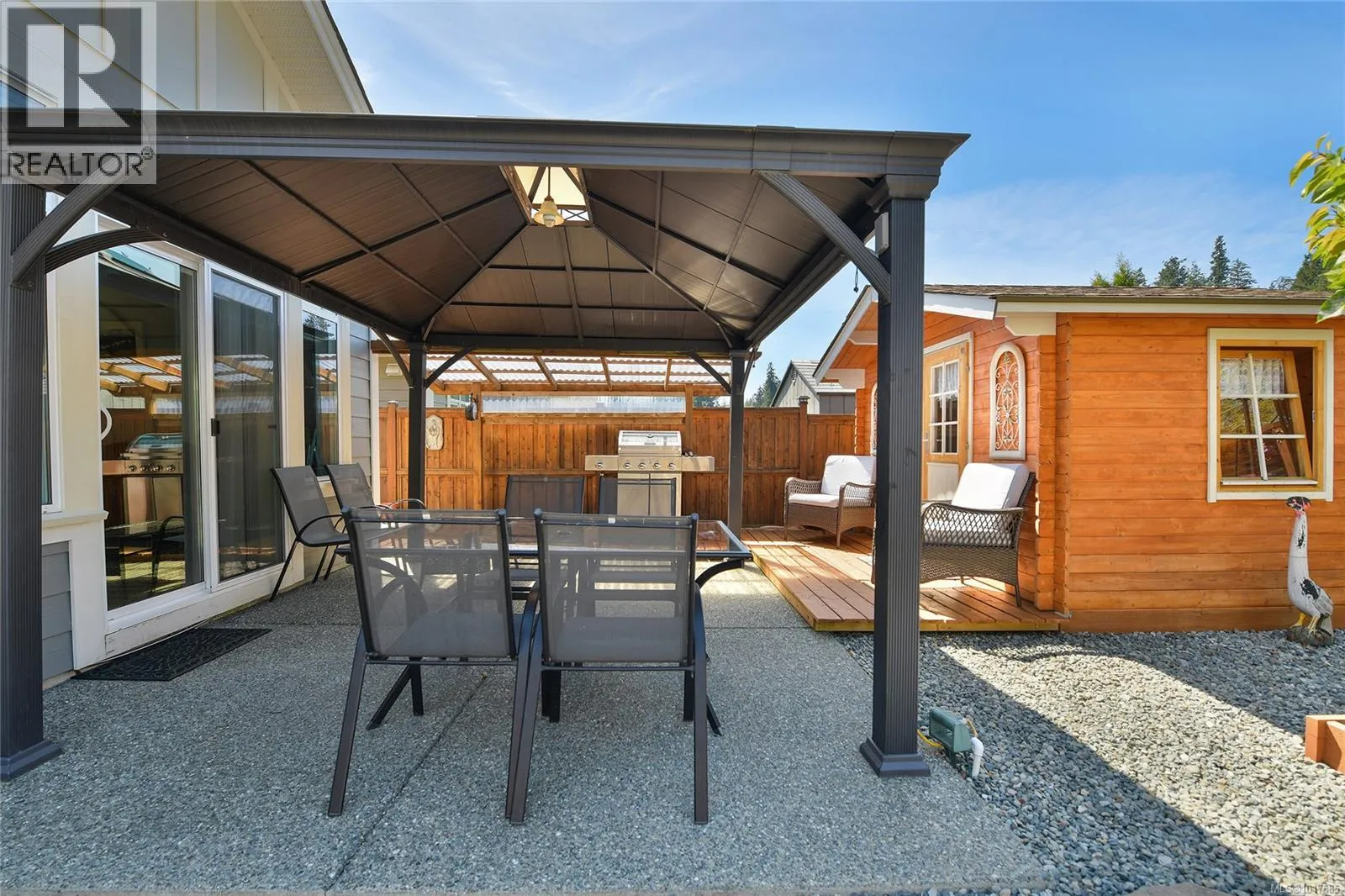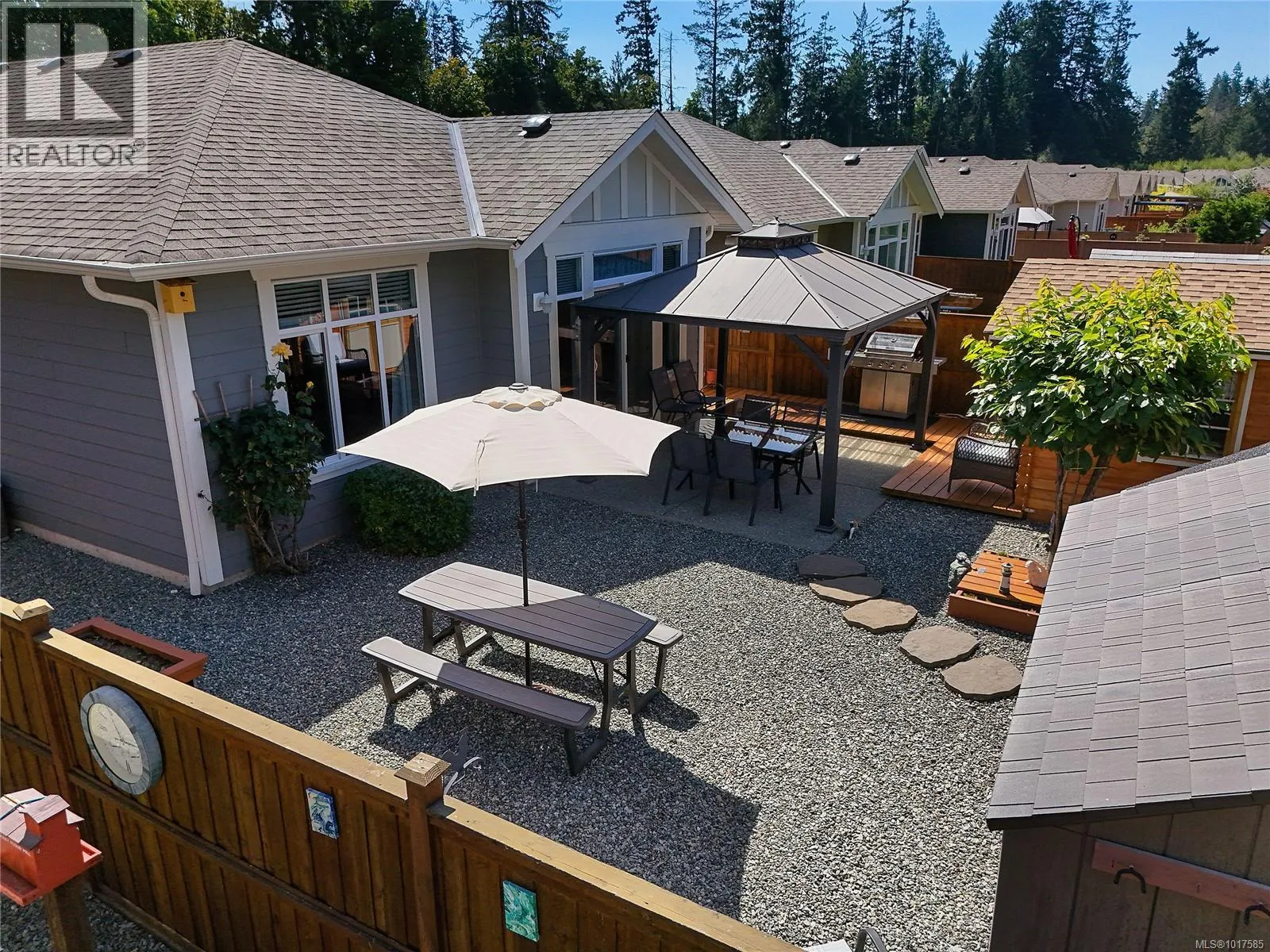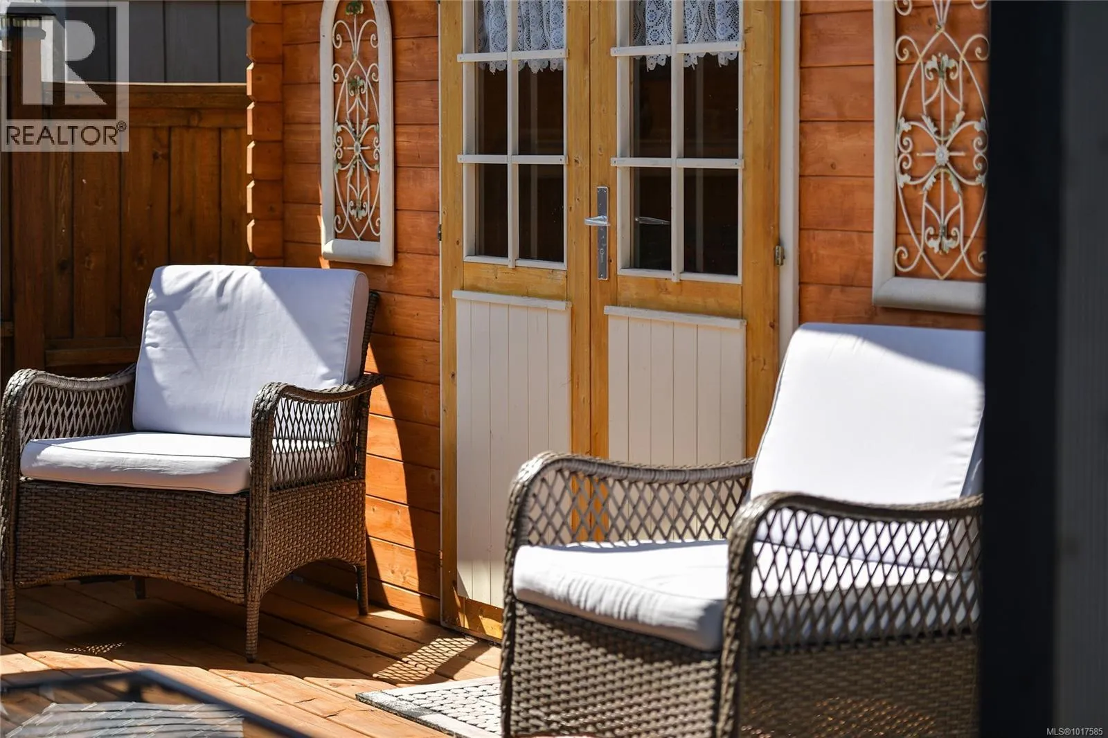 Welcome to RiversEdge Village, nestled in the prestigious Sunriver Estates! This beautifully appointed 3-bedroom Rancher offers easy one-level living with an attached garage while overlooking the Sunriver Nature Trail Park! Step inside to discover an open-concept floor plan, and a stylish kitchen featuring stone countertops and a large island perfect for entertaining. Outside, the fully landscaped yard boasts a charming cherry tree, raised garden beds, stonework, and fine wood details. A versatile backyard cabin serves perfectly as a private office/storage, alongside a practical shed and covered outdoor entertaining area. Enjoy access to the RV/Boat storage area and community Club Houseâideal for hosting private gatherings. With scenic walking trails and the Sooke River just steps away, this home offers the perfect blend of nature, comfort, and community living. (id:27476)