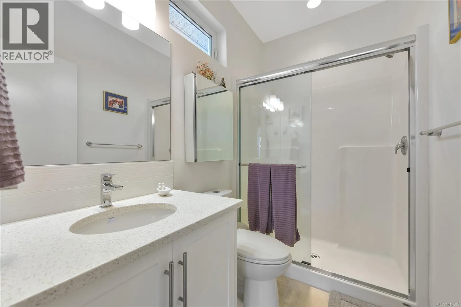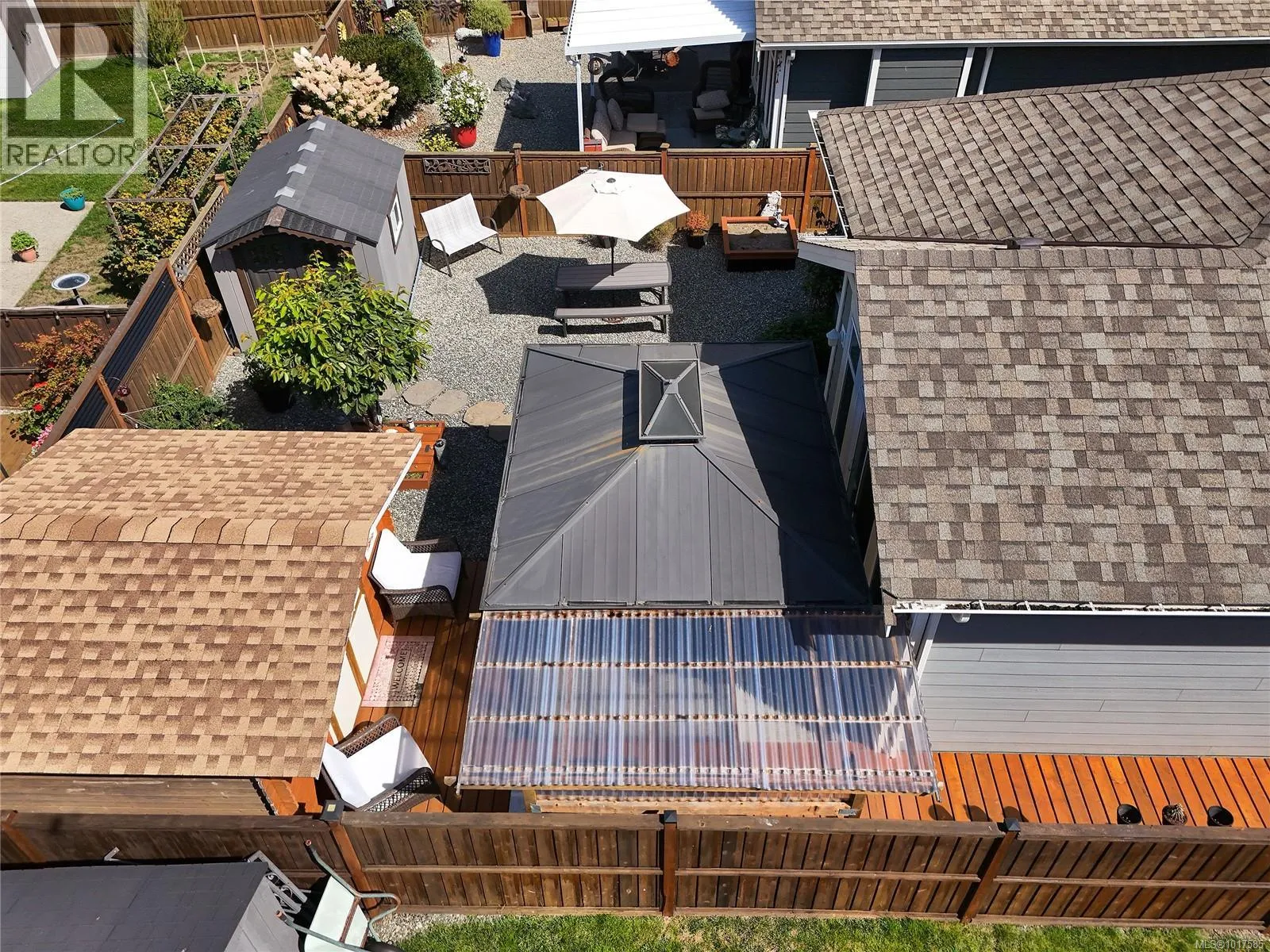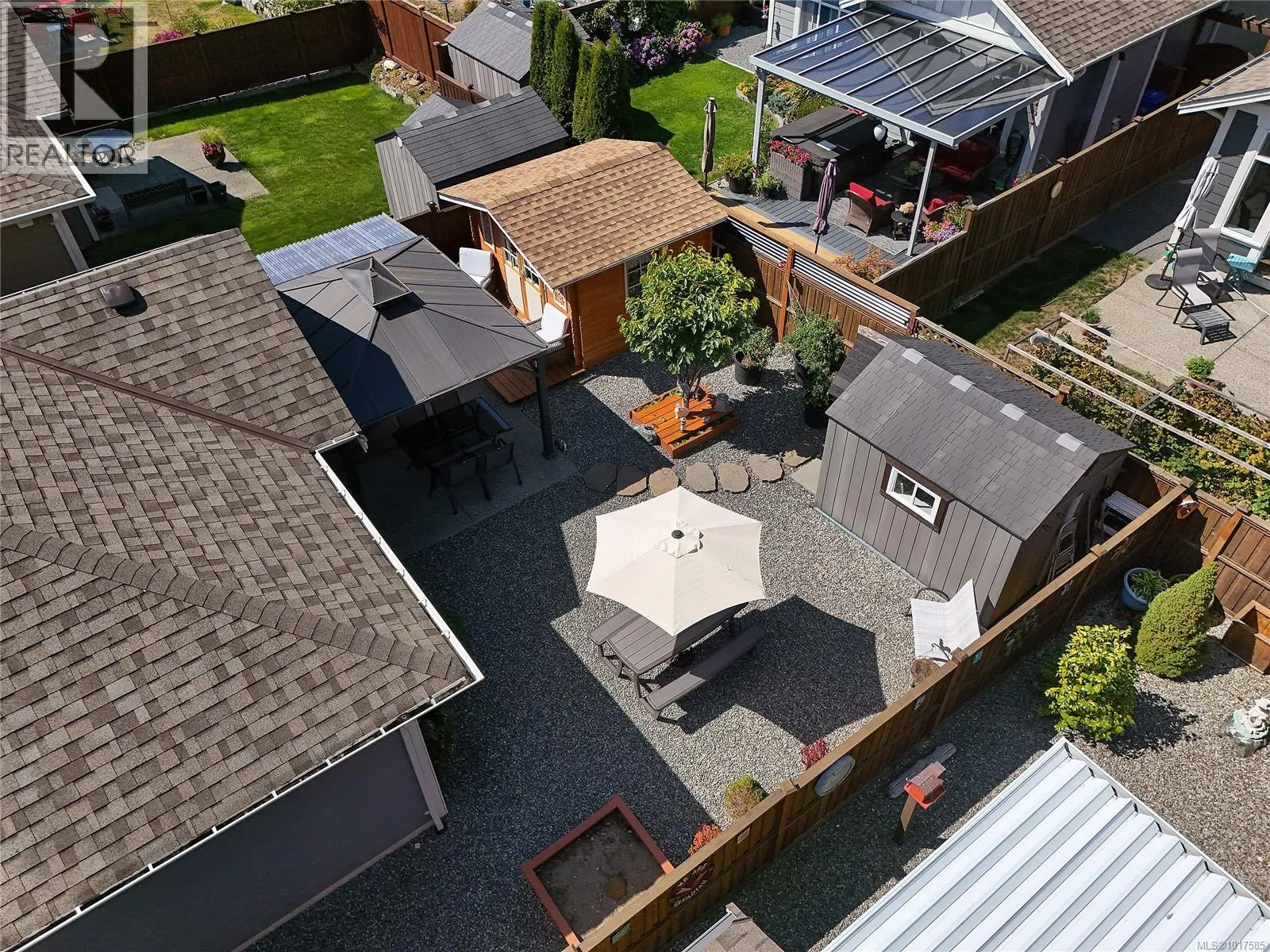 Welcome to RiversEdge Village, nestled in the prestigious Sunriver Estates! This beautifully appointed 3-bedroom Rancher offers easy one-level living with an attached garage while overlooking the Sunriver Nature Trail Park! Step inside to discover an open-concept floor plan, and a stylish kitchen featuring stone countertops and a large island perfect for entertaining. Outside, the fully landscaped yard boasts a charming cherry tree, raised garden beds, stonework, and fine wood details. A versatile backyard cabin serves perfectly as a private office/storage, alongside a practical shed and covered outdoor entertaining area. Enjoy access to the RV/Boat storage area and community Club Houseâideal for hosting private gatherings. With scenic walking trails and the Sooke River just steps away, this home offers the perfect blend of nature, comfort, and community living. (id:27476)