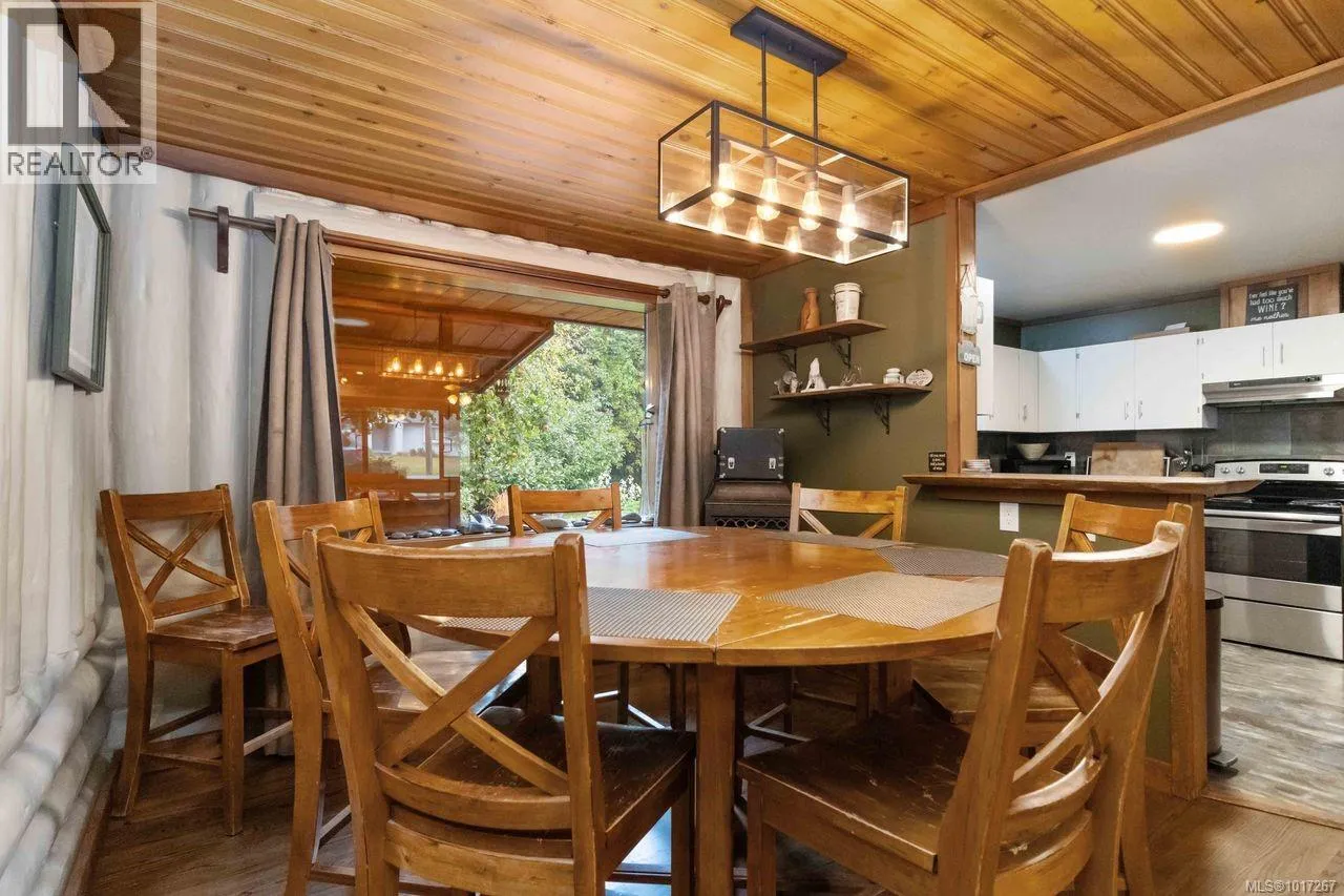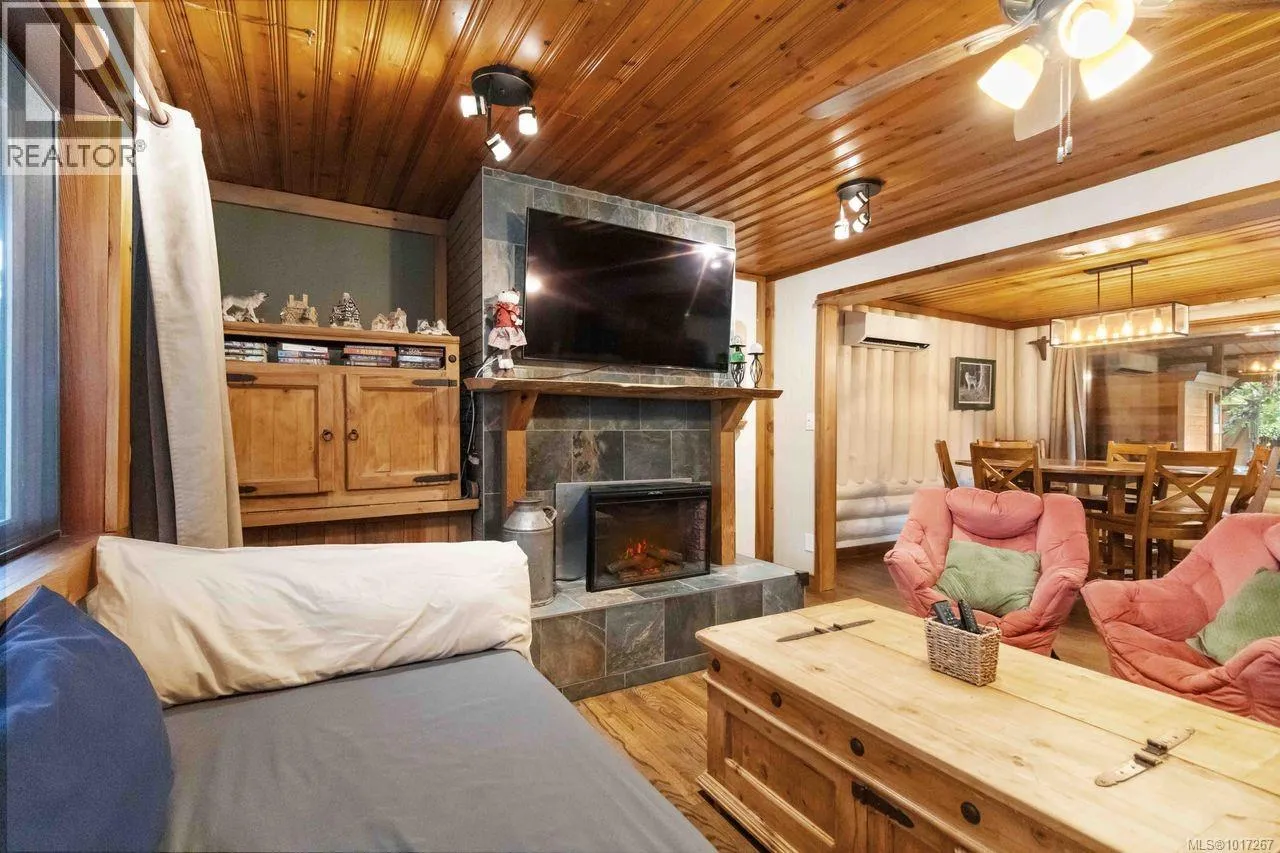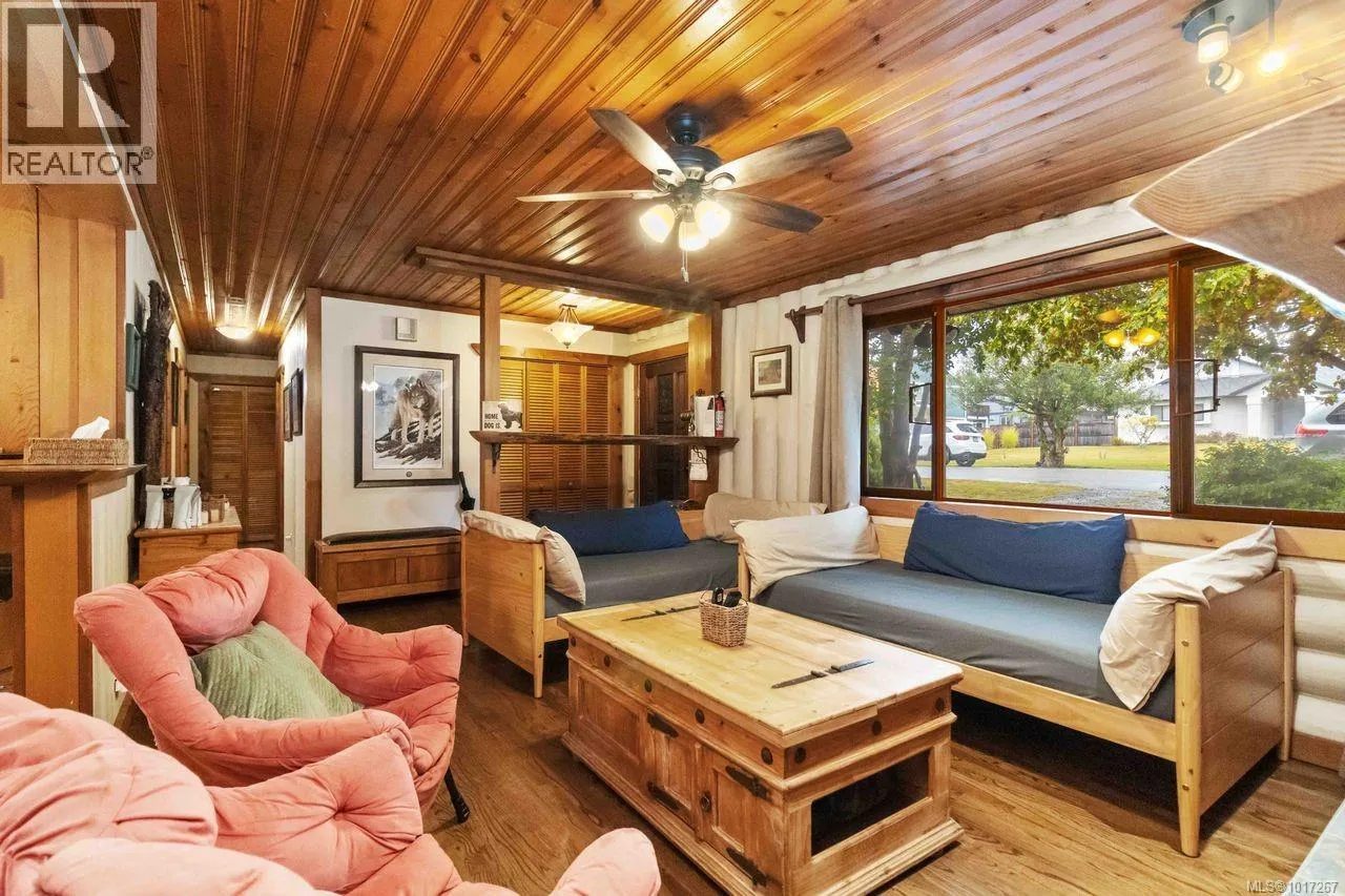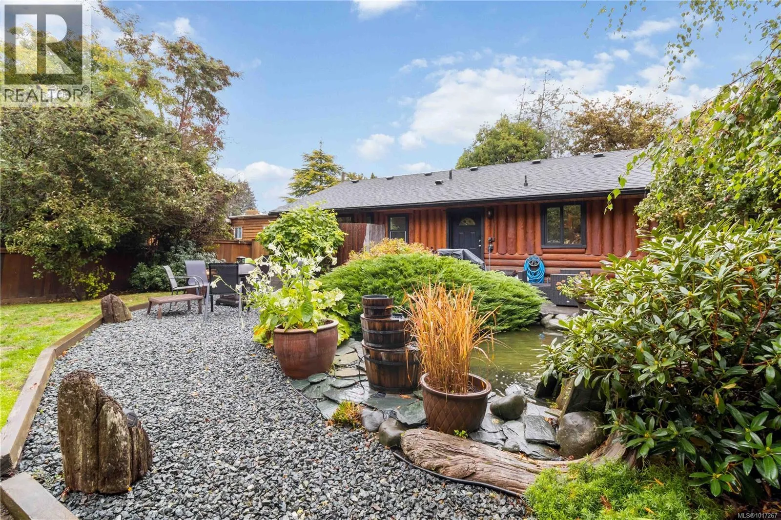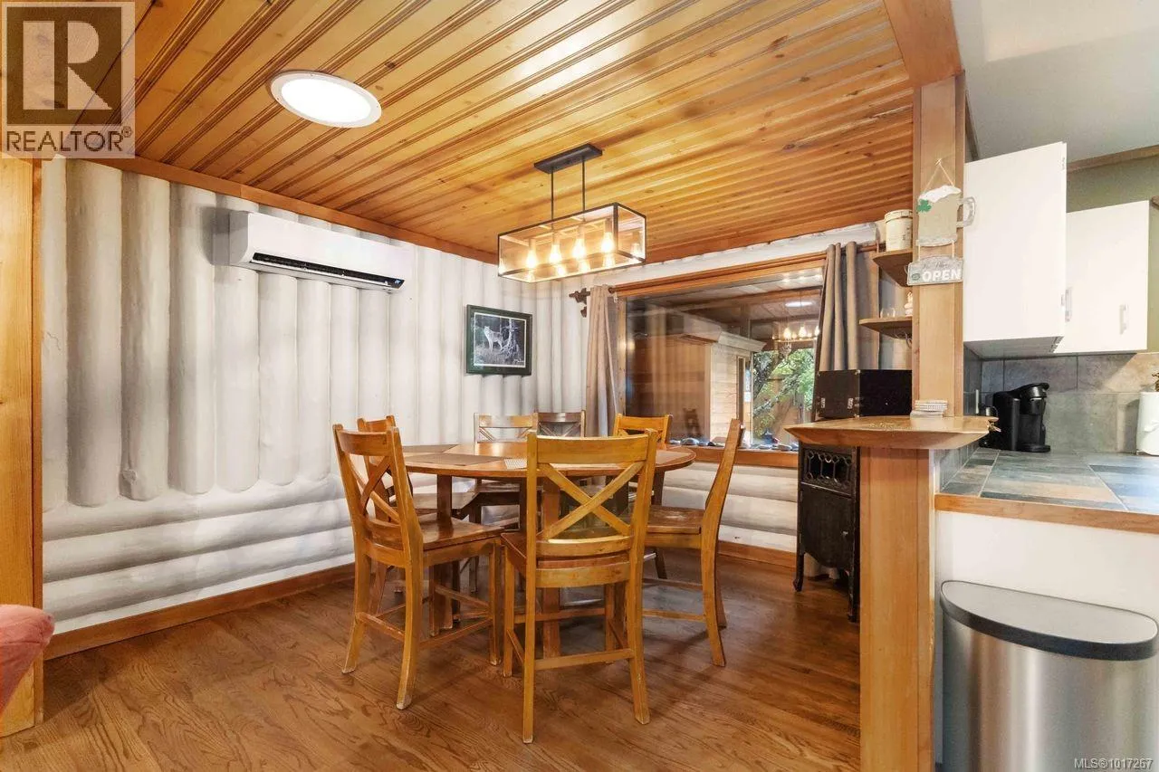 Welcome to this custom Scandinavian log home, a truly special 3-bedroom retreat where timeless craftsmanship meets modern comfort. Thoughtfully updated throughout, it features original hardwood floors, solid wood ceilings, and striking log detailing that create a warm and inviting atmosphere. Two electric fireplaces add cozy charm, and the heat pump ensures comfortable warmth throughout the home. The open layout makes everyday living effortless, extending naturally to a beautifully landscaped and fully fenced backyard with cedar fencing. Enjoy your own private oasis complete with a cedar sauna, cedar hot tub, tranquil pond, and mature fruit trees. The property is ideal for downsizers seeking single level living with both space and character. A charming Studio in the back offers extra room for, or a quiet hideaway, complete with its own fully fenced yard. This home captures the essence of relaxed West Coast living, ready for you to move in and enjoy. (id:27476)
