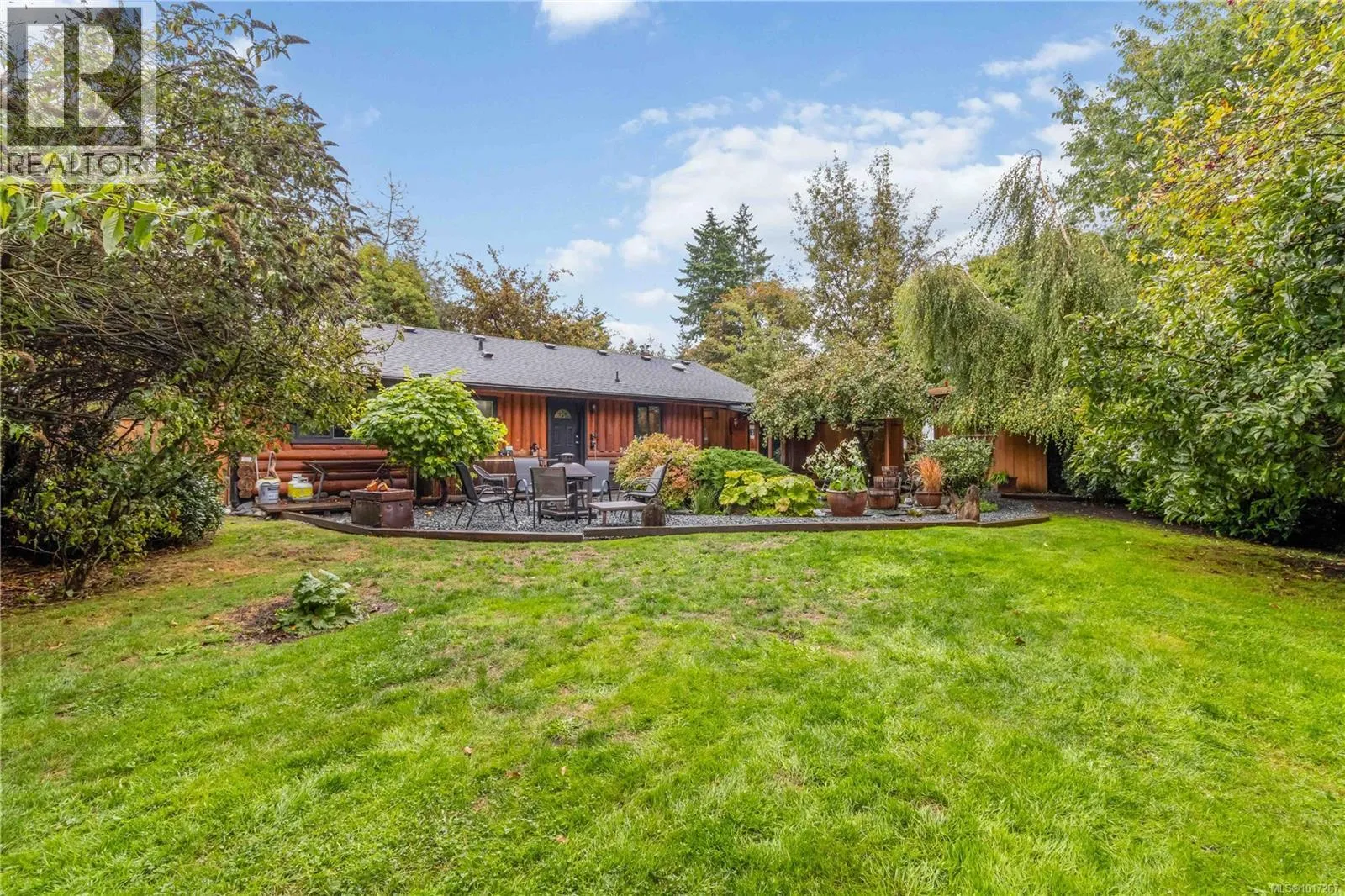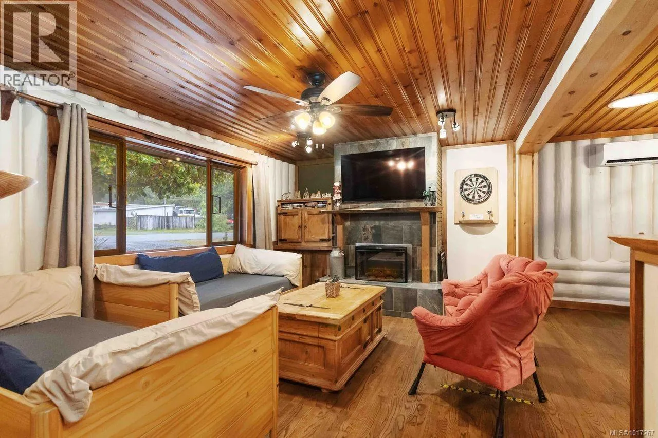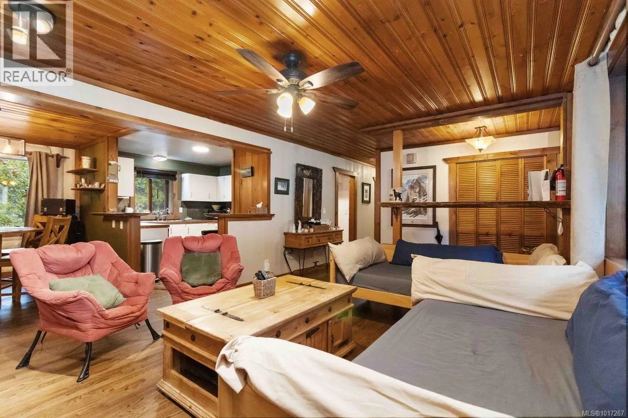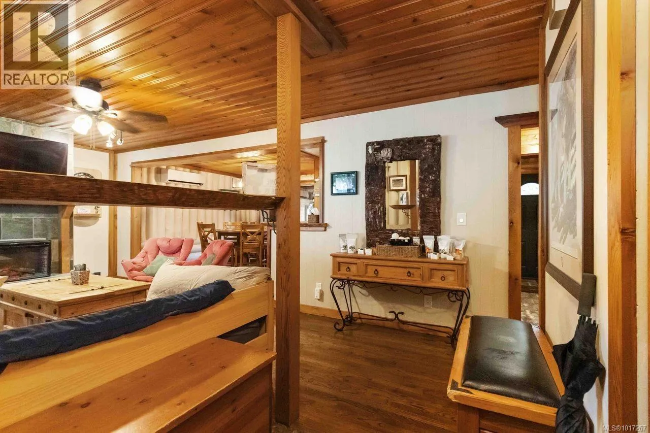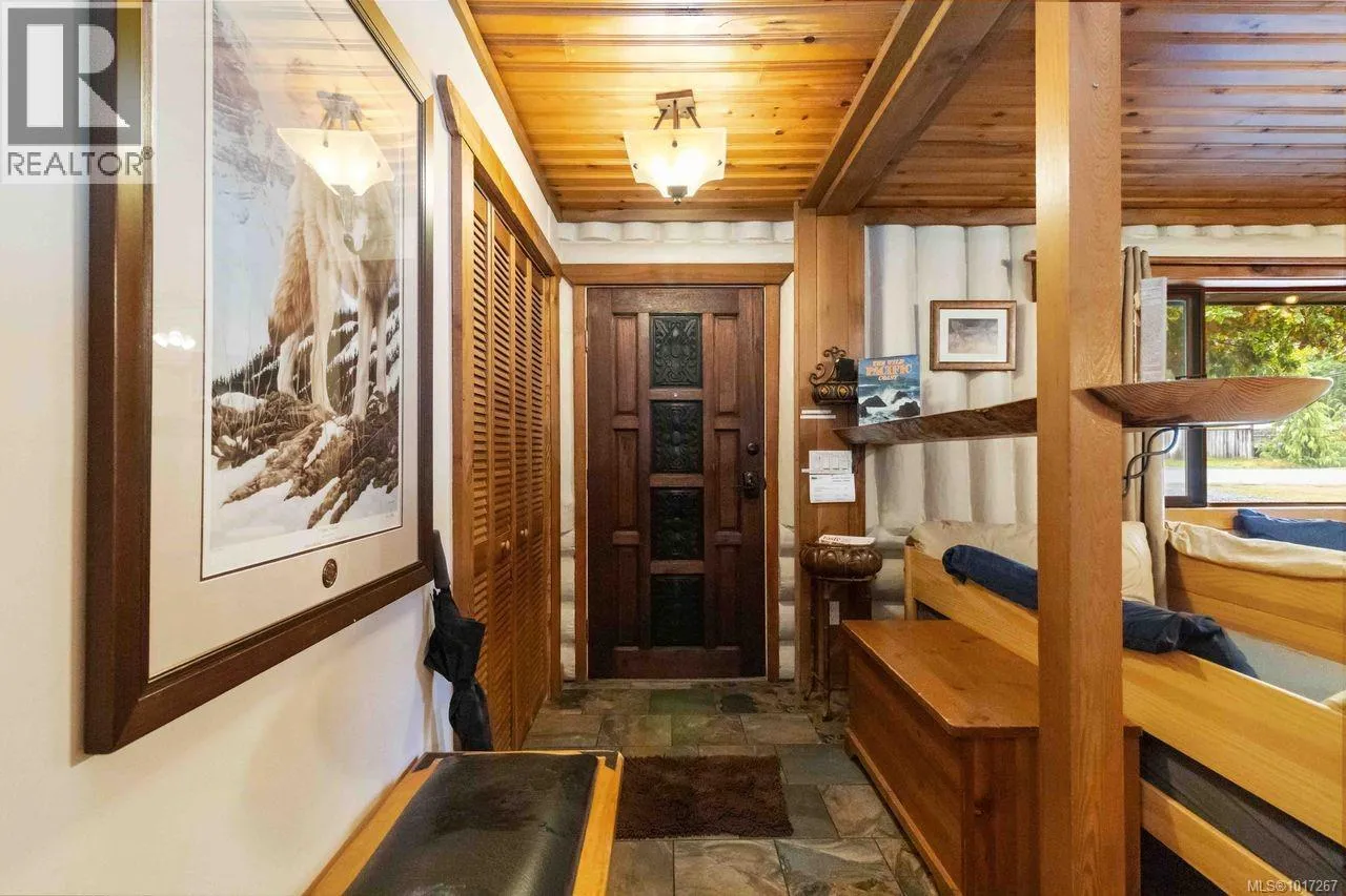 Welcome to this custom Scandinavian log home, a truly special 3-bedroom retreat where timeless craftsmanship meets modern comfort. Thoughtfully updated throughout, it features original hardwood floors, solid wood ceilings, and striking log detailing that create a warm and inviting atmosphere. Two electric fireplaces add cozy charm, and the heat pump ensures comfortable warmth throughout the home. The open layout makes everyday living effortless, extending naturally to a beautifully landscaped and fully fenced backyard with cedar fencing. Enjoy your own private oasis complete with a cedar sauna, cedar hot tub, tranquil pond, and mature fruit trees. The property is ideal for downsizers seeking single level living with both space and character. A charming Studio in the back offers extra room for, or a quiet hideaway, complete with its own fully fenced yard. This home captures the essence of relaxed West Coast living, ready for you to move in and enjoy. (id:27476)