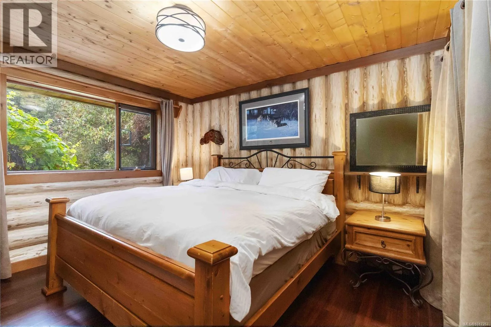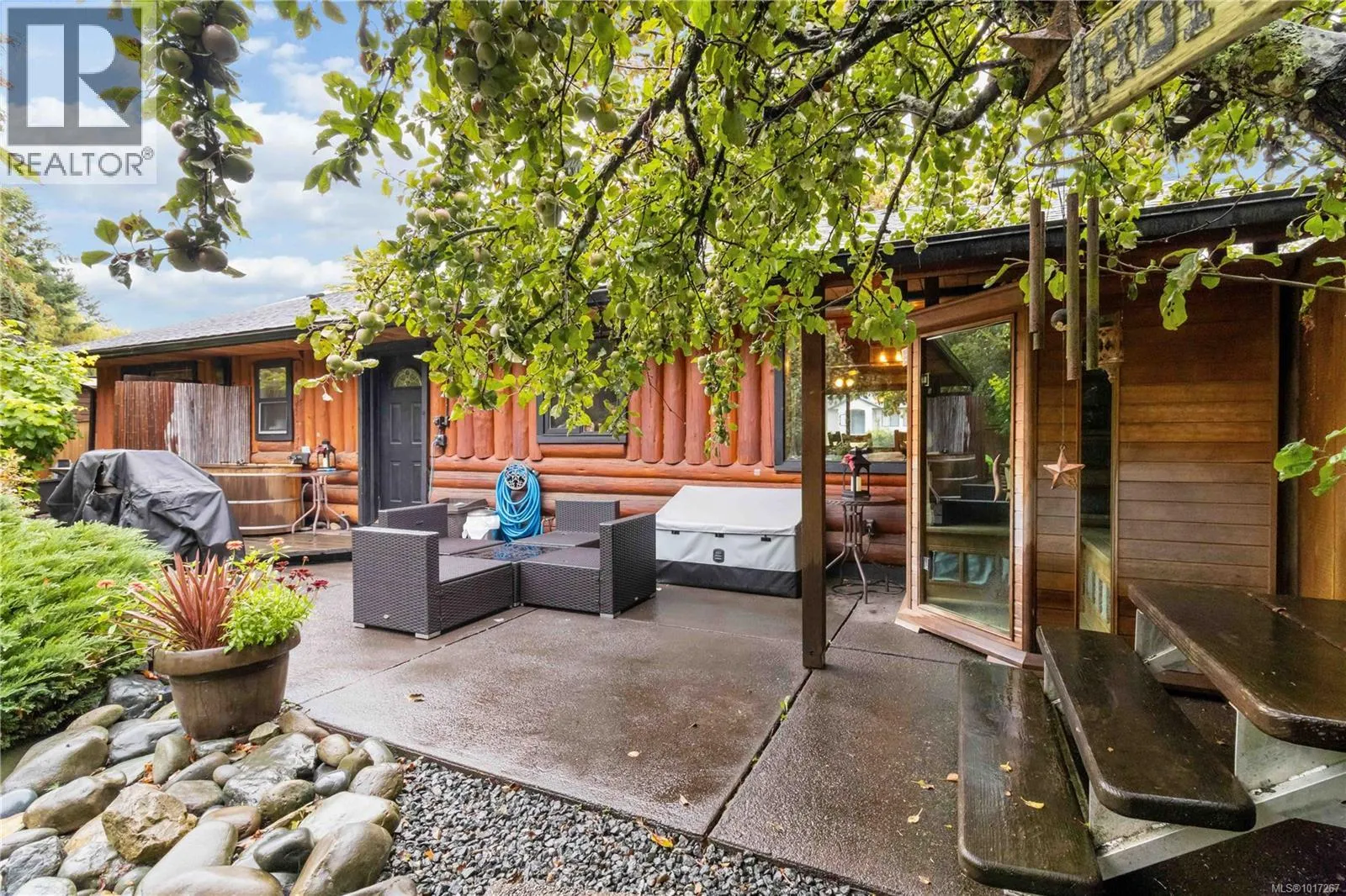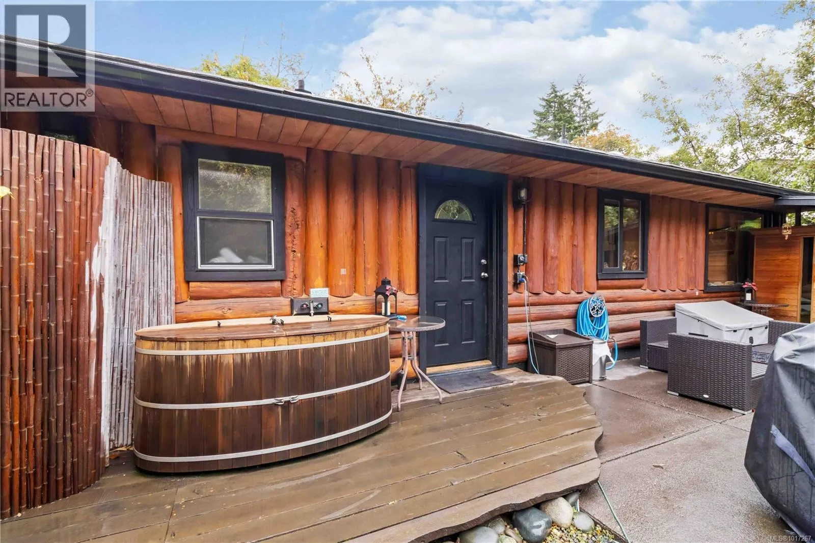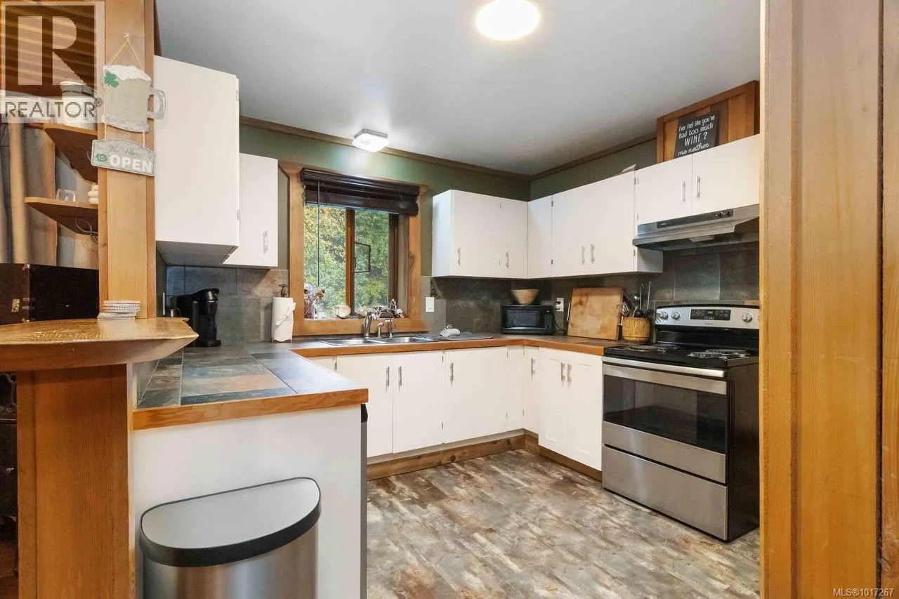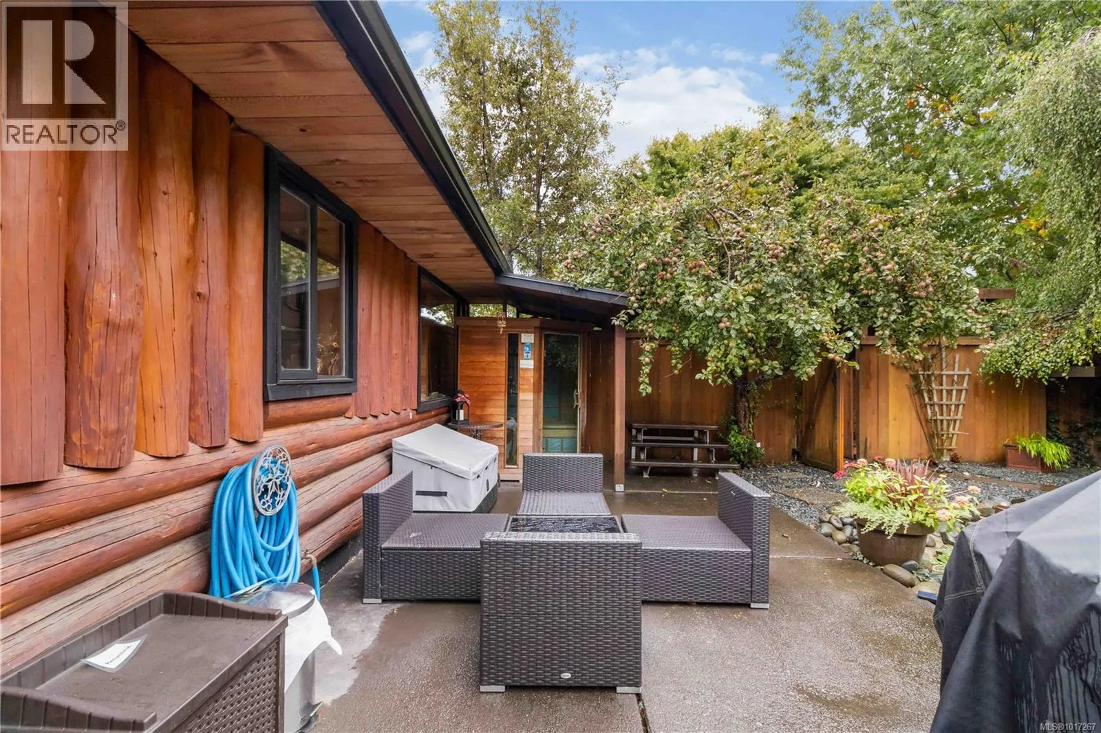 Welcome to this custom Scandinavian log home, a truly special 3-bedroom retreat where timeless craftsmanship meets modern comfort. Thoughtfully updated throughout, it features original hardwood floors, solid wood ceilings, and striking log detailing that create a warm and inviting atmosphere. Two electric fireplaces add cozy charm, and the heat pump ensures comfortable warmth throughout the home. The open layout makes everyday living effortless, extending naturally to a beautifully landscaped and fully fenced backyard with cedar fencing. Enjoy your own private oasis complete with a cedar sauna, cedar hot tub, tranquil pond, and mature fruit trees. The property is ideal for downsizers seeking single level living with both space and character. A charming Studio in the back offers extra room for, or a quiet hideaway, complete with its own fully fenced yard. This home captures the essence of relaxed West Coast living, ready for you to move in and enjoy. (id:27476)