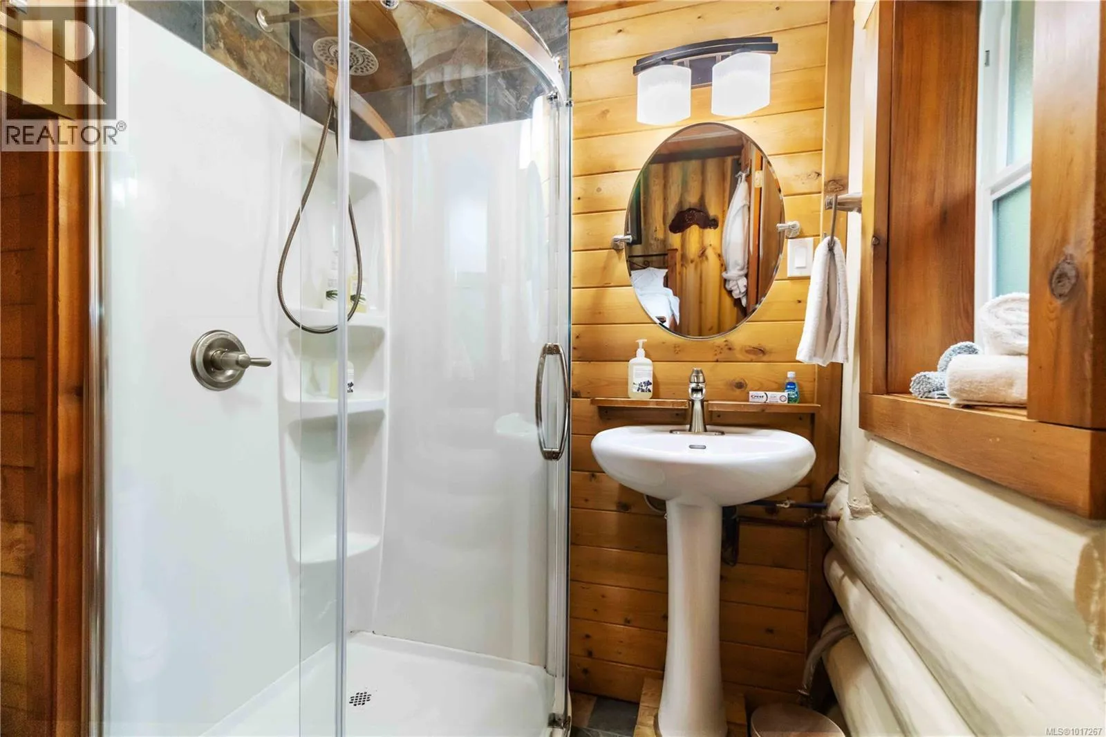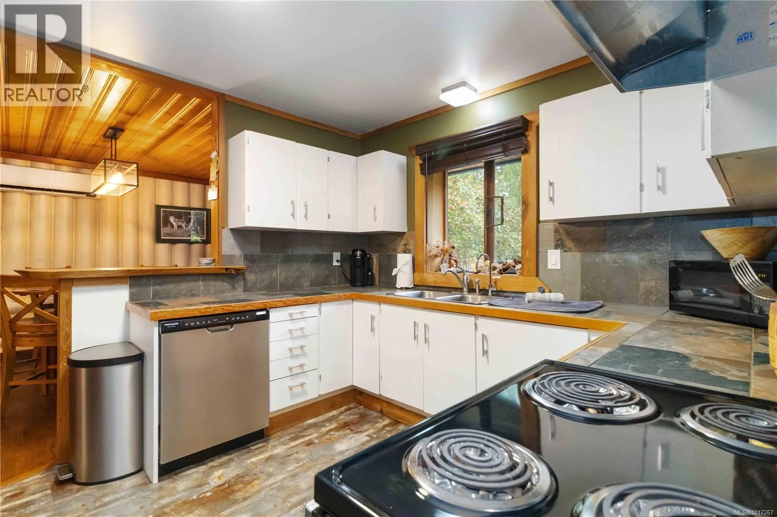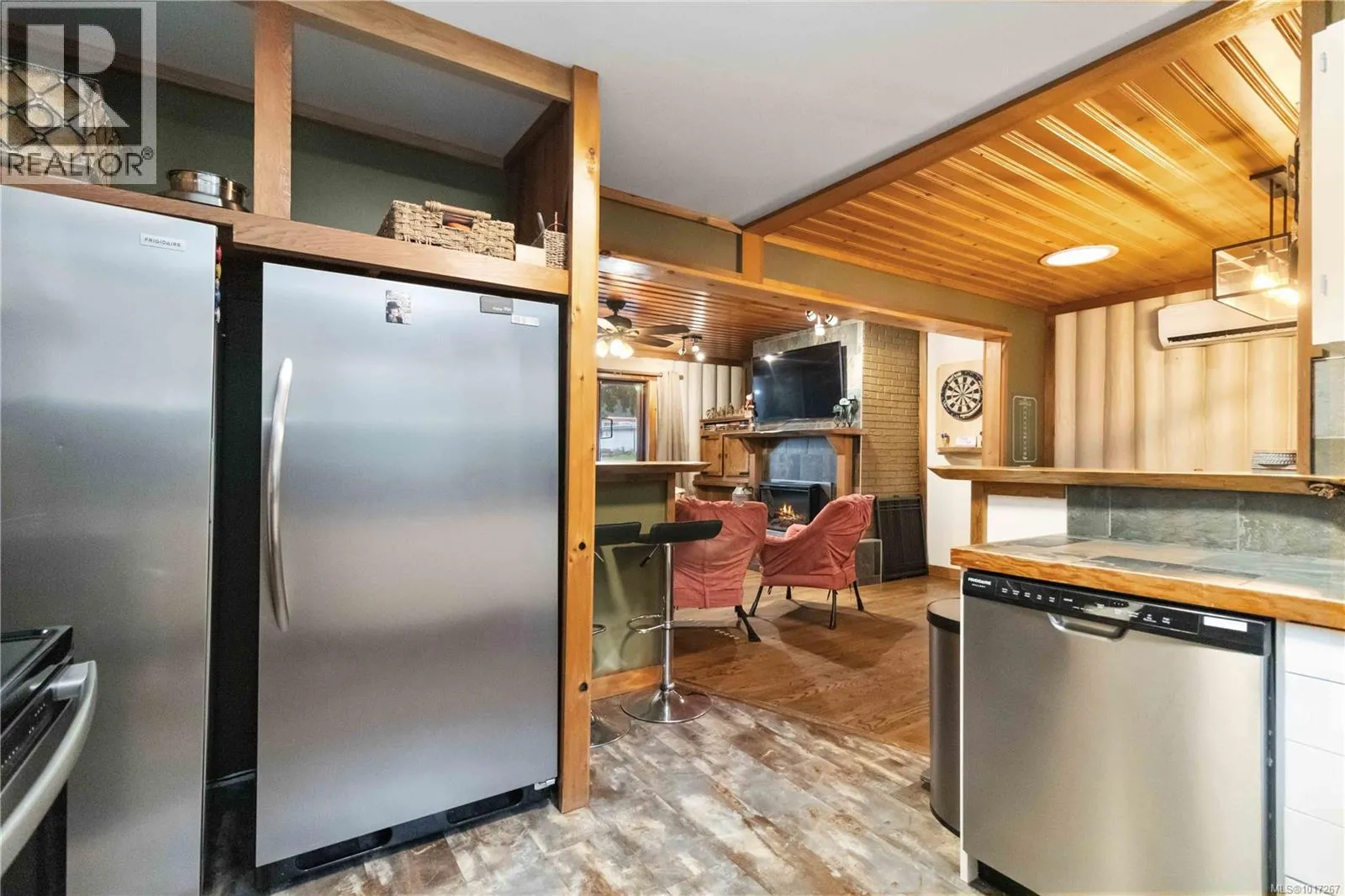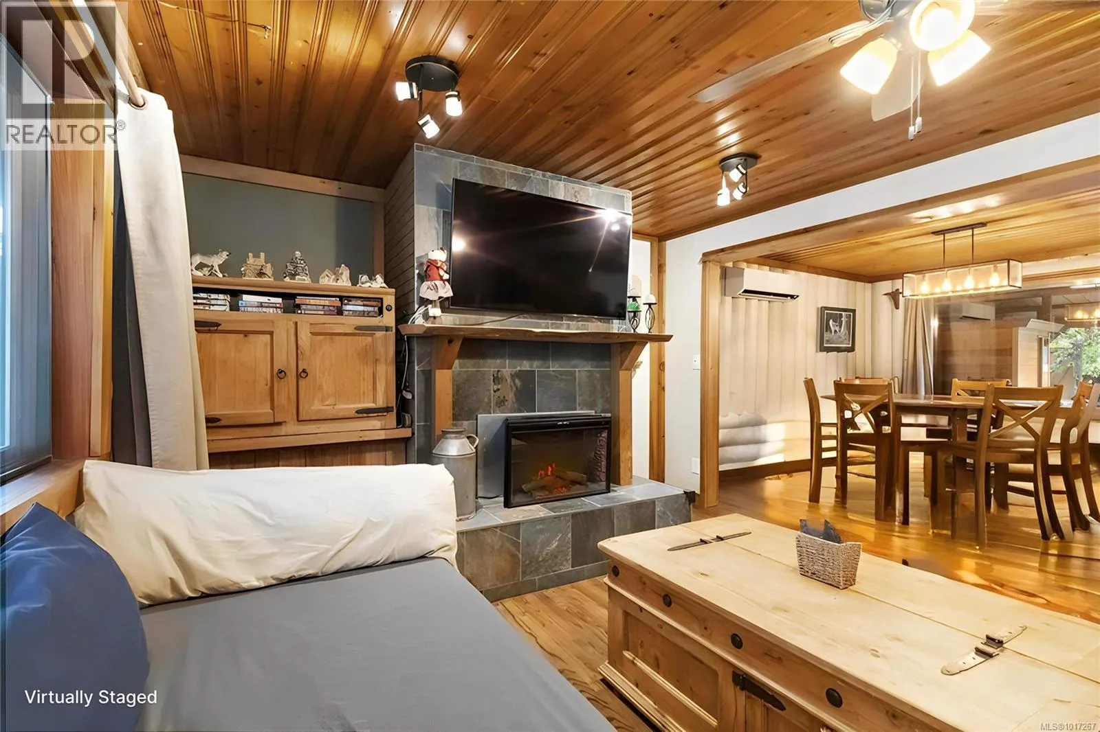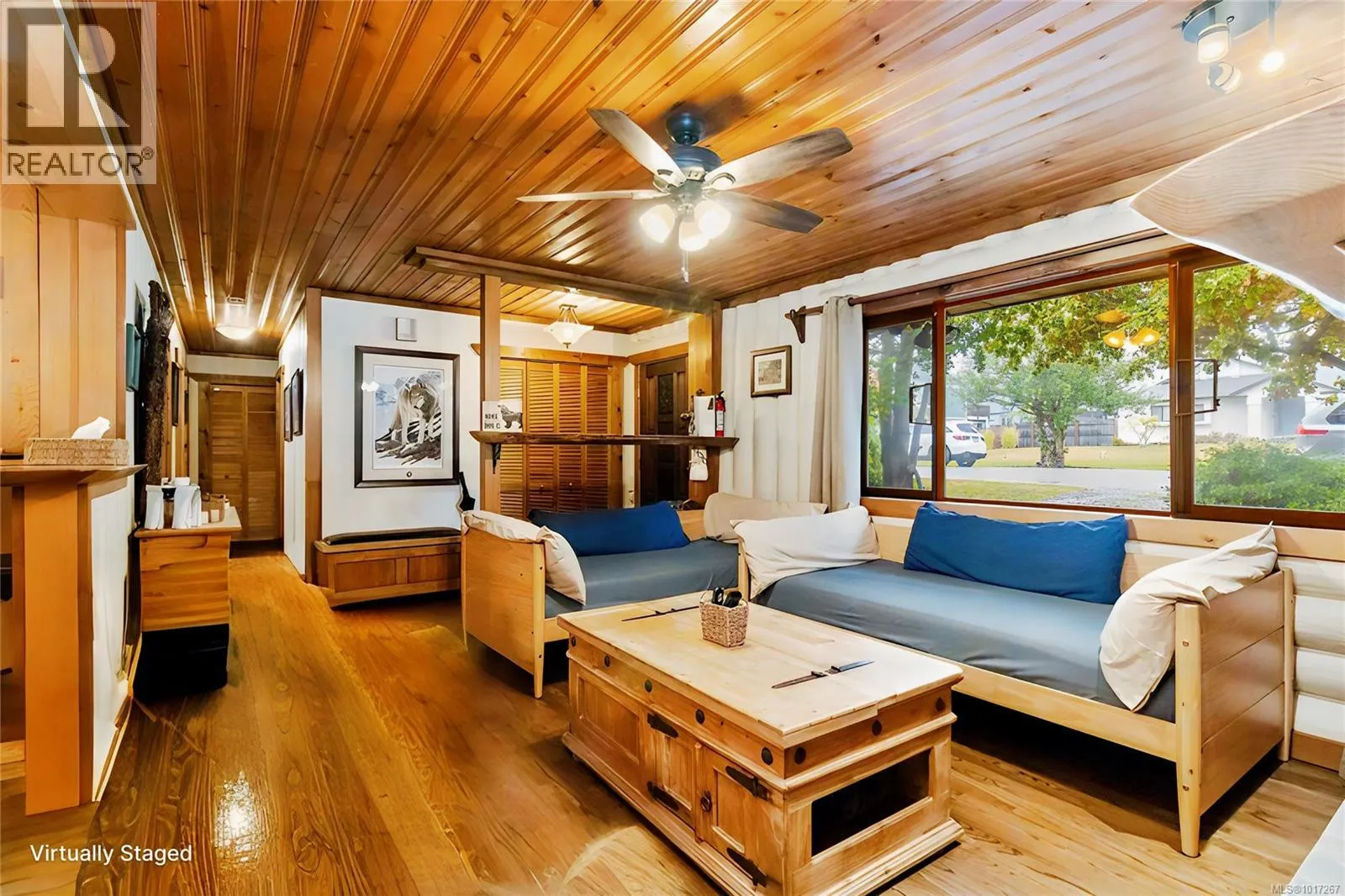 Welcome to this custom Scandinavian log home, a truly special 3-bedroom retreat where timeless craftsmanship meets modern comfort. Thoughtfully updated throughout, it features original hardwood floors, solid wood ceilings, and striking log detailing that create a warm and inviting atmosphere. Two electric fireplaces add cozy charm, and the heat pump ensures comfortable warmth throughout the home. The open layout makes everyday living effortless, extending naturally to a beautifully landscaped and fully fenced backyard with cedar fencing. Enjoy your own private oasis complete with a cedar sauna, cedar hot tub, tranquil pond, and mature fruit trees. The property is ideal for downsizers seeking single level living with both space and character. A charming Studio in the back offers extra room for, or a quiet hideaway, complete with its own fully fenced yard. This home captures the essence of relaxed West Coast living, ready for you to move in and enjoy. (id:27476)