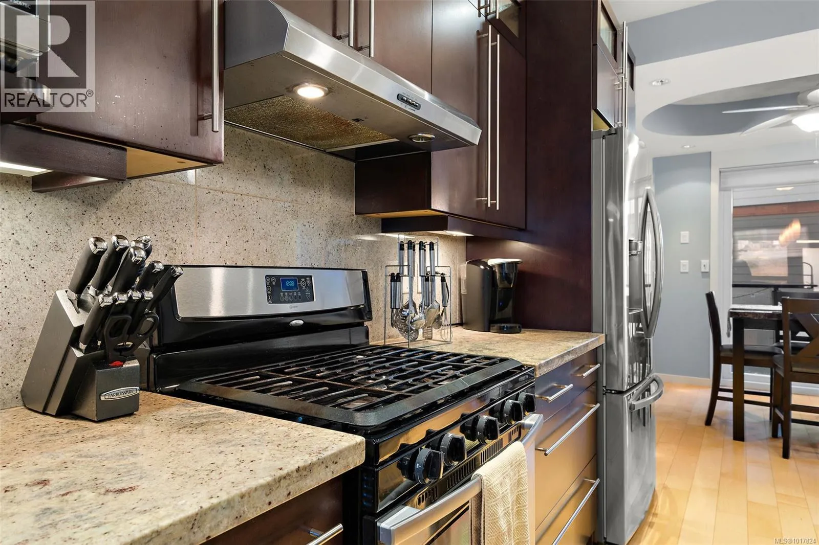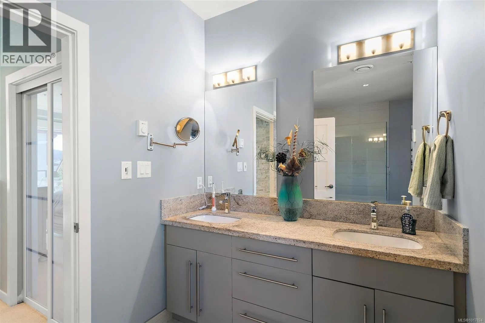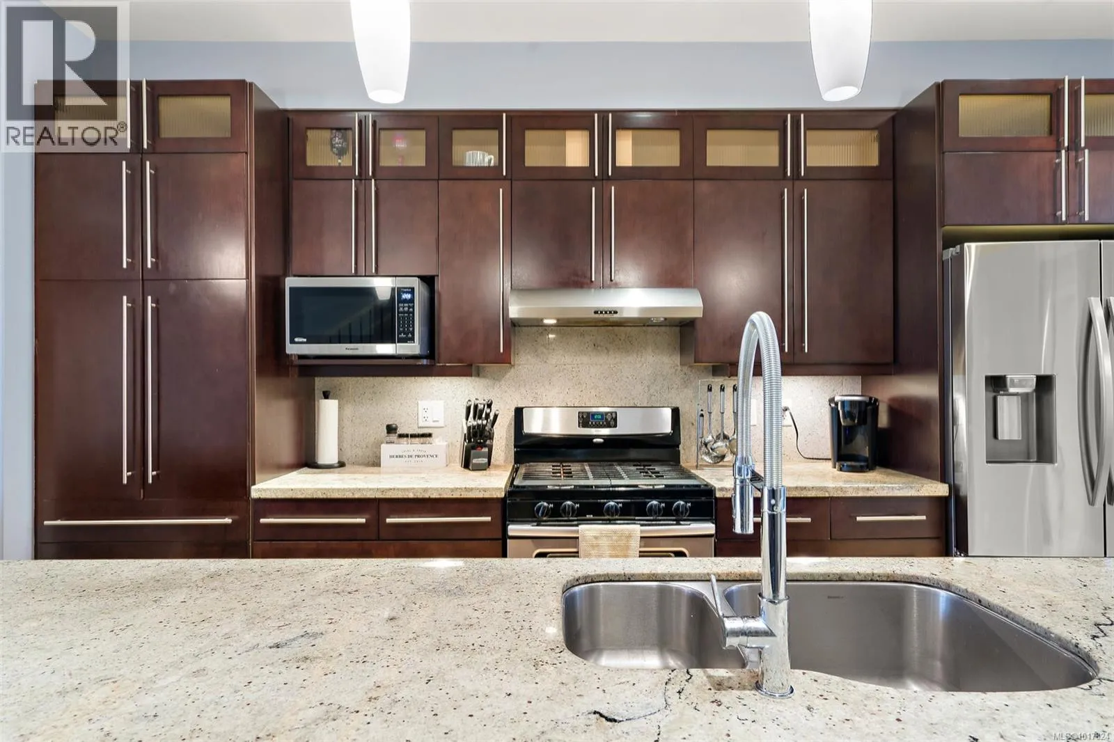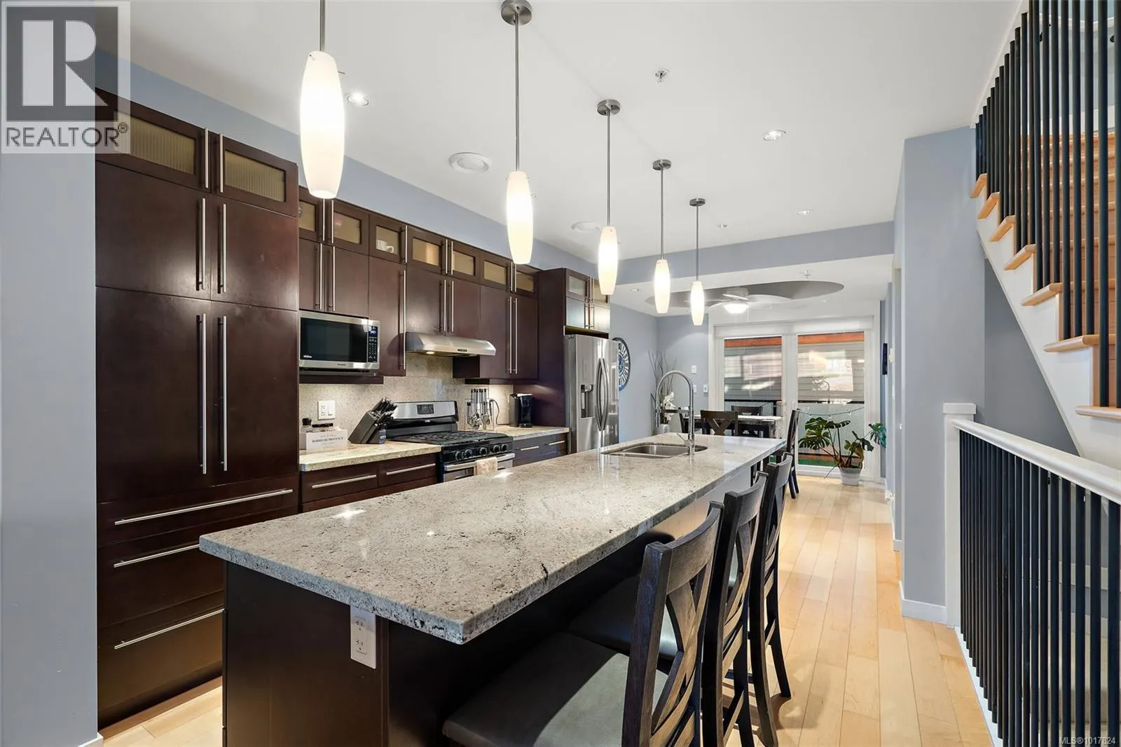 Experience coastal living at its finest in this luxurious 3-bedroom, 3-bathroom townhome in Marinerâs Village. The light-filled, open-concept floor plan offers an inviting sense of space and comfort throughout. The main level features a gourmet kitchen with granite countertops, a gas range, and stainless steel appliances, seamlessly flowing into the dining area and out to a generous deckâperfect for entertaining or relaxing outdoors. The upper level is home to all three bedrooms. The primary suite is a true sanctuary, complete with its own private balcony offering ocean views. It also features a spa-inspired ensuite with a soaker tub, walk-in shower, and a double-sided gas fireplace shared between the bedroom and bathroom. The second and third bedrooms are both spacious and include walk-in closets. Additional highlights include a cozy gas fireplace in the living room, heated tile floors, and ample storage space. Located just steps from provincial parks, pristine rainforests, serene beaches, and world-class fishingâyet only 20 minutes from the Westshore. (id:27476)