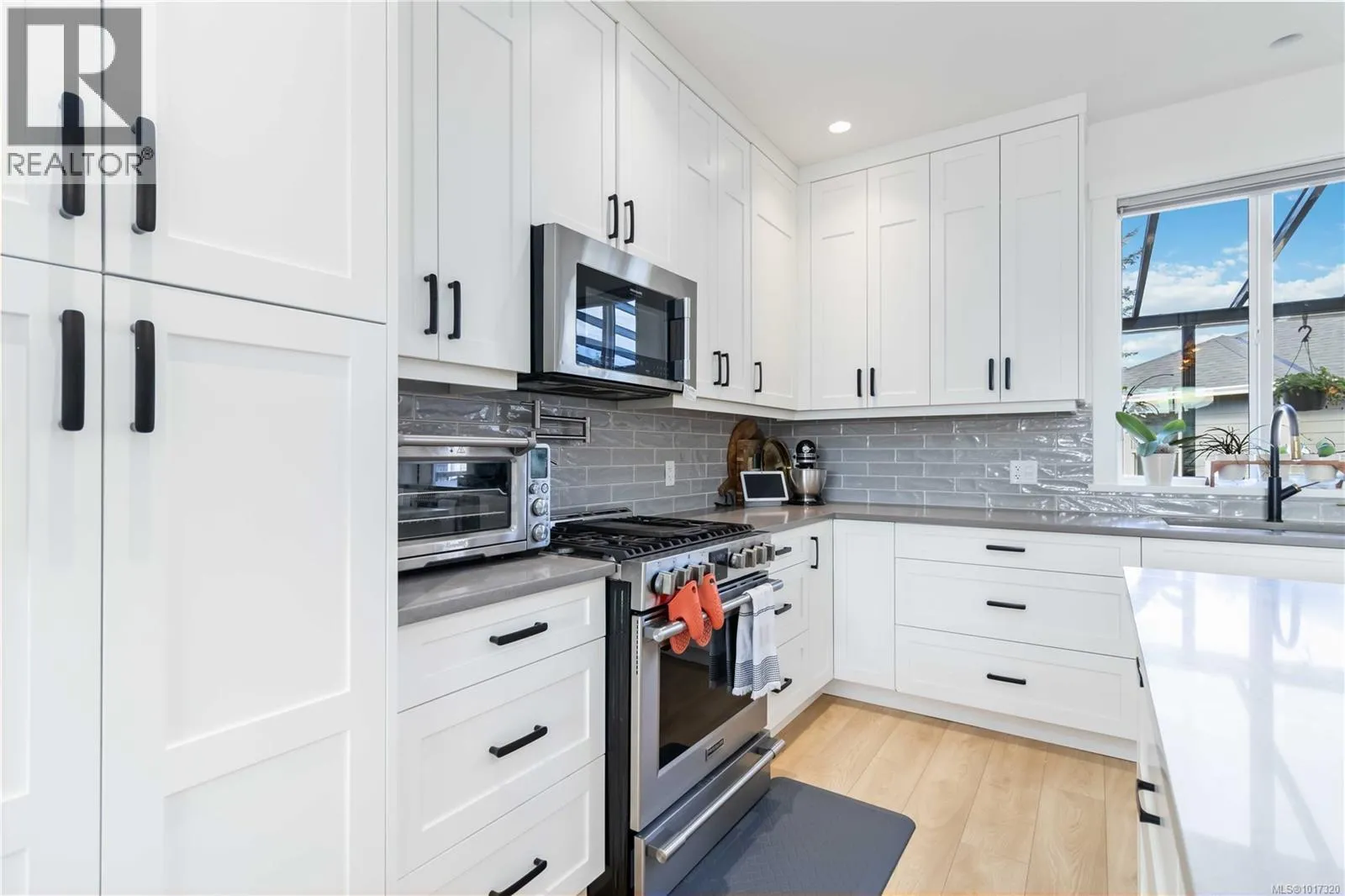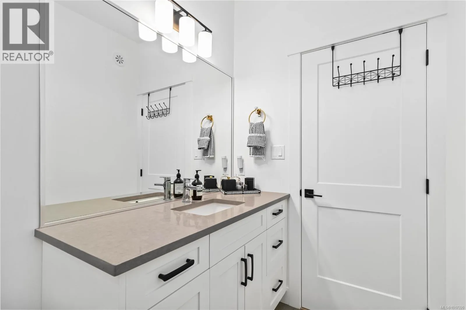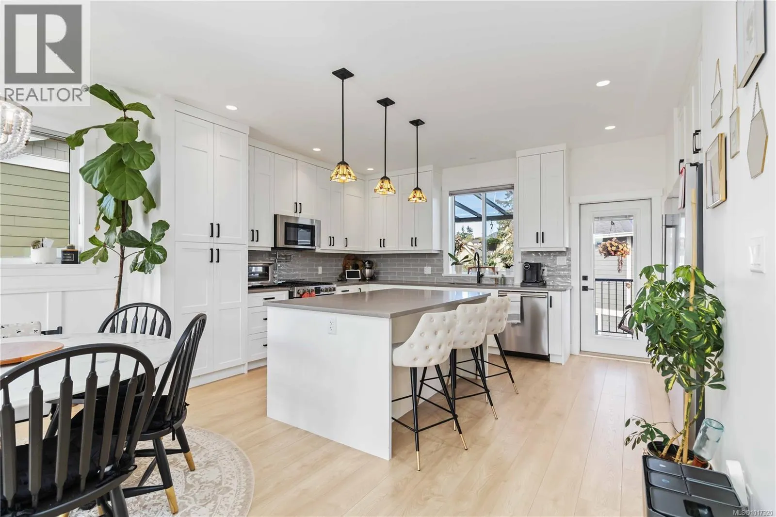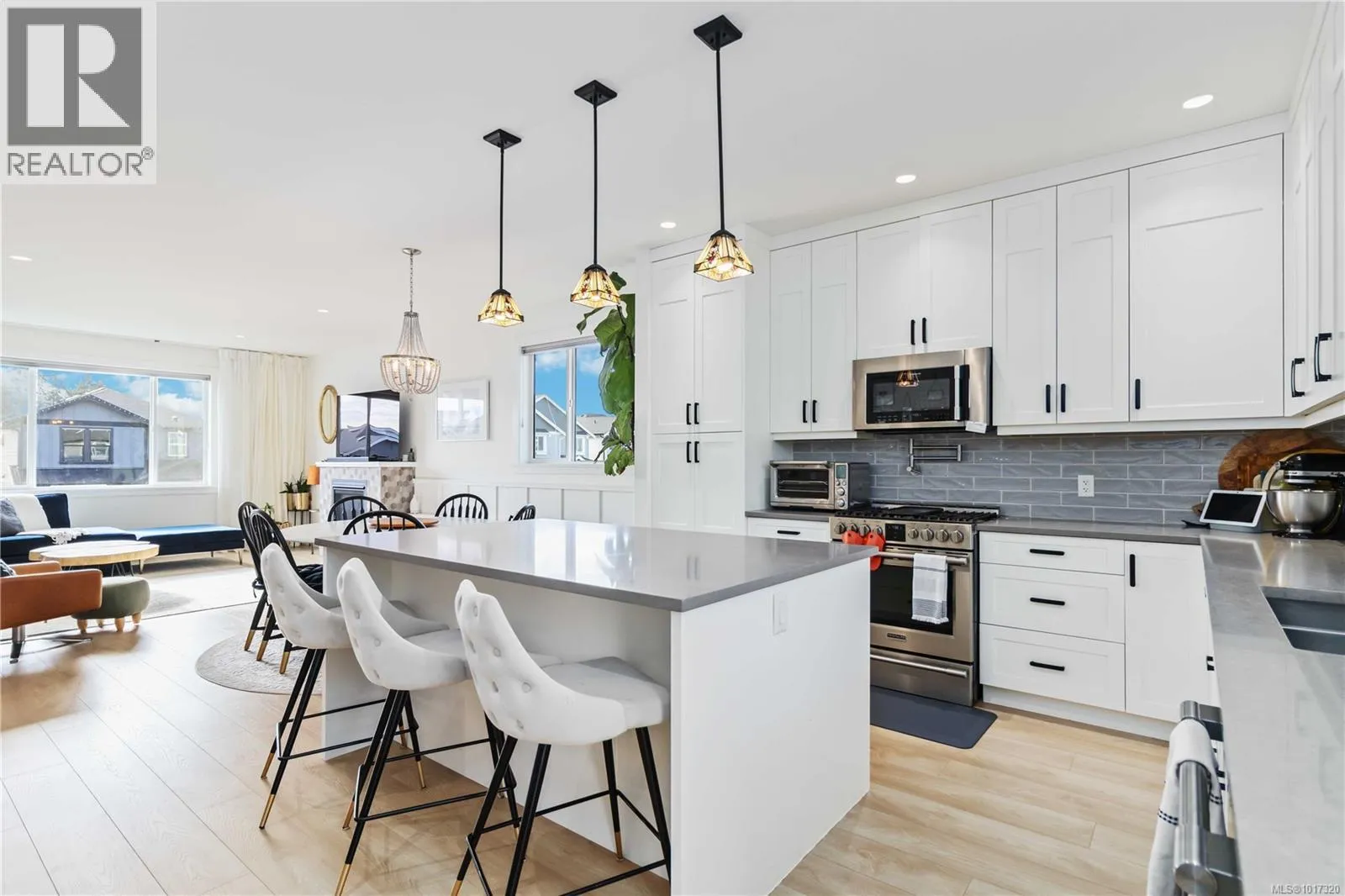 Check out this beautiful nearly new home in popular Woodland Creek - walking distance to schools, parks & Sooke Centre. Quality built by well regarded local builder. This 3 Bedroom 2 Bath home PLUS ground floor self contained 2 BR 1 Bath LEGAL SUITE (2nd bdrm-no closet) offers a spacious and open floor plan, large kitchen w/painted shaker cabinets, under counter lighting, quartz counter tops, S/S appliances, pantry & large island. Wainscoting styles the dining area. The large master suite with walk-in, attractive ensuite, heated tile floors, quartz counter, double sinks & under cabinet lighting. Laundry room has sorting counter & cabinets. Easy care laminate flooring throughout, carpeted stairs, Economical heating system, tankless hot water system. The oversized double car garage is wired for EV charger. In an ultra-convenient location with shops and amenities close by, and Westshore shopping a quick 20 min drive. Affordable new home living with built-in mortgage helper! (id:27476)