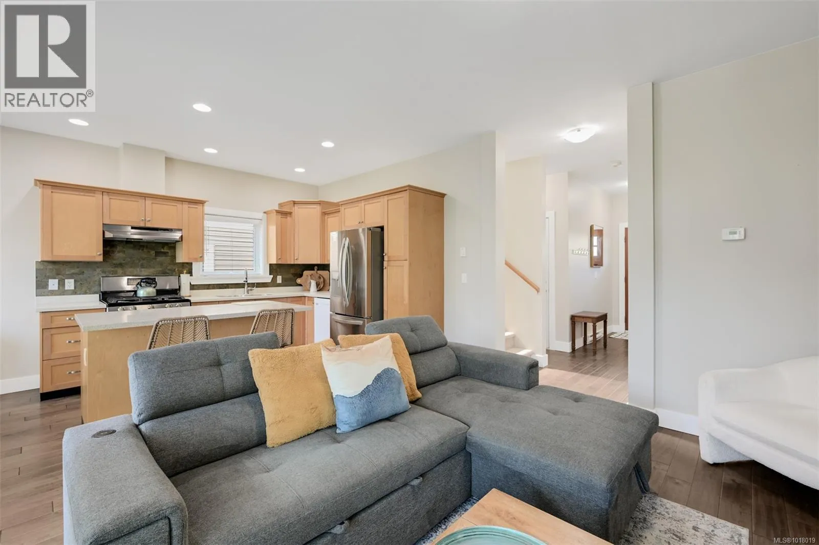 Open House, Saturday, October 25, 1-2:30PM. Welcome to 105-6800 Grant Road W! This spacious DETACHED home offers 5 bedrooms and 3.5 bathrooms in a family-oriented neighbourhood, spanning almost 2,000 SQ FT of well designed living space. The main level features a bright open-concept living room with cozy gas fireplace, a GORGEOUS kitchen with island, and a full dining area thatâs perfect for entertaining. Upstairs, youâll find a generous primary suite with 4-piece ensuite and private deck, plus two additional bedrooms and a full bath. The lower level offers a flexible 2-BEDROOM IN-LAW SUITE, currently VACANT and ready for family or as a mortgage helper, complete with its own kitchen, laundry, 4-piece bath, and separate entrance. The home includes spacious garage, driveway parking, and a fully fenced backyard for kids and pets. Just steps to bus routes, schools, shopping, and within walking distance to the Sooke town core and the beautiful oceanfront community lifestyle. (id:27476)