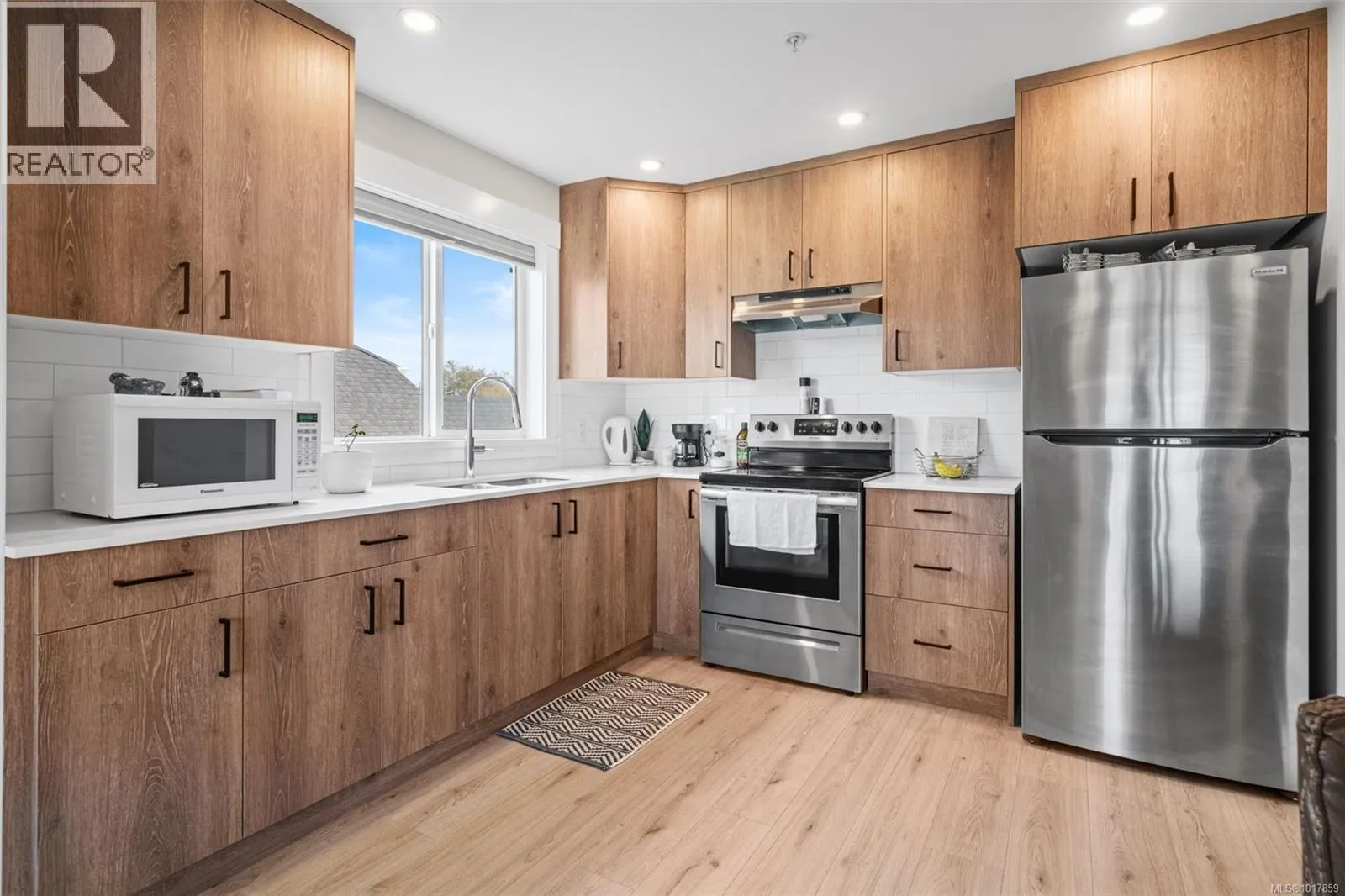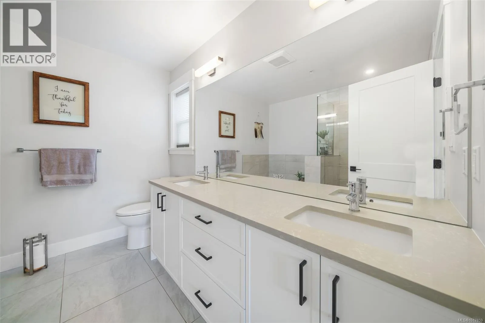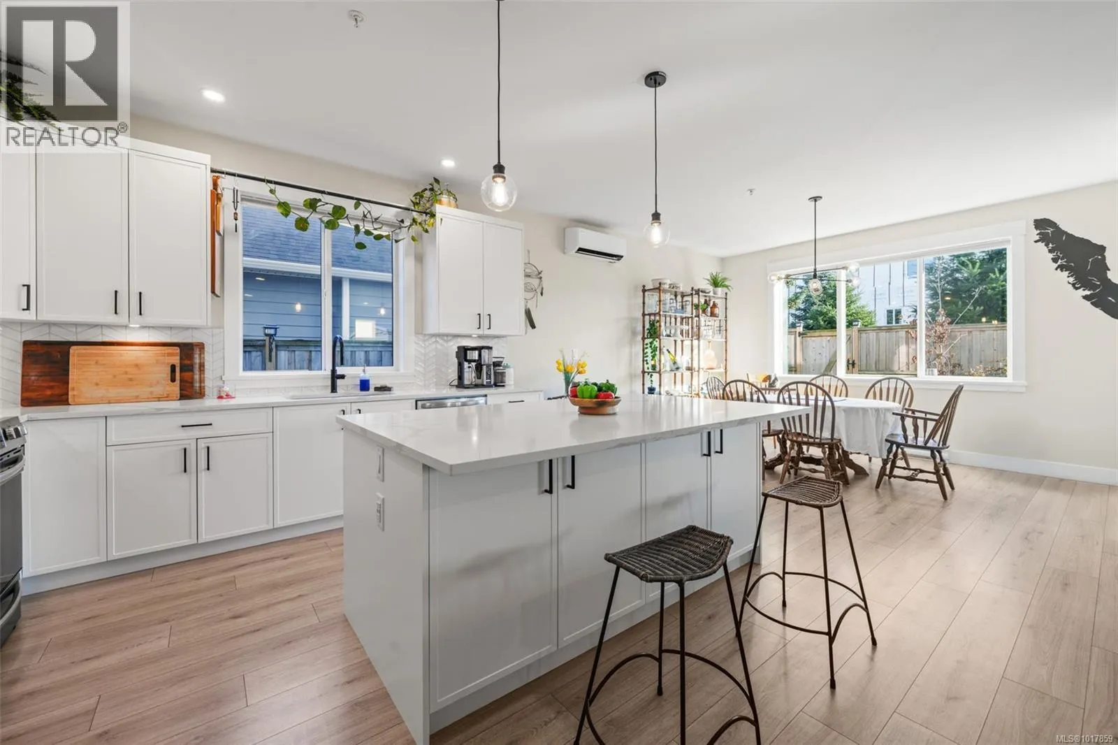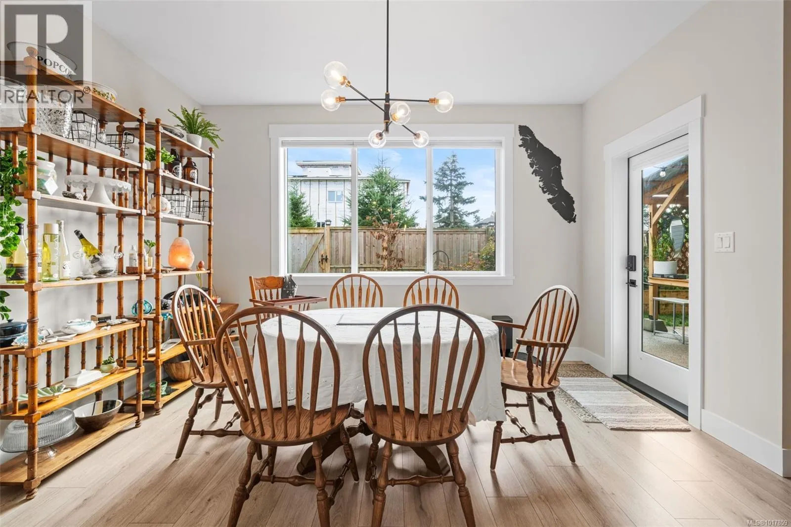 Welcome to 6541 Noblewood Place - a beautifully finished family home on a quiet cul-de-sac in one of Sookeâs most desirable neighbourhoods. With over 2,700 sq ft of living space, this 5-bed, 4-bath home includes a self-contained 1-bedroom legal suite with a private yard entrance - ideal for family, guests, or extra income. The main home offers 4 bedrooms and 3 bathrooms across two bright levels. A spacious open-concept layout features 9 ft ceilings, large windows, and vinyl-plank flooring throughout. The designer kitchen includes quartz countertops, custom shaker cabinetry, high-end stainless-steel appliances, and an oversized island perfect for entertaining. Upstairs, the primary suite boasts a walk-in closet and spa-inspired ensuite with a soaker tub, double vanity, and walk-in shower. Outside, enjoy a newly extended backyard patio with a reinforced 6-inch slab, ready for a hot tub. The home also offers three off-street parking spots and a full dry, heated, and powered crawl space for excellent storage. Minutes from schools, parks, shopping, and trails â this is a perfect blend of comfort, function, and family living. (id:27476)