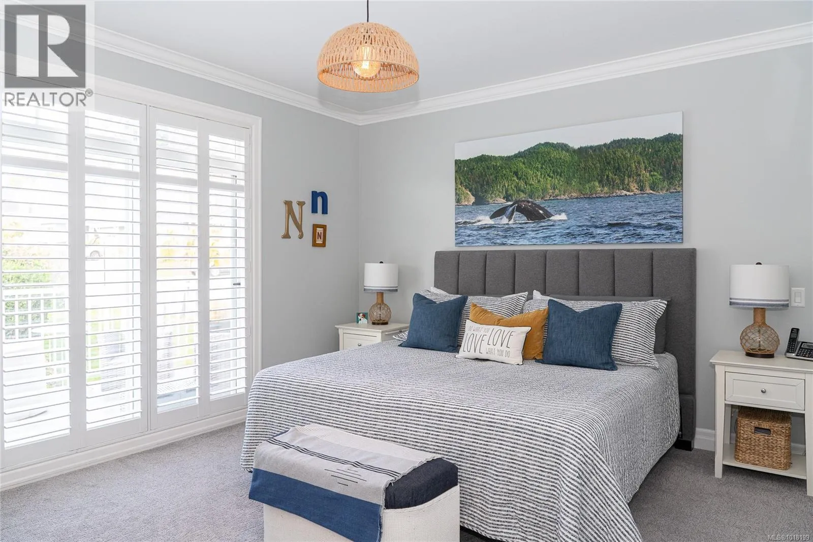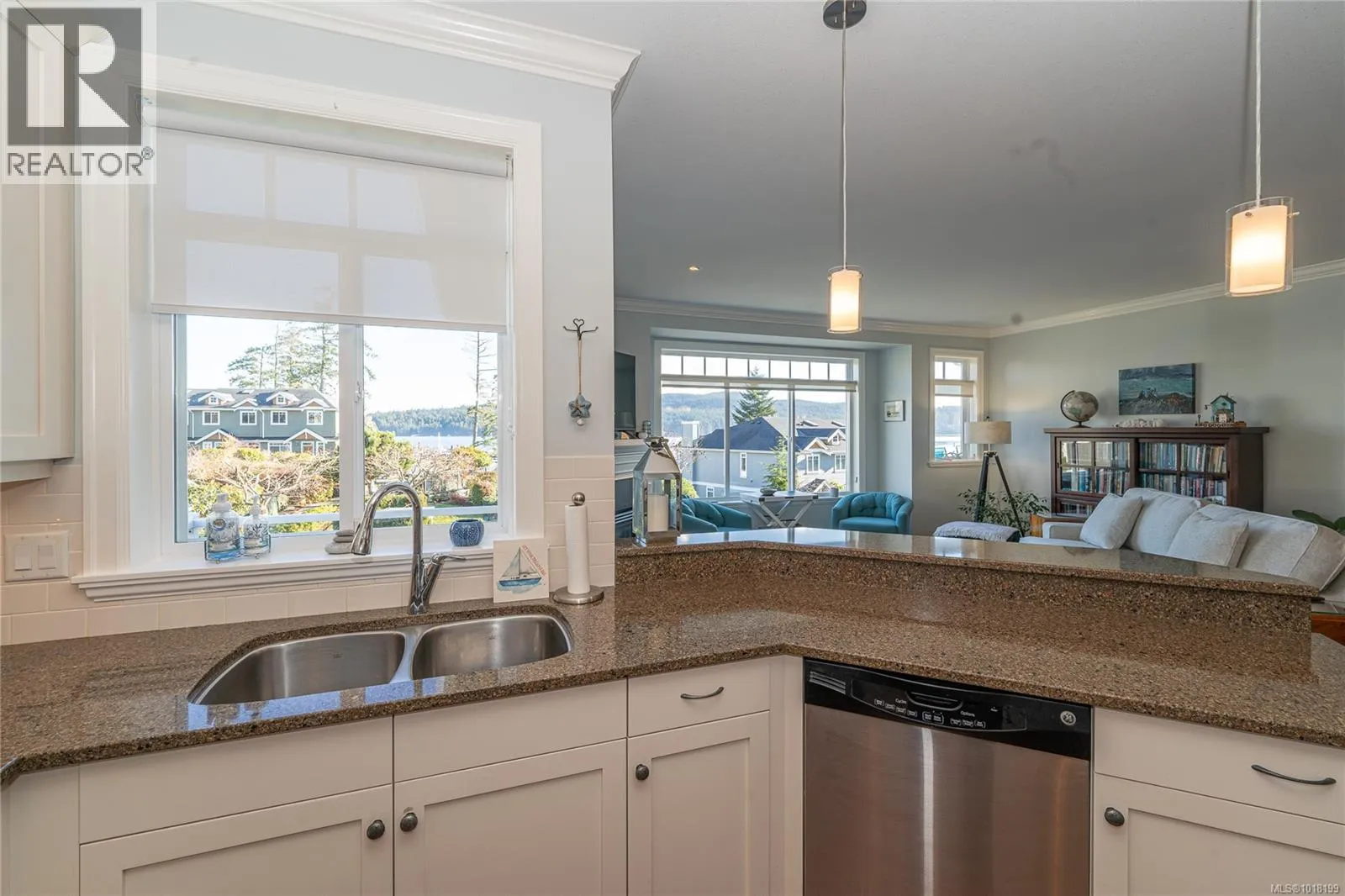 Rare Heron View town home offering some of the most magnificent, uplifting Ocean Views within this impressive oceanfront development. The upper main's elevated position overlooks the amenity centre & provides exhilarating views over the harbour, generous kitchen layout with quartz counters, SS appliances & gas cooking, white shaker cabinetry, mocha stained hardwood floors through the open concept main adjacent dining and spacious living room with gas fireplace and huge picture window to soak in those views! You'll love the master suite with NEW custom walk-in, ensuite & private patio with slider access. A 2nd large living room down with 2 bedrooms & 4 piece bath, rear patio round out the lower level. The townhome boasts a prized double garage with larger than average driveway. An amenity pkg beyond compare: Tennis, Swimming Pool, Gym, Sauna, Social Room, Social Gas Fire Pit. Nearby fine dining options, adjacent to marinas, launch your kayak from the private beach. (id:27476)