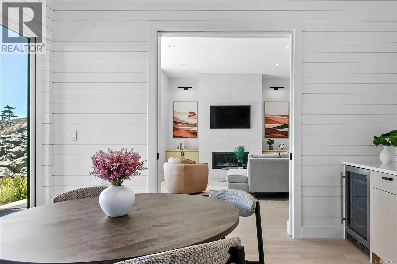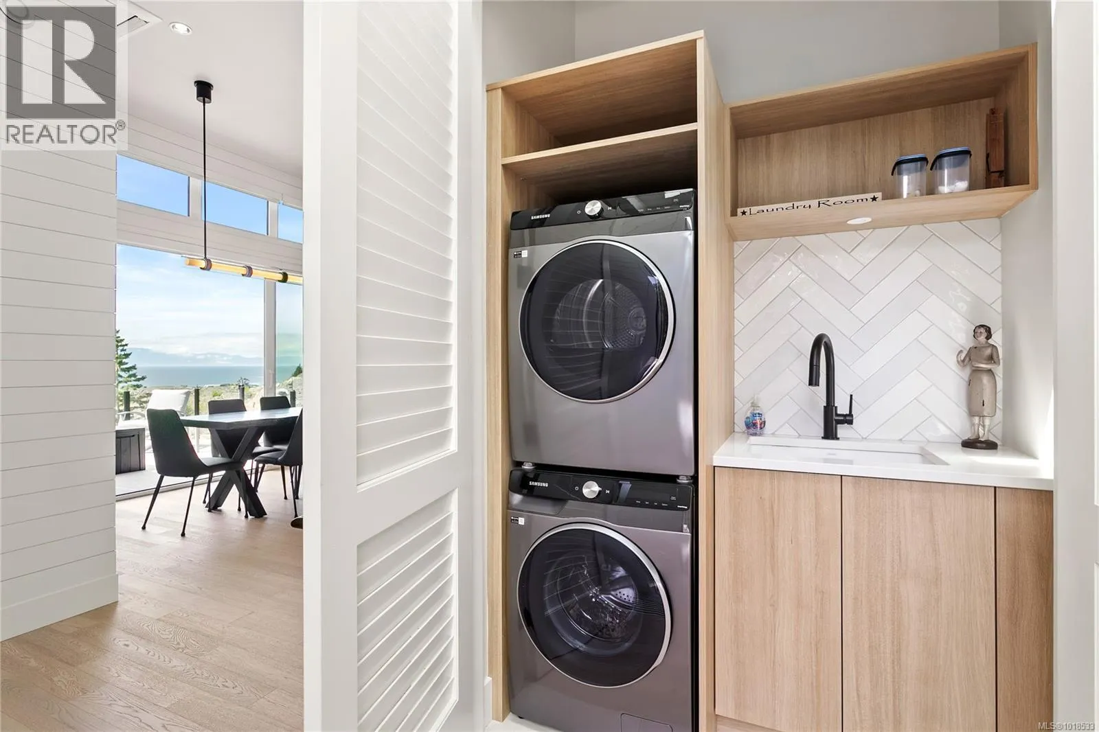 Experience unmatched coastal living in this west coast contemporary waterfront home along the stunning Juan de Fuca Strait. Completed in 2024, this 2,866 sq. ft. architectural residence features three spacious bedrooms, four bathrooms, and a versatile den perfect for a home office. Offered fully furnished (optional), itâs one of only seven custom oceanfront homes in Sookeâs first-of-its-kind luxury development. Interiors by Jenny Martin Design feature shiplap accents, panel-ready appliances, and refined millwork for ample storage. Enjoy an open-concept layout with ocean views, a designer kitchen, and fireplaces that add warmth and ambiance throughout. Dual laundry areas offer added convenience, while the advanced heating and cooling system provides individual climate zones. Whether as a full-time residence or a turn-key retreat, every detail is thoughtfully curated for coastal elegance and modern comfort. (id:27476)